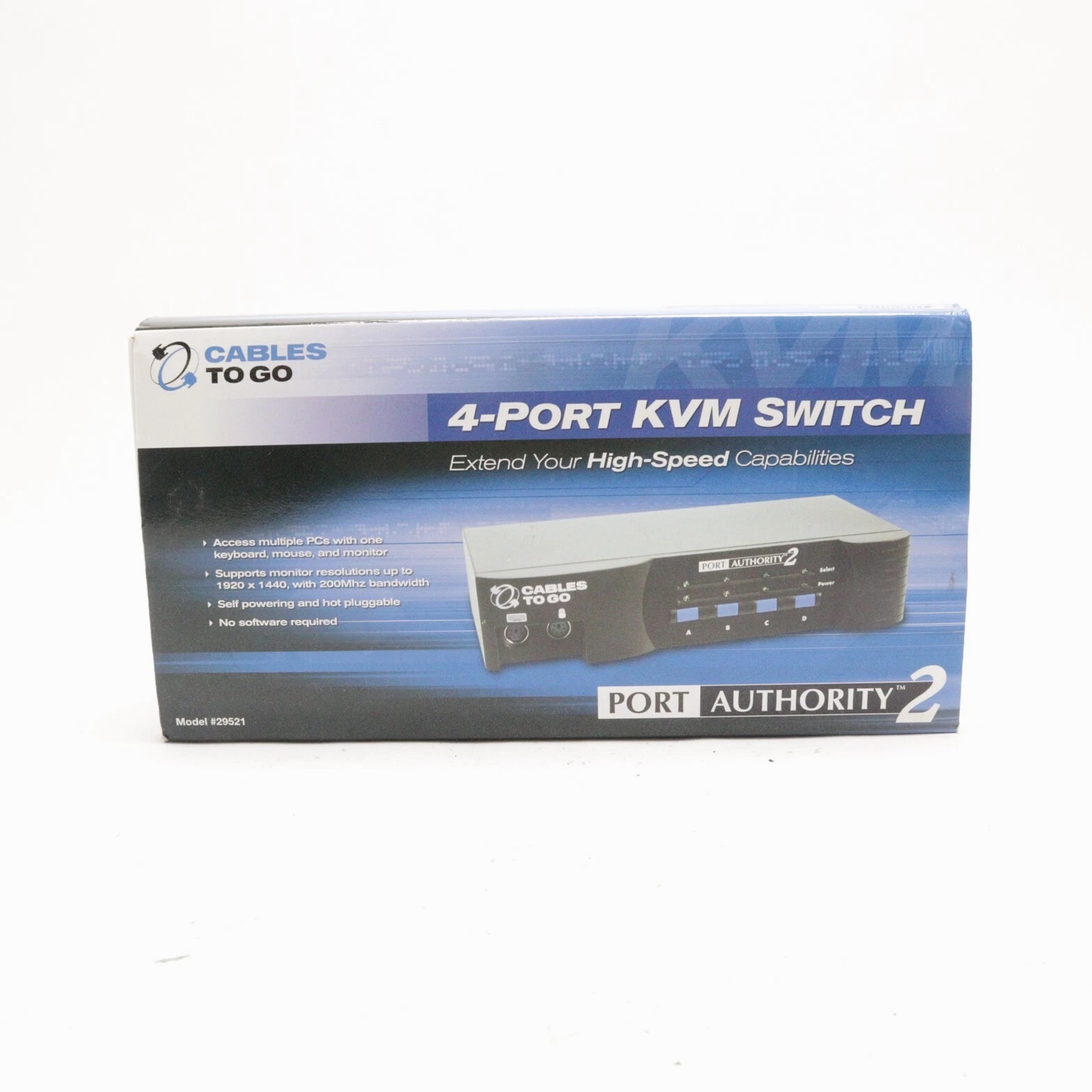 PORT AUTHORITY CABLES TO GO 4-Port KVM Switch for Mouse and Keyboard Hub 29521 Used Details Item Info: Used Weight: 3.00 lbs Dimensions: 14.00 x 12.00 x 8.00 Please note that all items are sold as used unless otherwise stated. If you have any questions please feel free to reach out to us. We are available weekdays from 8 a.m. to 4:30 p.m. EST. Payment All payments must be processed through your payment of choice. Please note that items will not ship if payment is not received. All items have a 24 hr handling time unless otherwise noted. Shipping We ship all orders within 24 hrs of payment clearing. If for any reason you need a shipment sent express, or any other method of shipment please send us an email. If you'd like to ship using your UPS, FedEx, or DHL account please contact us ahead of time so we may arrange that on our end for expected delivery times.