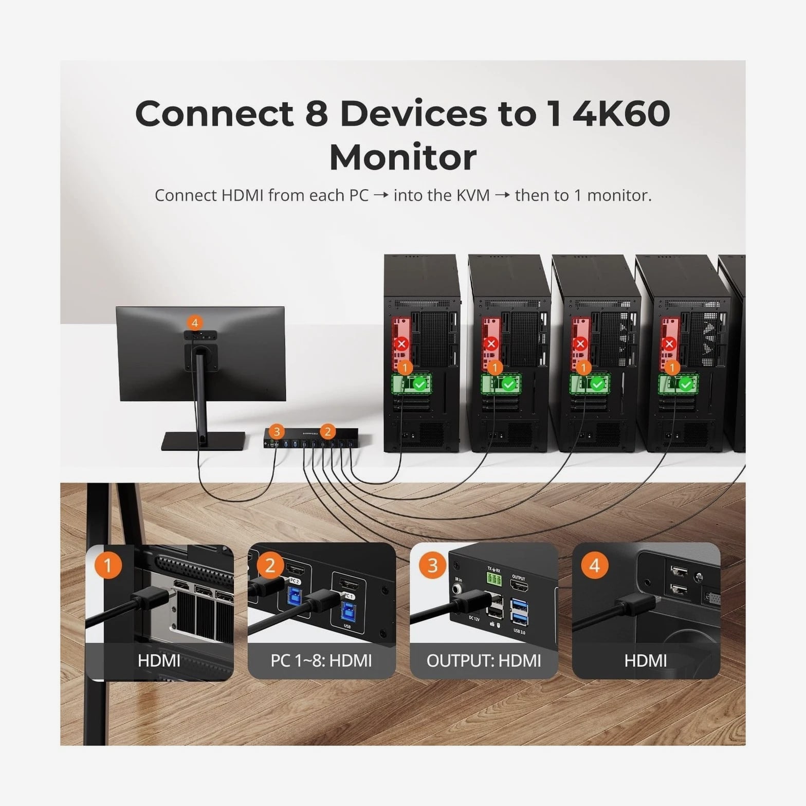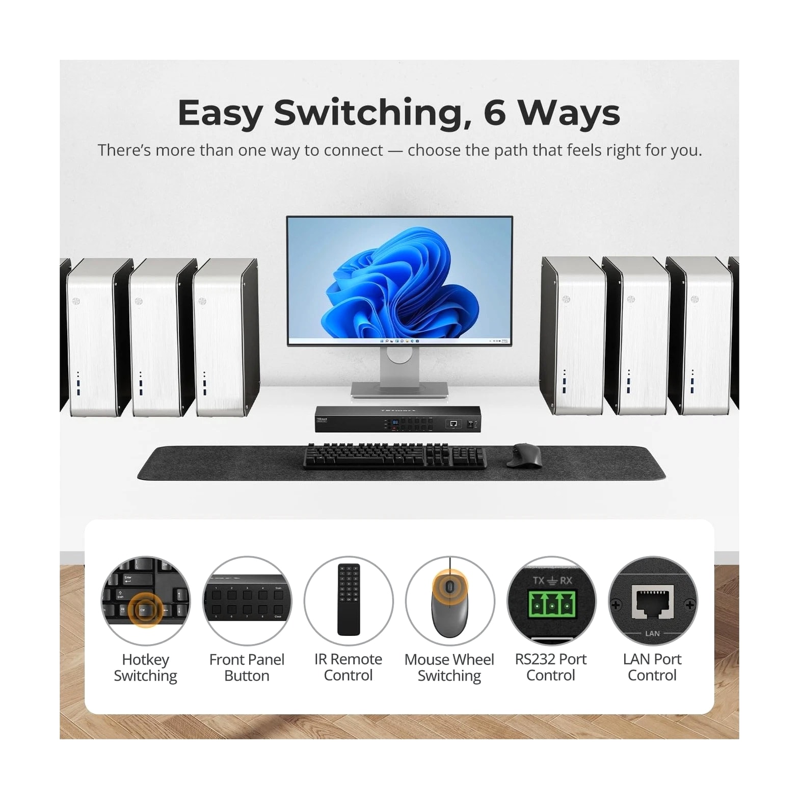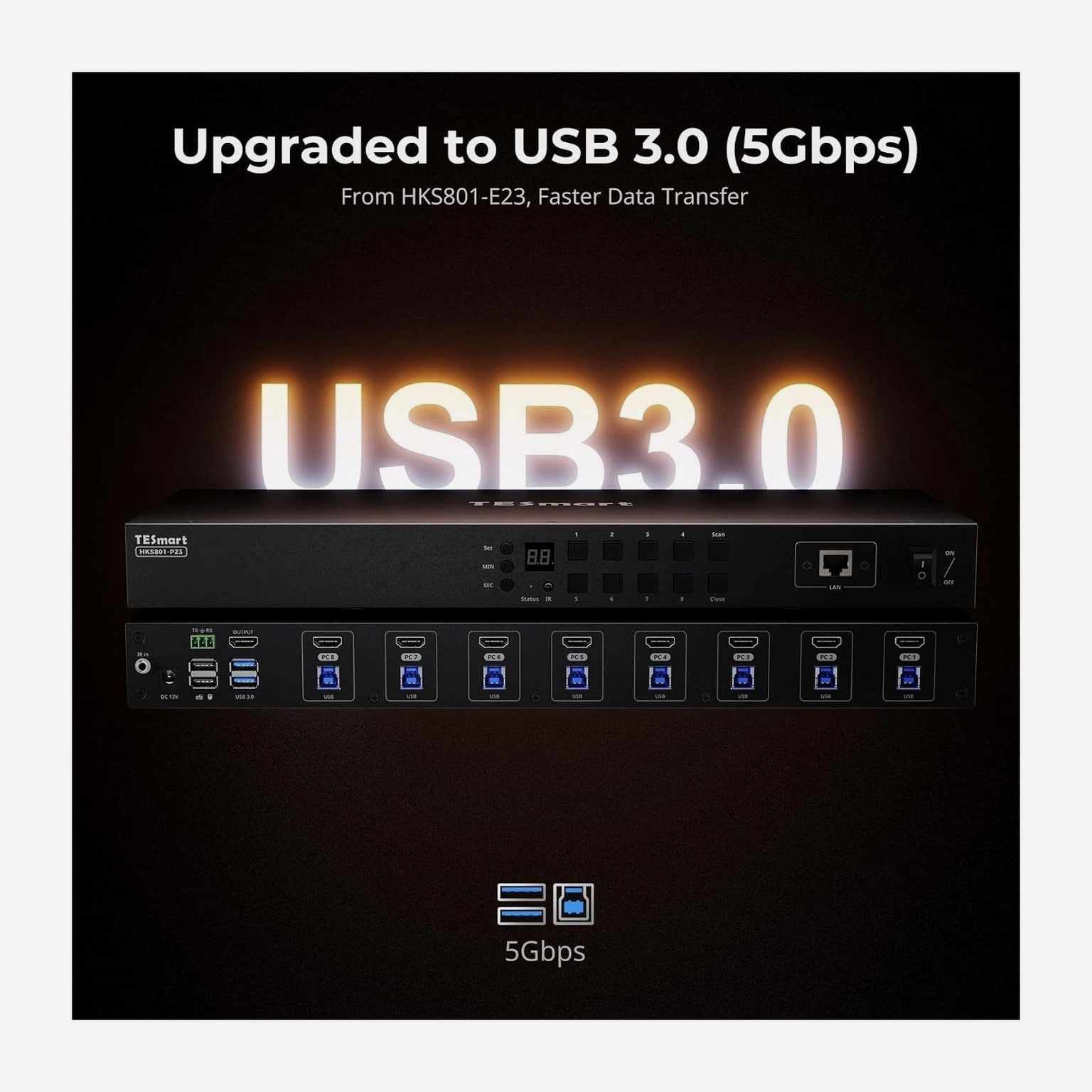 TESmart USB 3.0 HDMI KVM Switch 8 Port 4K@60Hz Rackmount EDID LAN IP RS232