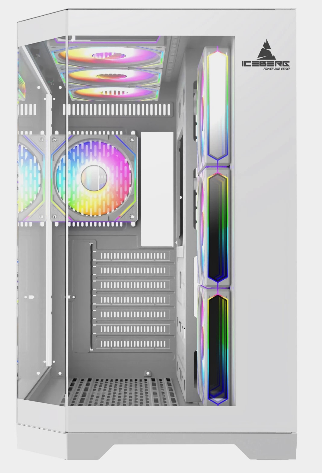 Iceberg Gaming PC Case Crystal Edge White - Three Tempered Glass, Seven Fans