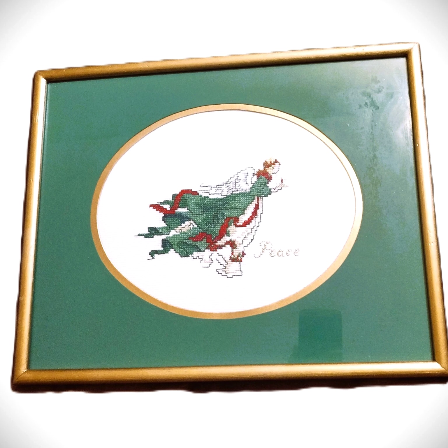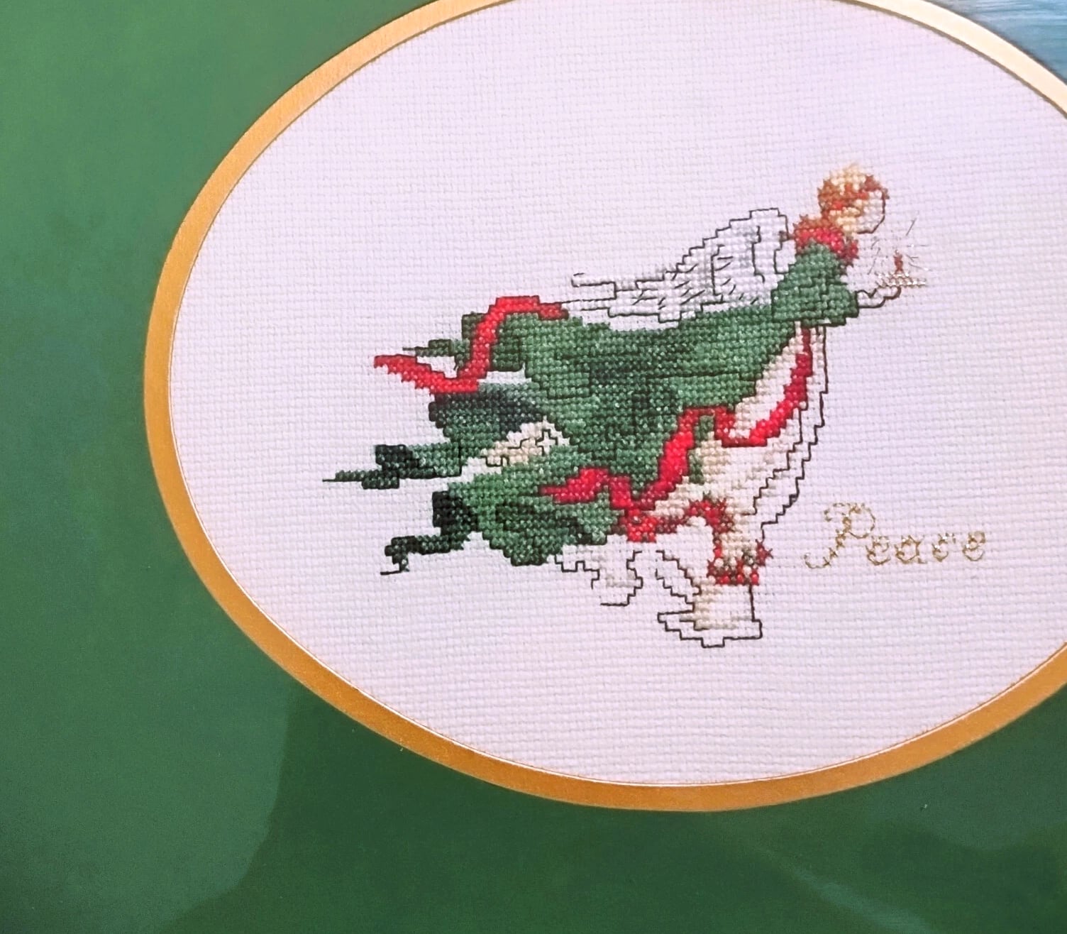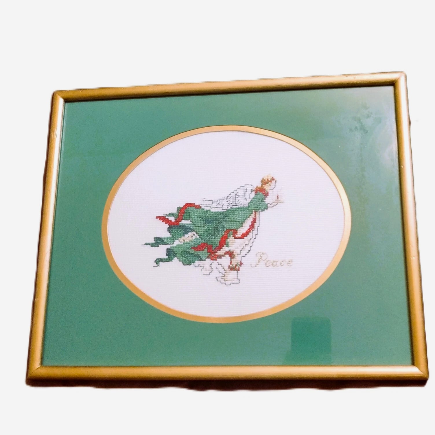 Angel of Light Peace Completed Cross Stitch Hand Made Framed Christmas