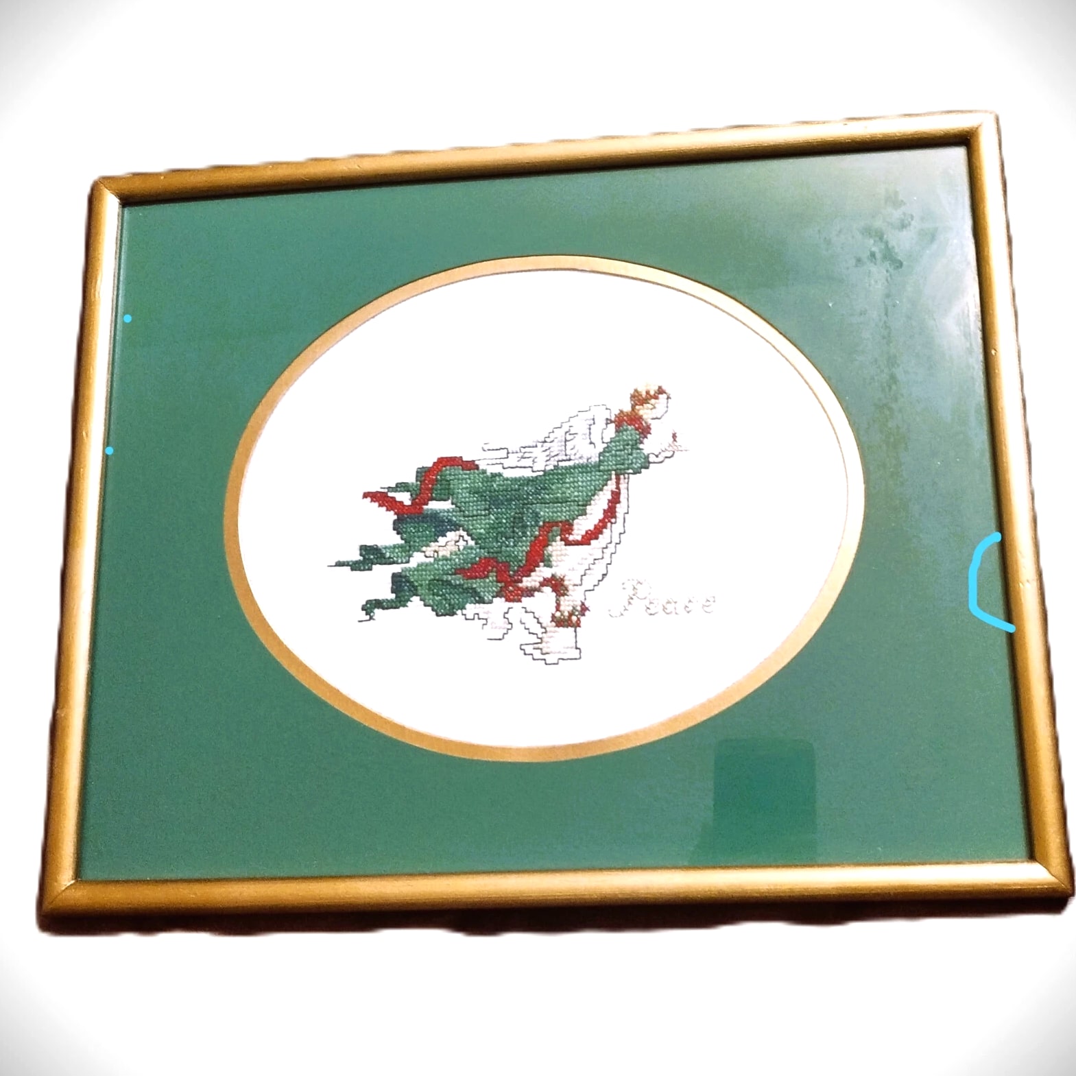 Angel of Light Peace Completed Counted Cross Stitch Hand Made Framed Christmas The color of the images may not be 100% exact like the real items due to play of light. Please ask questions before purchase. Materials: DMC cotton floss, Gold Kreinik thread, Aida cloth white Dimension: (approximate in inches) Framed L 14.5" x W 11.5" x 0.5" Smoke free environment; some items like patterns/books/fabrics came from other places. No pets. My Return Policy: I do not accept returns nor exchanges. Please contact me and let me know any issue. My policy is to make sure you are happy with your order. This beautiful framed cross stitch piece is a stunning addition to any collection. The intricate cross stitch details are complemented by the elegant design, making it a true work of art. Crafted with high quality, this unit is sure to impress. Measuring 14.5 inches by 11.5 inches, this completed cross stitch piece is ready to be displayed and admired. The unit type is a single piece, and the type of embroidery is cross stitch. This piece falls under the categories of Finished Cross Stitch Pieces, Finished Embroidered Pieces, Embroidery & Cross Stitch, Needlecrafts & Yarn, and Crafts. Add this exquisite piece to your collection today.