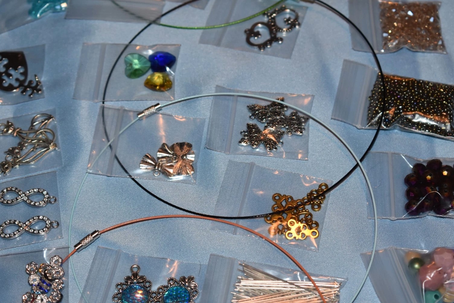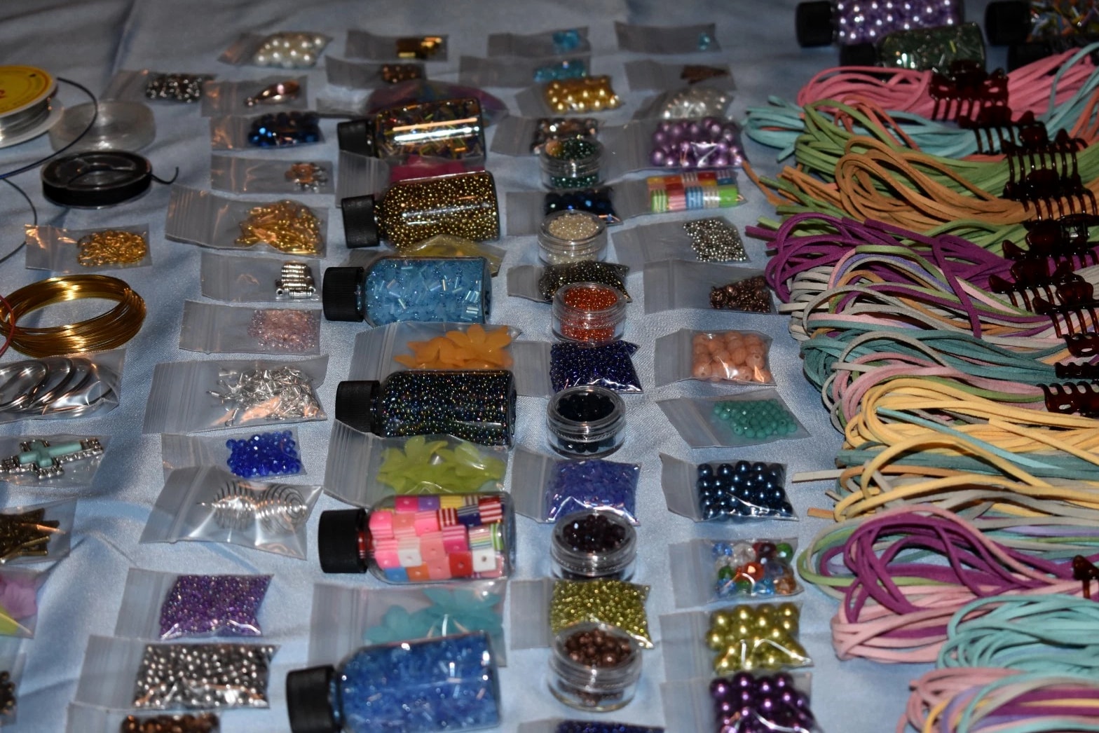 This IS NOT the EXACT LOT You Will Receive! These pictures are just to show you how we pack the bags, and to give you an idea of what you will be receiving. More Items & Pictures Are Being Added all the time, as inventory is processed in preparation for our upcoming move. Every item comes from a professional beading & jewelry making stash! ALL are 100% brand new and NEVER USED - 100% FRESH & CURRENT Best-Sellers! None of these beads are 'Harvested' from old/used jewelry. THESE Beads have all been HAND PICKED to Assure Your Satisfaction. Look at the Pictures! These are high-value beads & findings. There is NO JUNK in these lots! No recycled, 'harvested' used, reclaimed, yardsale garbage in these lots!!! You will be able to wear, give or even SELL your creations with PRIDE! You will get an excellent working selection so that you will be able to create a wide variety of pieces, sets & ensembles! Each 'RANDOMLY SELECTED' lot MAY include: Bracelet Memory Wire - enough to make AT LEAST 5 Silver &/or 5 Gold!! Necklace Memory Wire - enough to make AT LEAST 5 Necklaces! NOTE: When included (as an item not as a bonus/extra) there are MORE than 10 circles/Loops/Rings of EACH of the memory wires. The Rings of Memory Wire are counted as 1 (ONE) for each 'bunch'. Faux Leather Lacing - Each bundle has more than 5 meters and counts as 1 bag You will receive a wide assortment of beads. We also have some very nice FOCAL BEADS, GEMSTONES & CHARMS &/or Pendants as well as some Beautiful Rhinestone pieces. NOTE: Every lot is DIFFERENT - These lots come with LOTS of room to experiment and explore - All LOTS OFFER A VERY NICE ASSORTMENT so that you will enjoy being able to make a nice collection of Jewelry & Accessories that is all your own and that you will be able to mix-n-match! As you can see from the pictures, some pieces might come in more than one size. As an experienced jewelry maker/designer, I know how important this is to create visual interest, movement, and balance in your work.