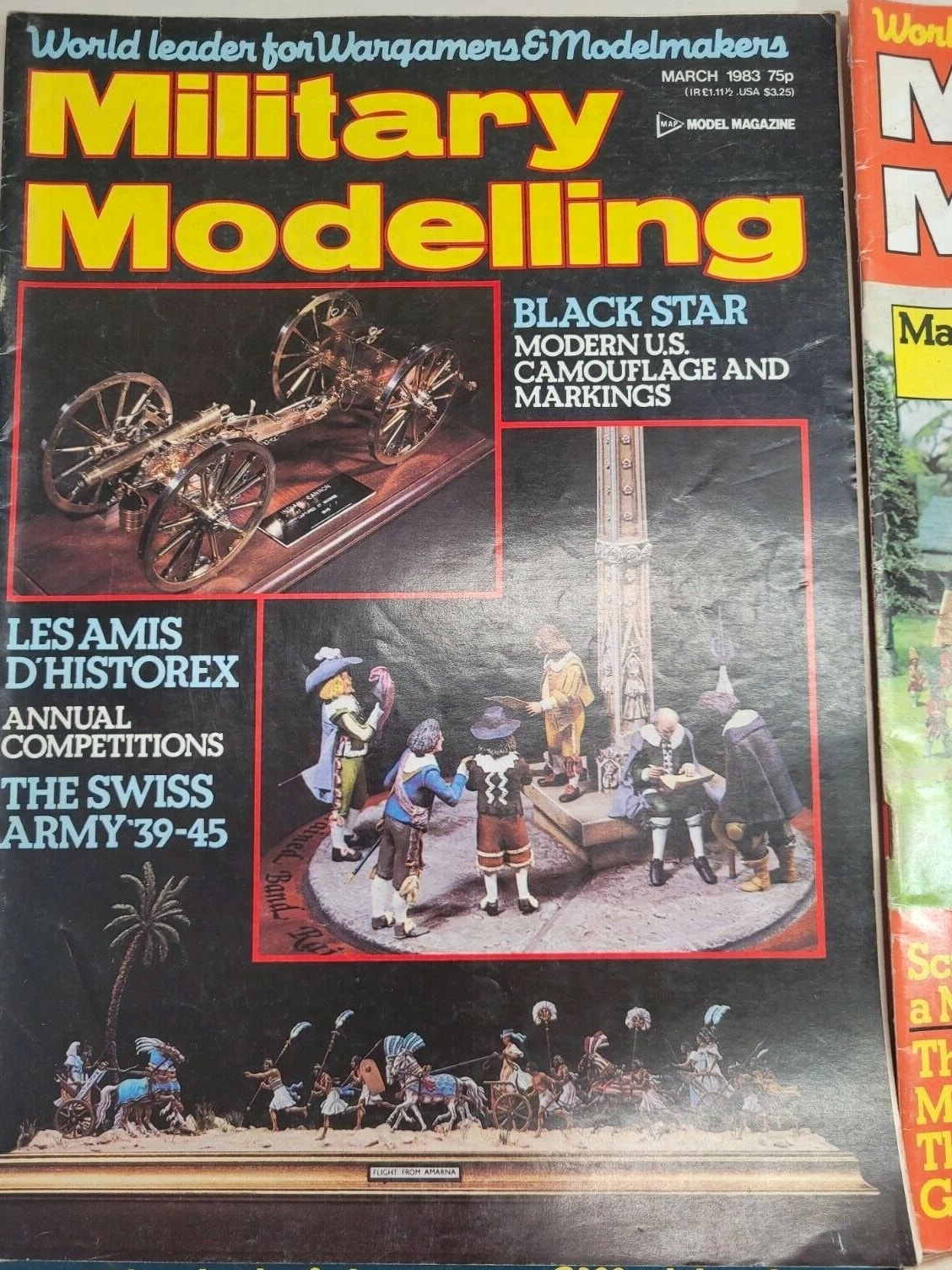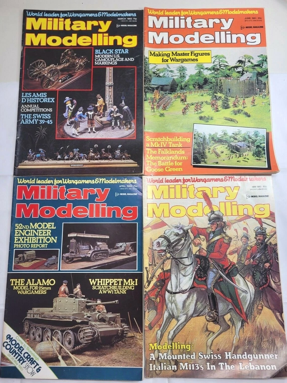 Vintage Magazine Collection Featuring Detailed Military Model Crafting and Historical Wargaming Techniques from 1983 • Authentic Vintage Military Modeling Magazines • Covers Wargaming and Model Making • Includes 4 Different Issues from 1983 • Collector's Item for Hobbyists Slight cover wear present; one issue includes significant crease