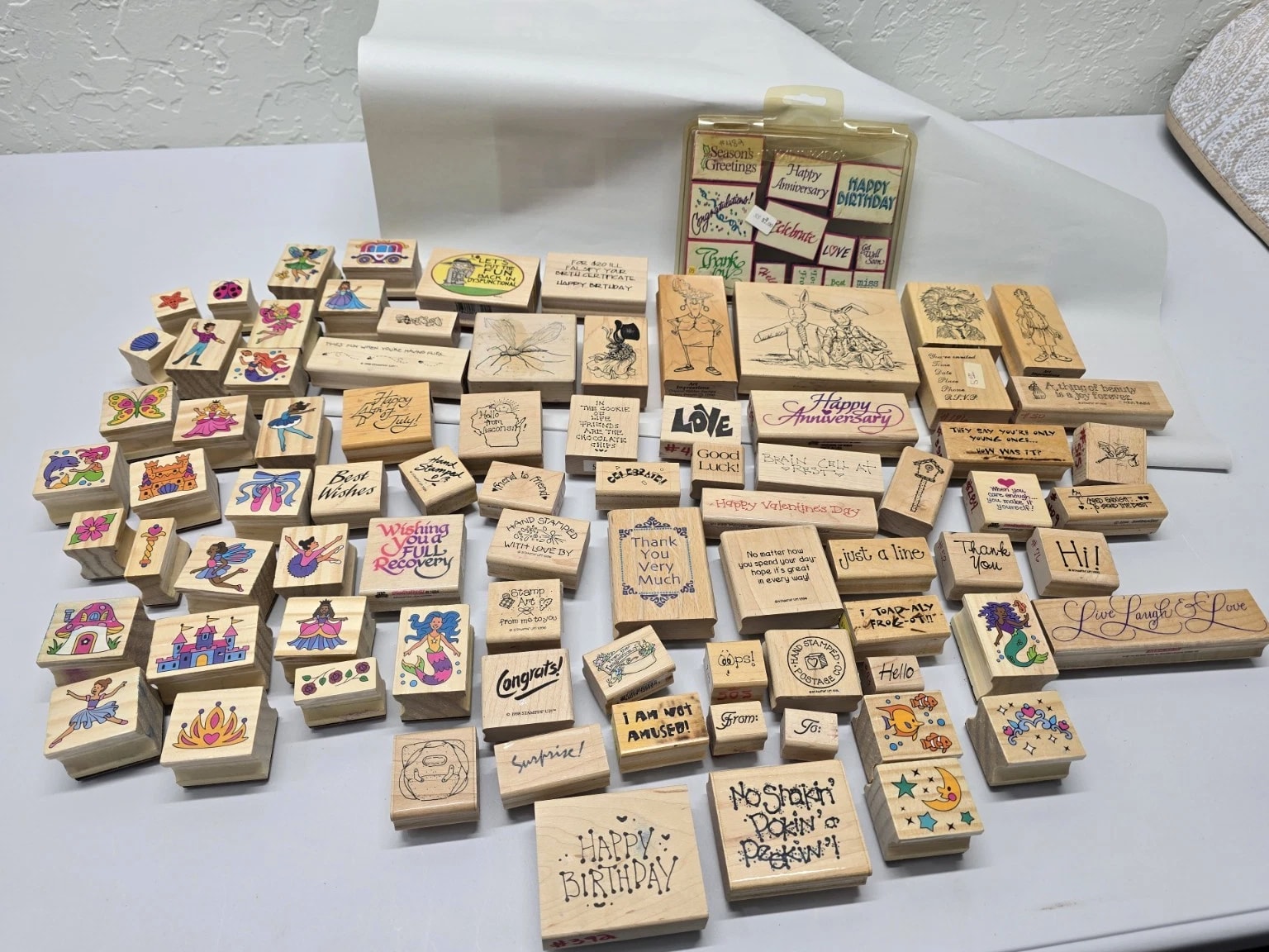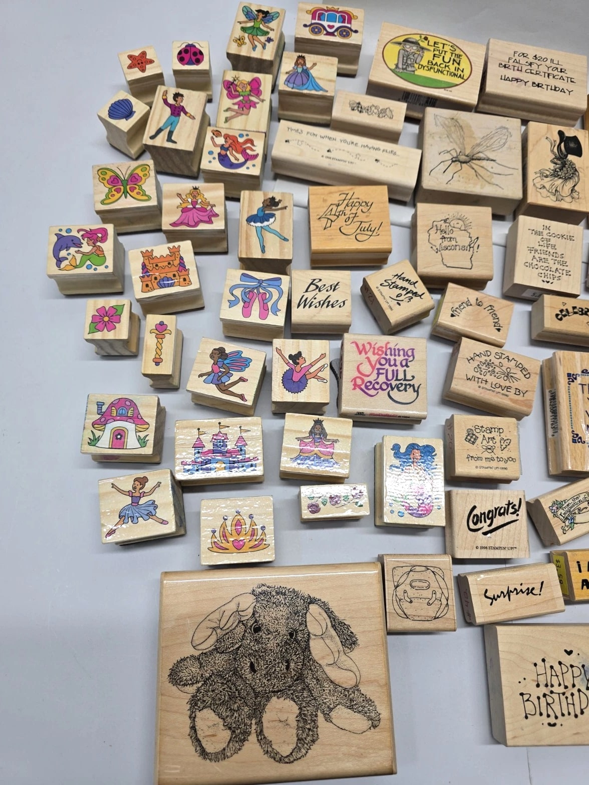 Lot of 94 Vintage and Modern Wooden & Rubber Ink Stamps for Arts Crafts