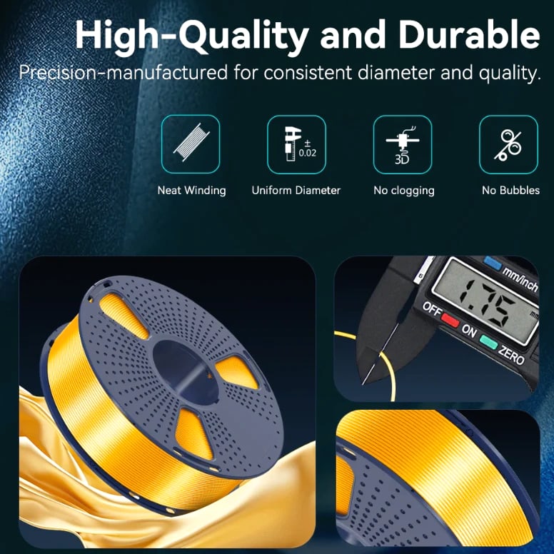 SUNLU 1.75mm PLA+ SILK Filament Vacuum Packed Shiny Neatly Wound