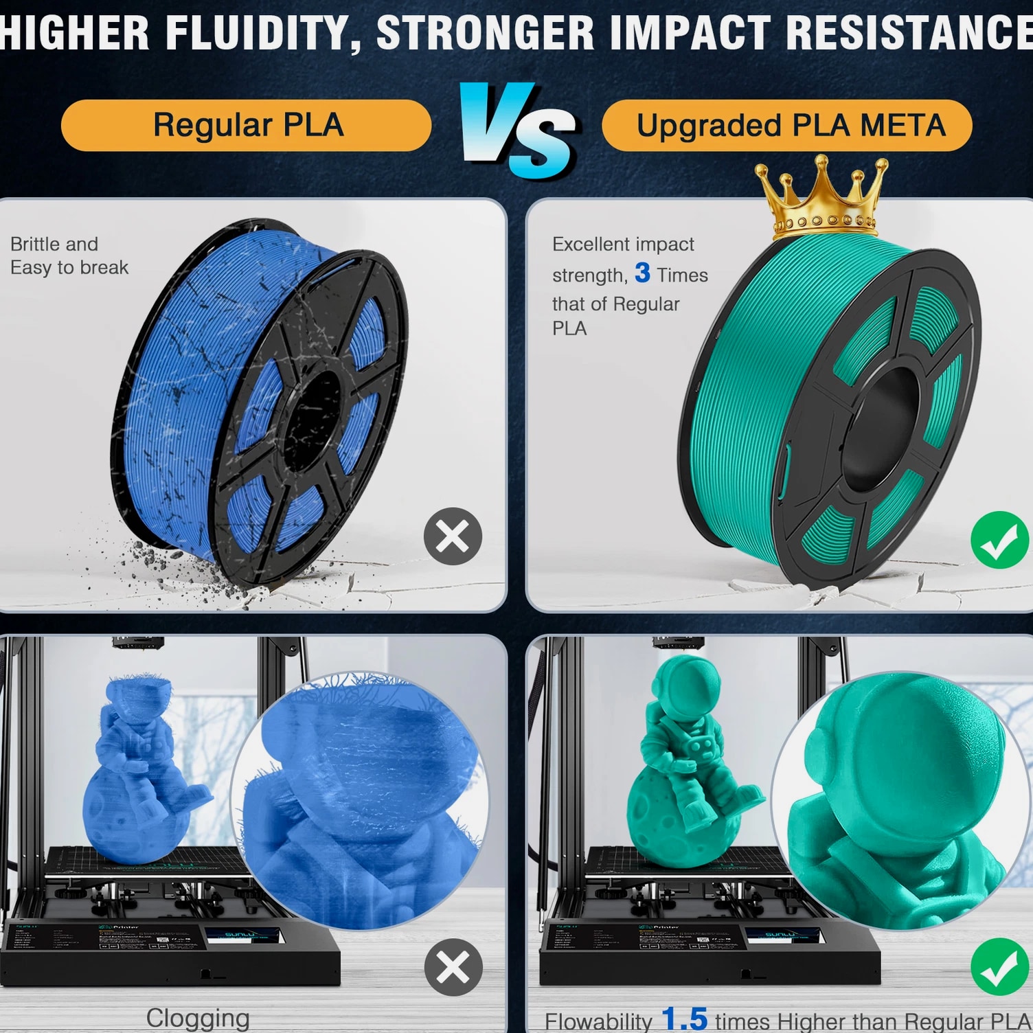 SUNLU 1KG 1.75MM Meta PLA Filament High Hardness Highly Fluid 3D Printer