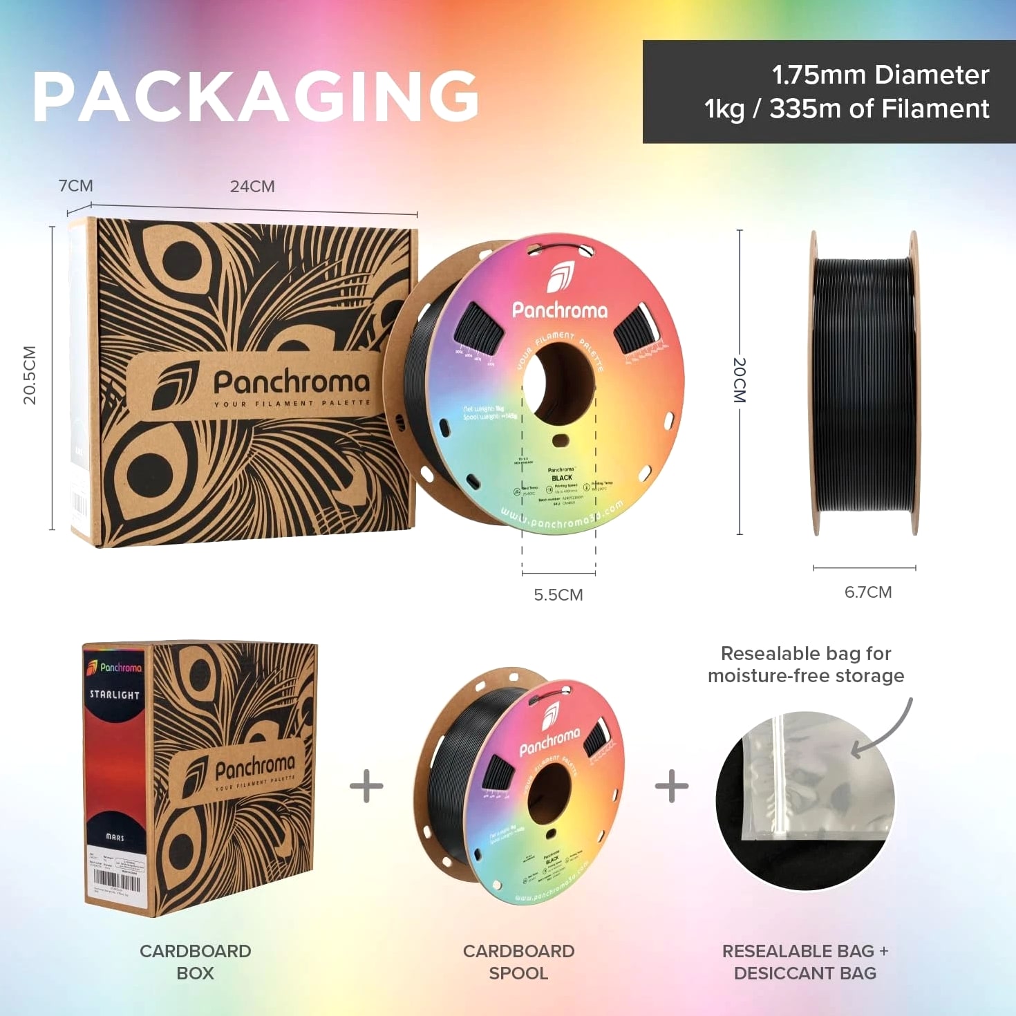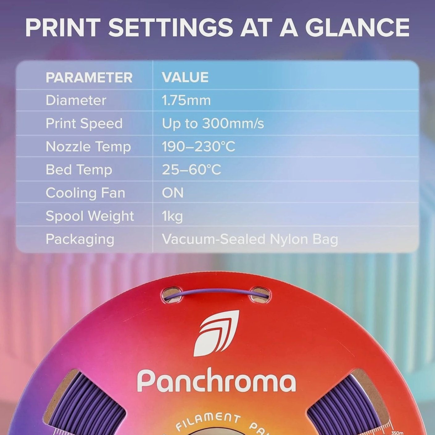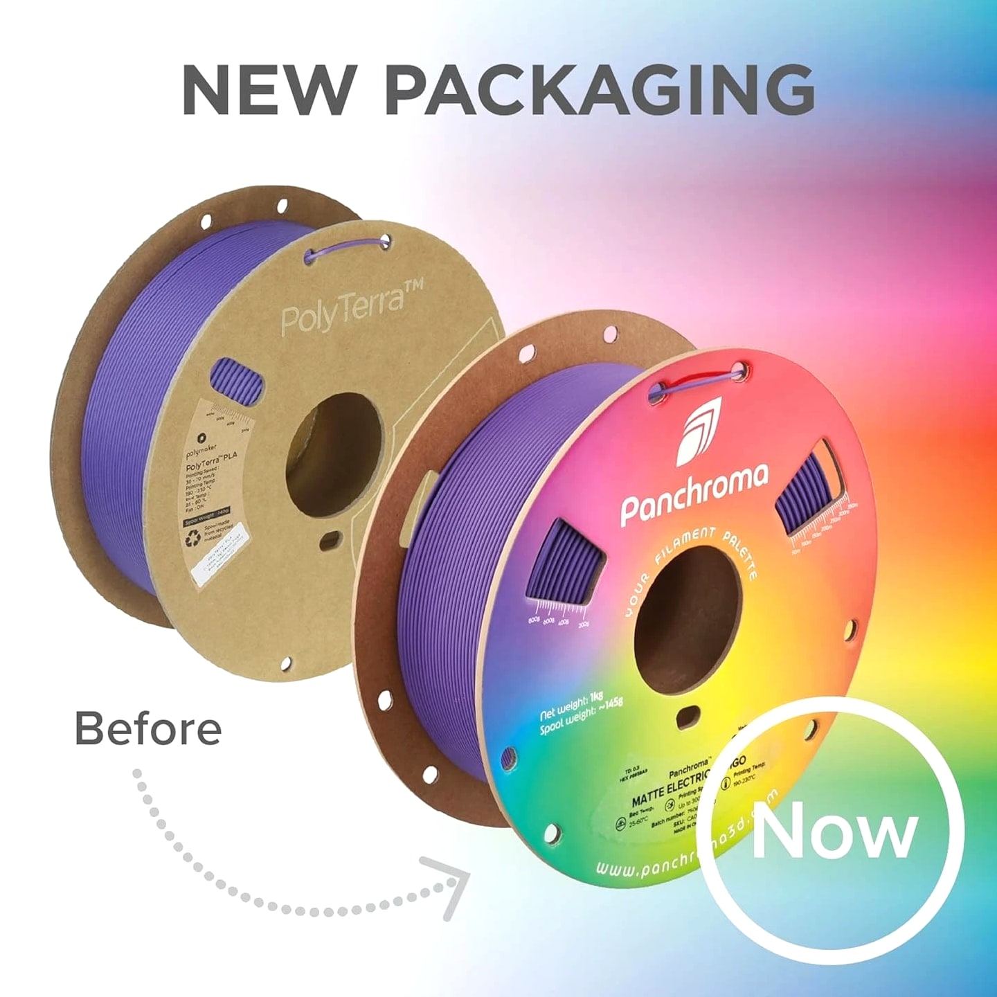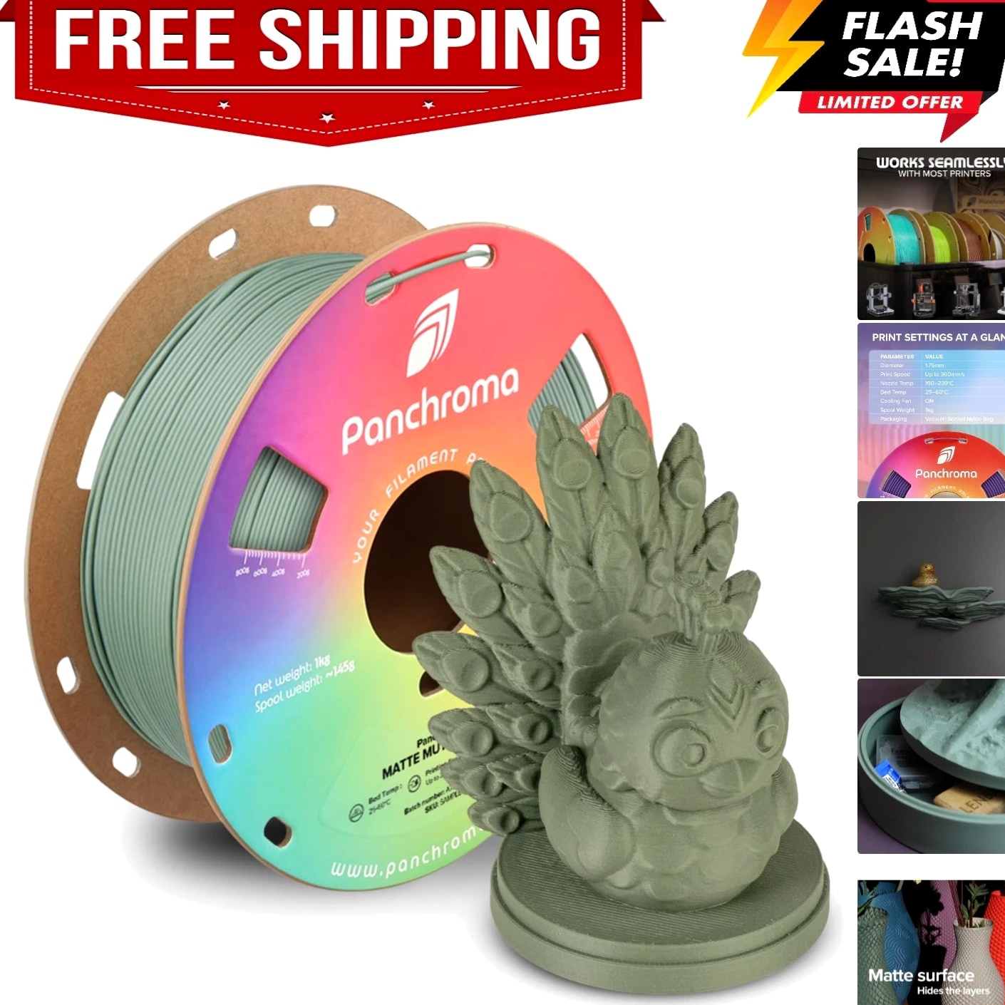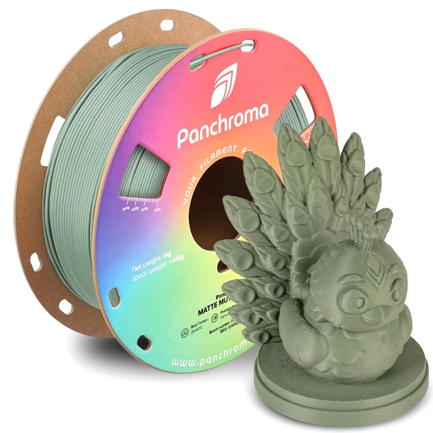 Panchroma Matte PLA Filament, Muted Green 1kg 3D Printing Material, Formerly Polyterra Matte, Compatible with Most FDM 3D Printers, 1kg Spool PolyTerra is now Panchroma: The same superior formula is available as Panchroma Matte PLA, offered in 38+ vibrant colors with a fresh look and expanded range. Legacy PolyTerra colors remain available but in limited selection. Panchroma by: Your Filament Palette! Panchroma is a new product family dedicated to offering a wide spectrum of colors, surface finishes, and unique aesthetic effects. These filaments are meticulously engineered for exceptional printability, ensuring compatibility with any open-filament FFF/FDM 3D printer. Panchroma aims to enhance your creative possibilities in 3D printing, transforming your visions into vibrant, tangible realities. Matte Finish & Vibrant Consistent Color: Panchroma Matte PLA is a 3D printing material with an impressive matte finish that conceals print layers. Our quality control ensures vibrant, consistent colors, making it perfect for everything from small arts and crafts to large professional projects. Tangle-Free & Moisture-Free Design: Quality is our priority. Panchroma Matte PLA filament is meticulously wound to prevent tangling. It is dried and vacuum-sealed in a resealable ziplock bag with a desiccant. Note: To avoid tangles after use, pass the filament through the fixed hole. Printing Performance: Panchroma PLA material eliminates warping, jamming, blobs, and layer delamination. It is compatible with the default settings of most mainstream printers and supports high-speed printing. Cardboard Spool with Reinforced Hard Edge: Panchroma 3D printer filament is packaged in upgraded, fully recycled cardboard spools and boxes. The reinforced edge prevents dust fraying and protects against deformation and delamination. Featured Products Basic PLA Filament Add to Cart Matte PLA Refill Material Add to Cart Dual Color Matte PLA Add to Cart High Temperature PLA Add to Cart Silk PLA Filament Add to Ca