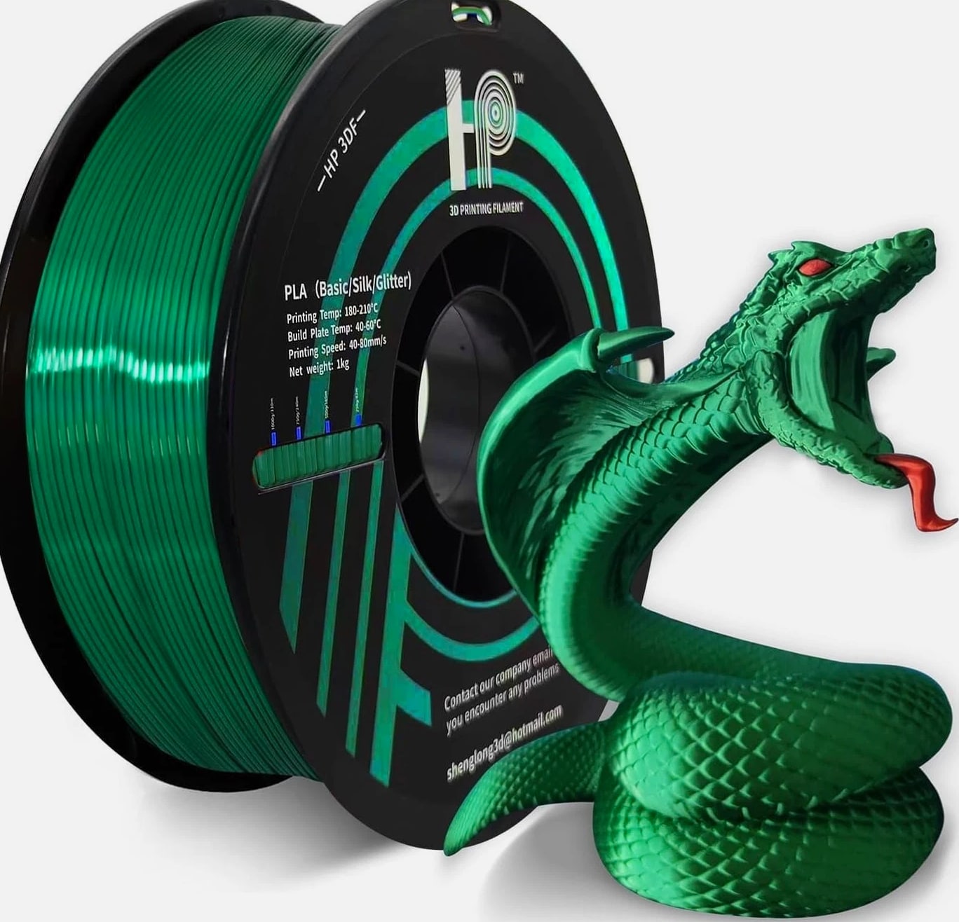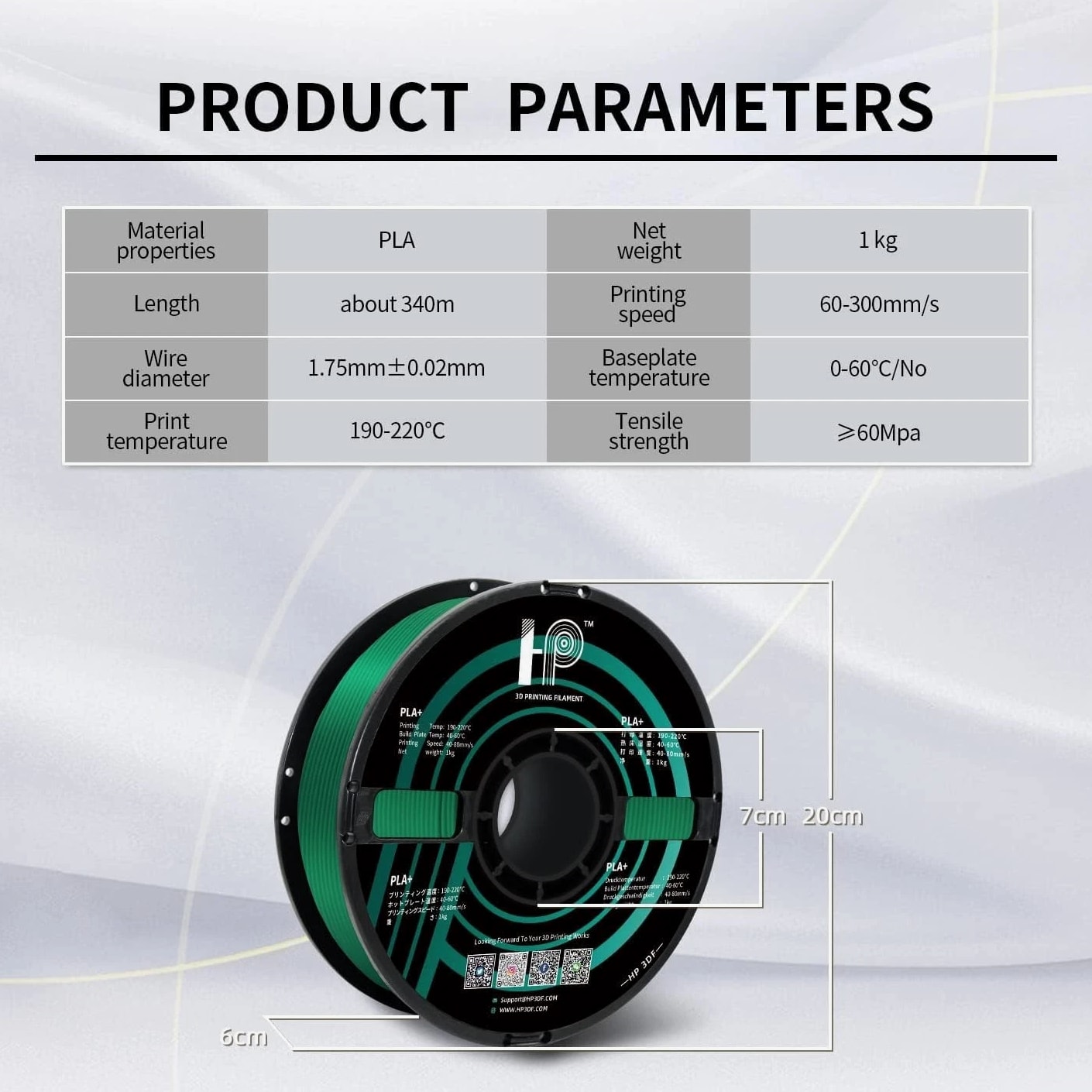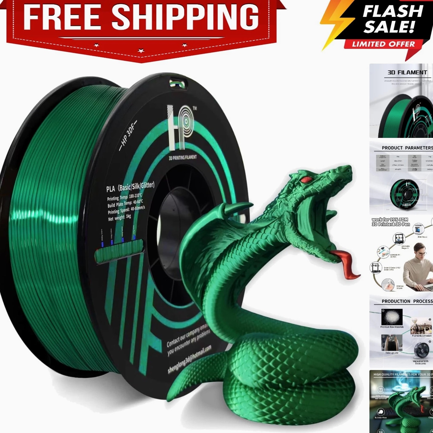 Silk PLA Filament, 3D Printer Material, PLA Filament Dimensional Accuracy +/- , 1KG Spool lbs, Compatible with Most FDM Printers Silk Green 【Toughness Enhanced PLA Materials】--- silk filament produced with 100% Pure USA PLA raw materials and healthy organic colour powders. Optimized printing quality and excellent layer bonding meeting your demands for printing projects of functional parts with superior toughness. 【Outstanding Features】--- Clog-Free, Bubble-Free, Better toughness, Smooth Printing, Excellent bed adhesion, Easy print bed removal; meeting your demands for printing projects of functional parts with higher toughness. 【Mature Production Process】--- Advanced production equipment with vacuum sealed packaging and desiccant for maximum moisture protection, keeping them dry and preventing dust and foreign particles from jamming the nozzles and producing smooth 3D model prints. 【Wide Compatibility】--- Works and harmonizes perfectly with all common FDM 3D printers, Spool Diameter: 8" - Spool Width: " - Spool Hub Hole Diameter: " 【Risk-Free】--- Safe procurement without any risks: One-year free trial, 30 day satisfaction guarantee if you're not satisfied.