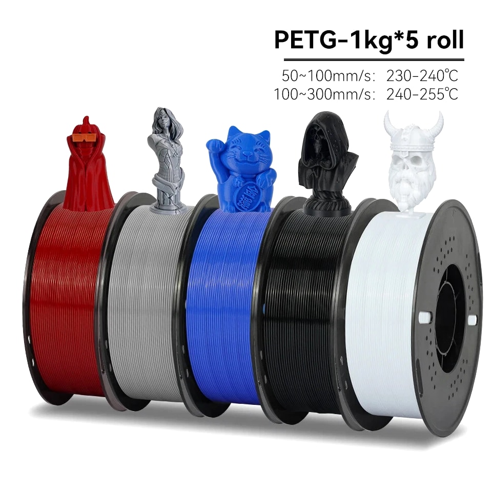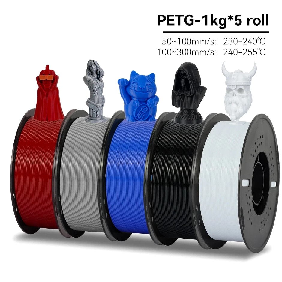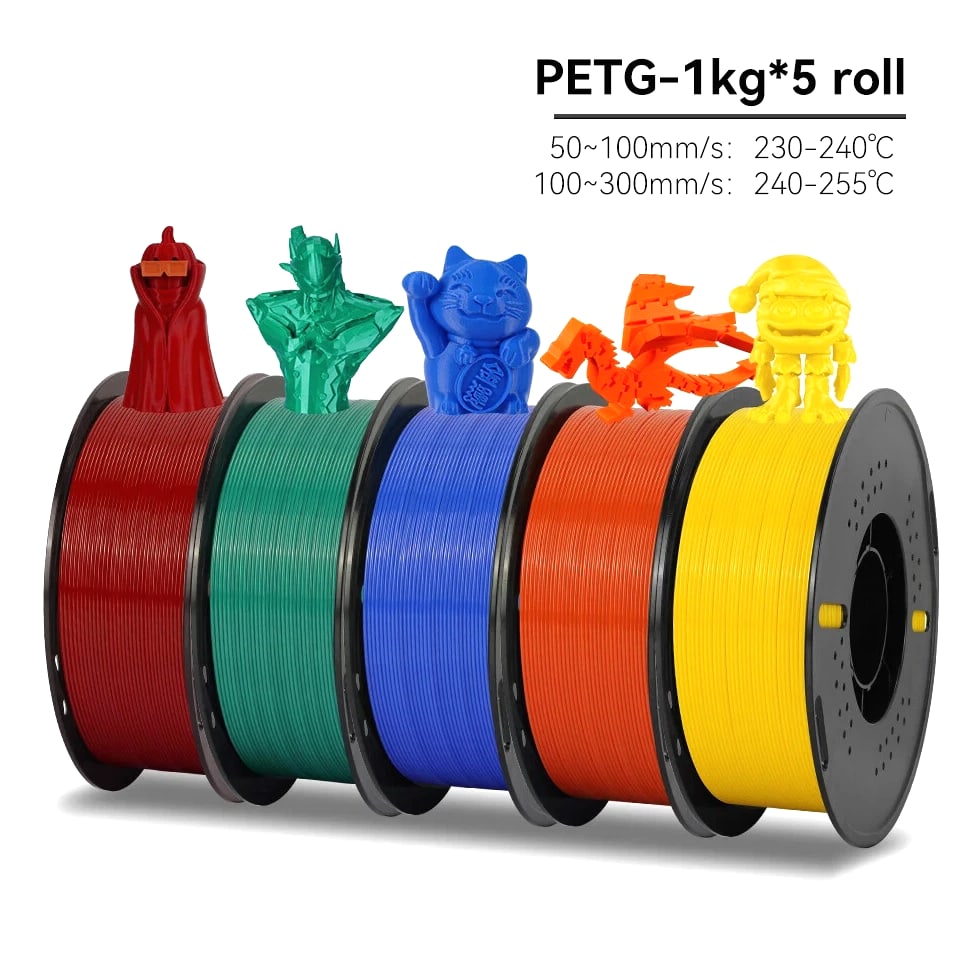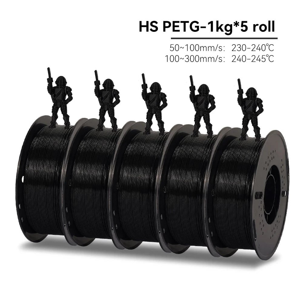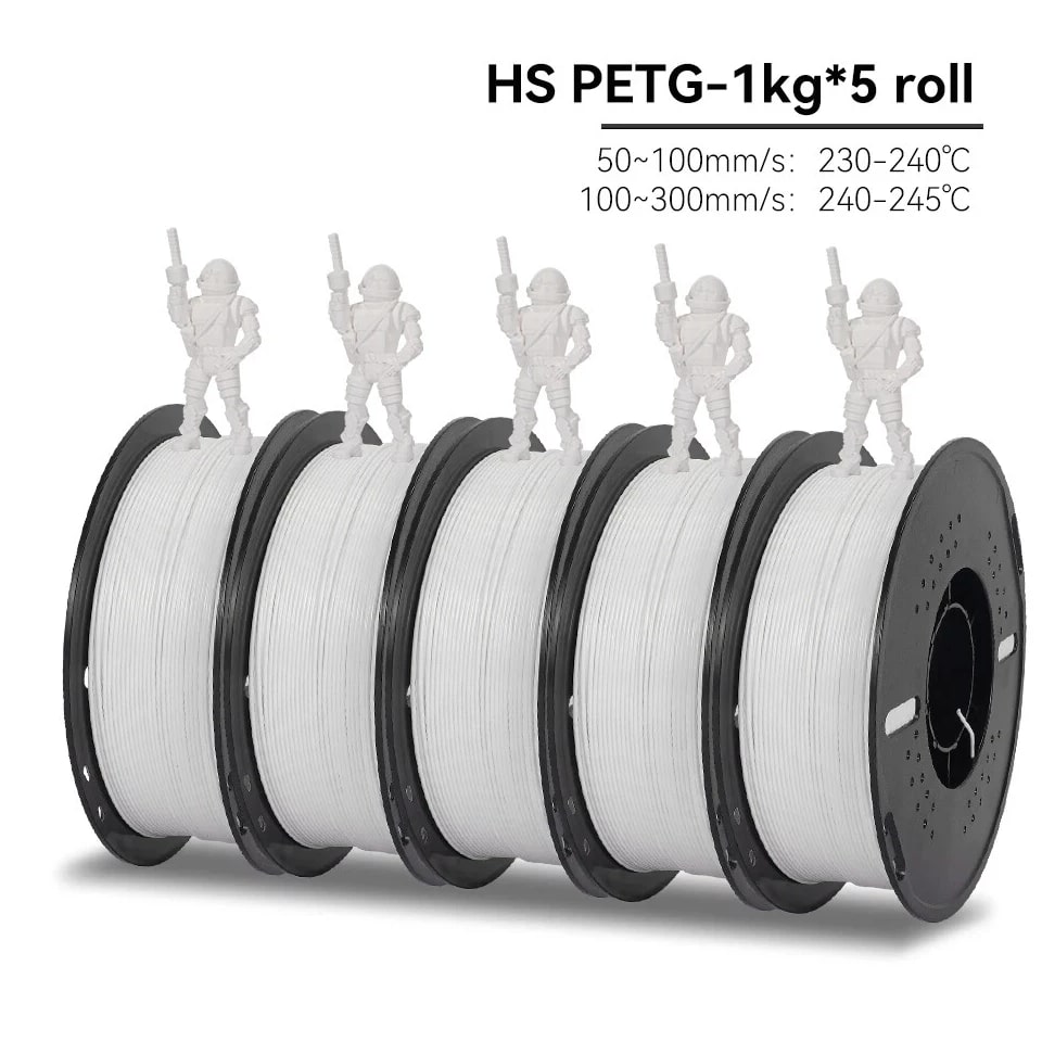 KEEPANG PLA/HS-PLA/PETG/Silk PLA 3D Printer Filament 1.75mm Mix Color 5 Rolls High-Speed PLA Printing Material for Bambu Lab Advantage Faster Printing: Thanks to the high fluidity and fast cooling formula, HS-PETG supports up to 600mm/s print speed. High fluidity provides sufficient melting and extrusion, while rapid cooling provides fast shaping for high-speed printing. Precise Print: High stability ensures small changes in thermal expansion and cold contraction even when printing at high speeds, bringing high precision in dimensions and better results. Uniform Wire Diameter, Stable Extrusion: Based on two-way laser diameter measurement, the filament diameter accuracy is 1.75±0.03mm, which makes it flow out more smoothly. Neat Winding with Smooth Printing: Precise filament diameter control and automatic winding arrangement are combined to ensure smoother printing without tangling. Specification *Product Name: Hyper Series PETG *Color: White, Black, Blue, Red. Grey ,Green, Orange, Yellow, Sliver, Brown(Optional) *Wire Diameter: 1.75±0.03mm *Net Weight: 1Kg/2.2lb *Printing Temperature: 190-230°C Packing List: 5 Roll HS-PETG