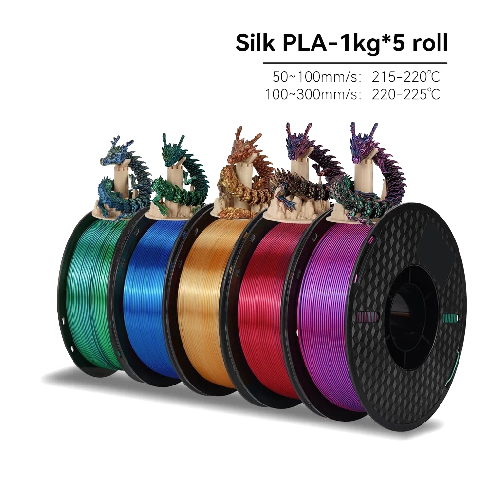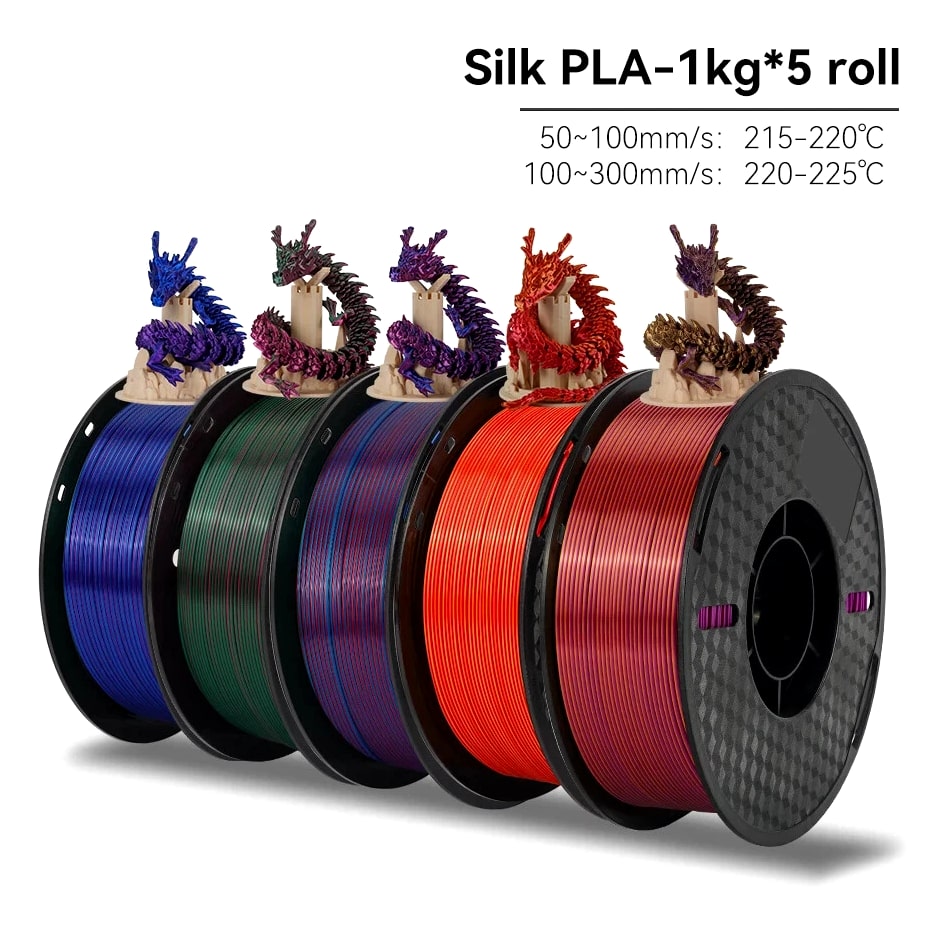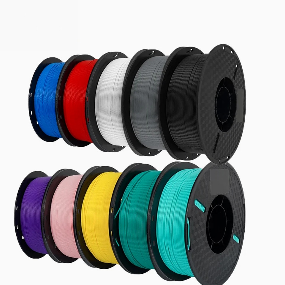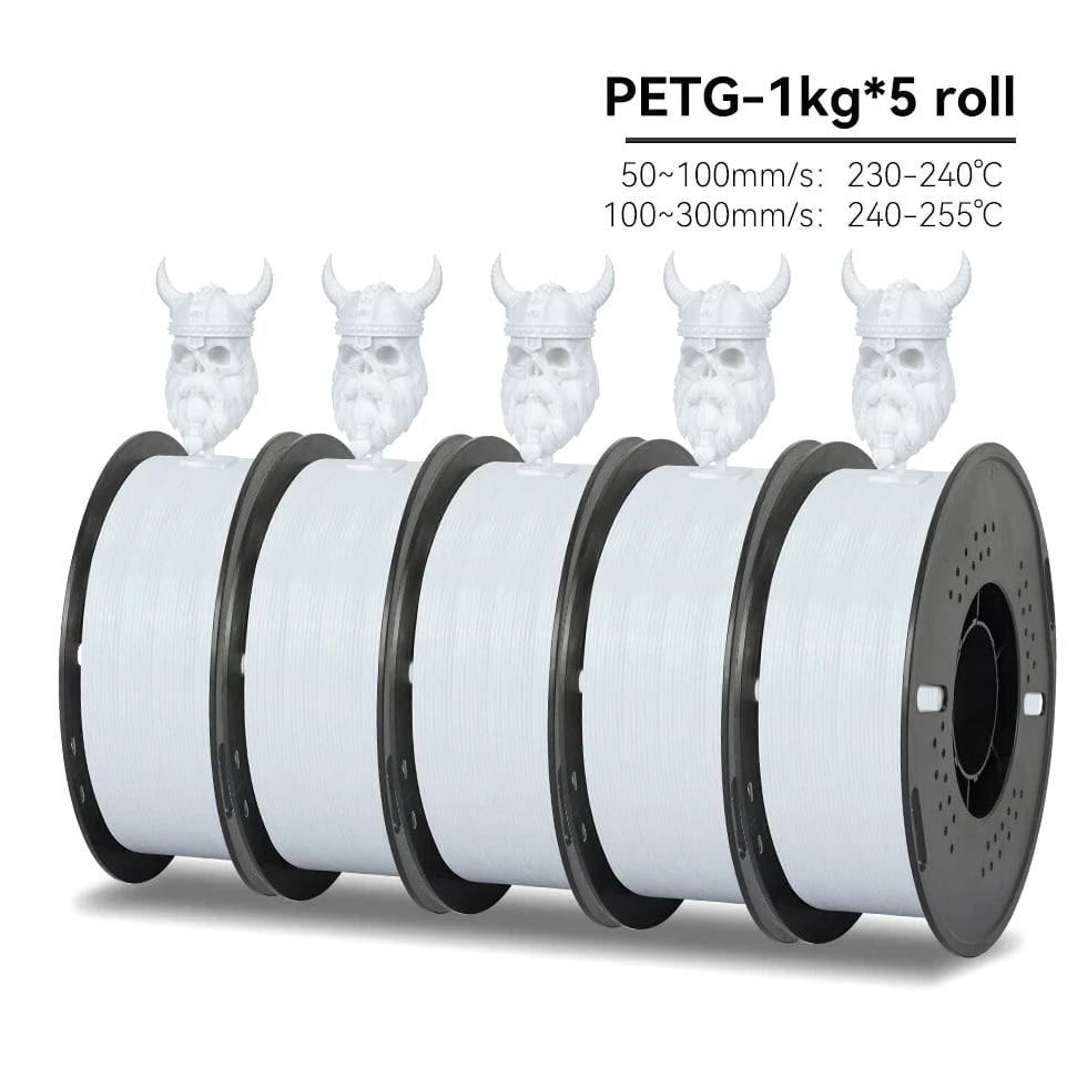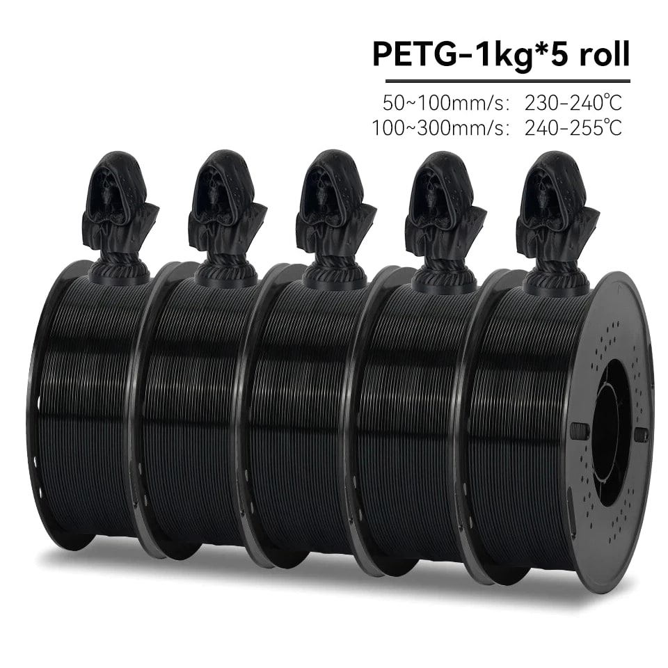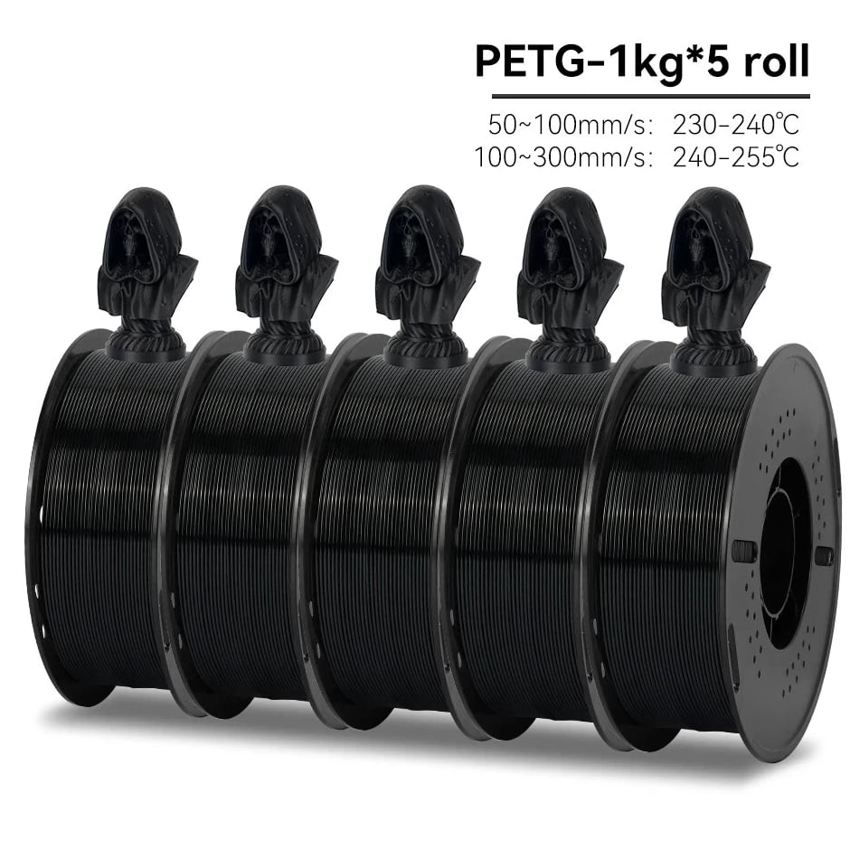 KEEPANG PLA/HS-PLA/PETG/Silk PLA 3D Printer Filament 1.75mm Mix Color 5 Rolls High-Speed PLA Printing Material for Bambu Lab Advantage Faster Printing: Thanks to the high fluidity and fast cooling formula, HS-PETG supports up to 600mm/s print speed. High fluidity provides sufficient melting and extrusion, while rapid cooling provides fast shaping for high-speed printing. Precise Print: High stability ensures small changes in thermal expansion and cold contraction even when printing at high speeds, bringing high precision in dimensions and better results. Uniform Wire Diameter, Stable Extrusion: Based on two-way laser diameter measurement, the filament diameter accuracy is 1.75±0.03mm, which makes it flow out more smoothly. Neat Winding with Smooth Printing: Precise filament diameter control and automatic winding arrangement are combined to ensure smoother printing without tangling. Specification *Product Name: Hyper Series PETG *Color: White, Black, Blue, Red. Grey ,Green, Orange, Yellow, Sliver, Brown(Optional) *Wire Diameter: 1.75±0.03mm *Net Weight: 1Kg/2.2lb *Printing Temperature: 190-230°C Packing List: 5 Roll HS-PETG