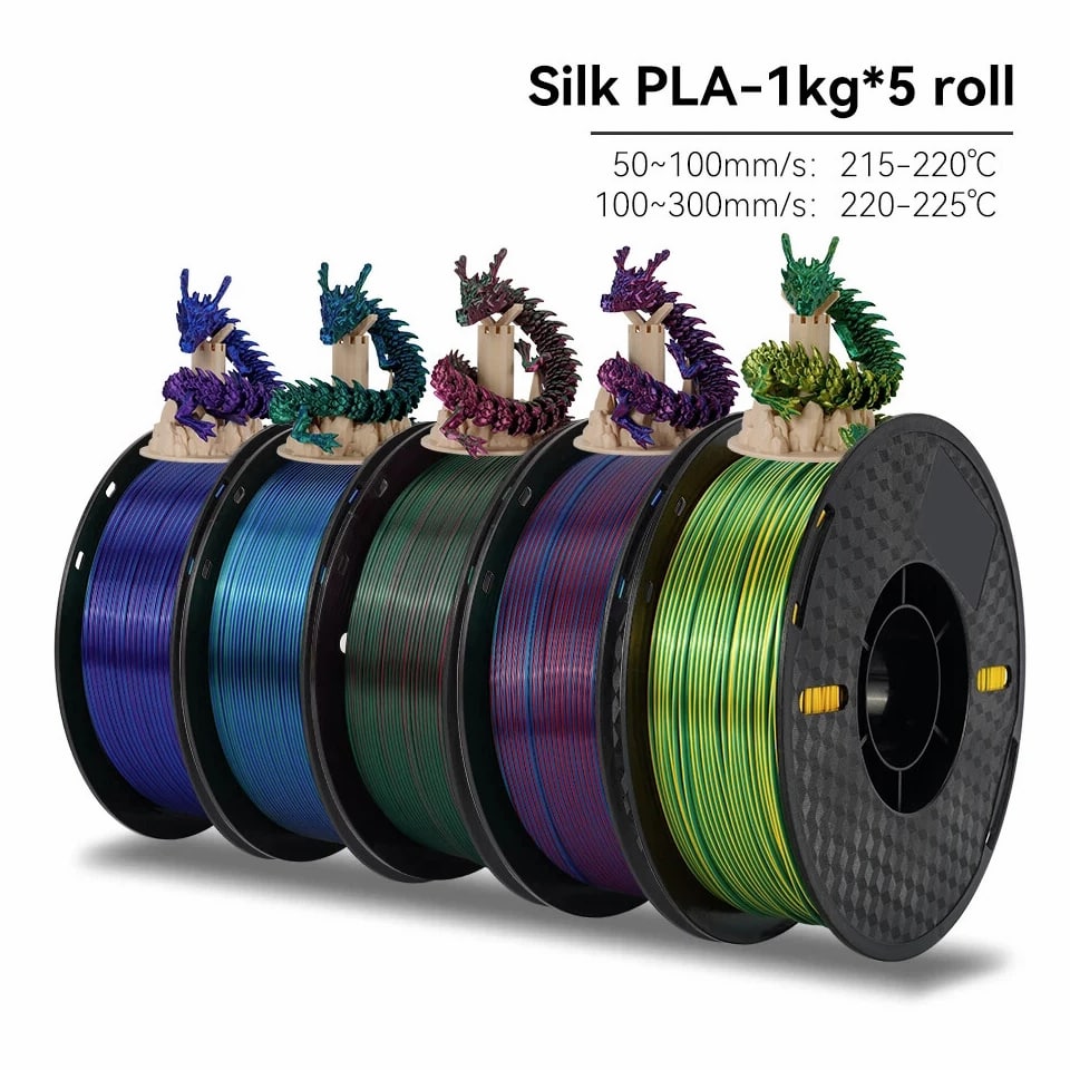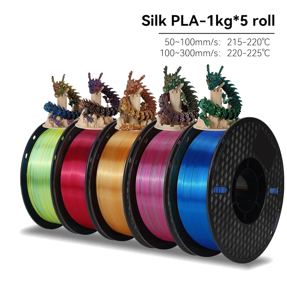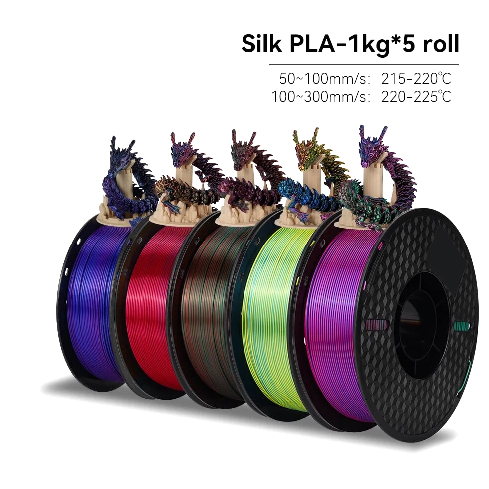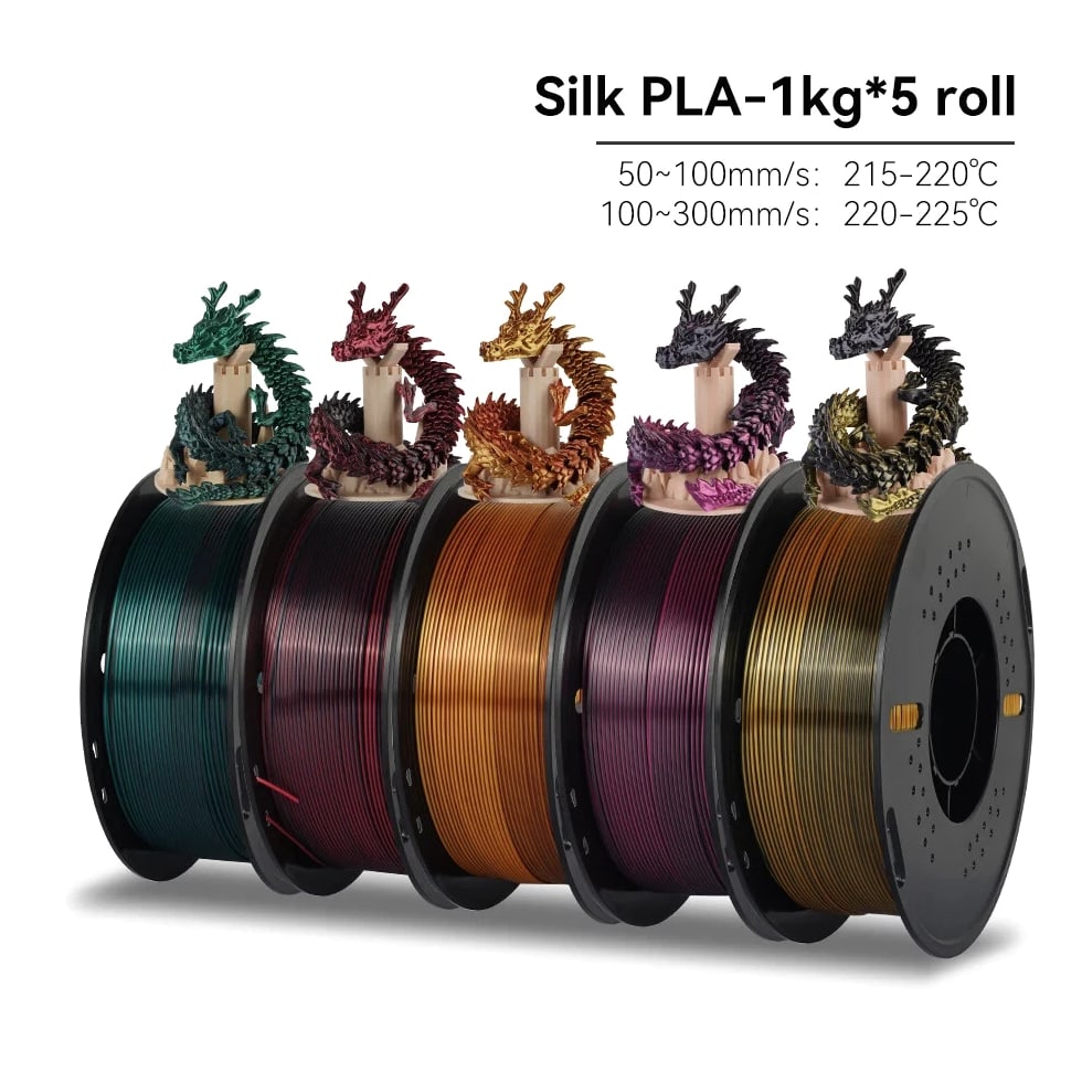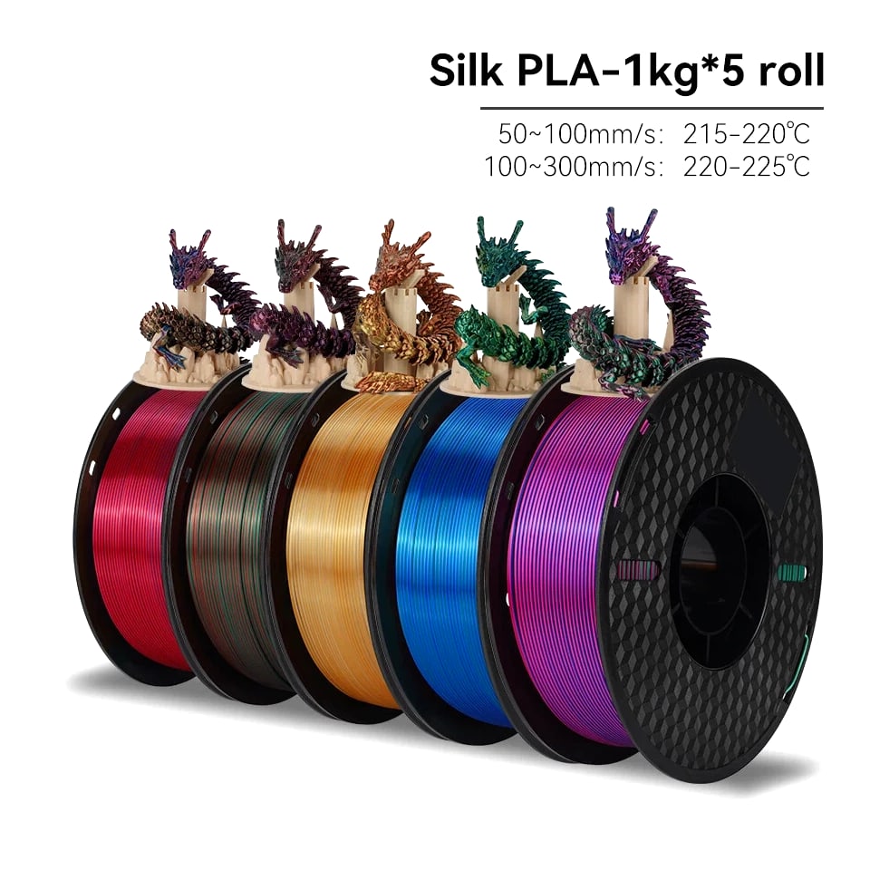 KEEPANG PLA/HS-PLA/PETG/Silk PLA 3D Printer Filament 1.75mm Mix Color 5 Rolls High-Speed PLA Printing Material for Bambu Lab Advantage Faster Printing: Thanks to the high fluidity and fast cooling formula, HS-PETG supports up to 600mm/s print speed. High fluidity provides sufficient melting and extrusion, while rapid cooling provides fast shaping for high-speed printing. Precise Print: High stability ensures small changes in thermal expansion and cold contraction even when printing at high speeds, bringing high precision in dimensions and better results. Uniform Wire Diameter, Stable Extrusion: Based on two-way laser diameter measurement, the filament diameter accuracy is 1.75±0.03mm, which makes it flow out more smoothly. Neat Winding with Smooth Printing: Precise filament diameter control and automatic winding arrangement are combined to ensure smoother printing without tangling. Specification *Product Name: Hyper Series PETG *Color: White, Black, Blue, Red. Grey ,Green, Orange, Yellow, Sliver, Brown(Optional) *Wire Diameter: 1.75±0.03mm *Net Weight: 1Kg/2.2lb *Printing Temperature: 190-230°C Packing List: 5 Roll HS-PETG