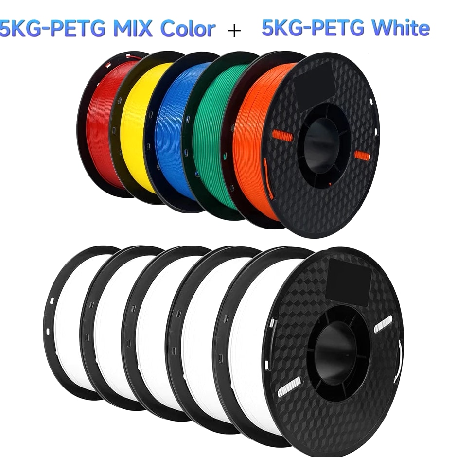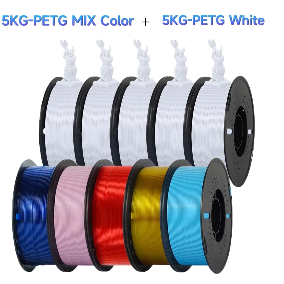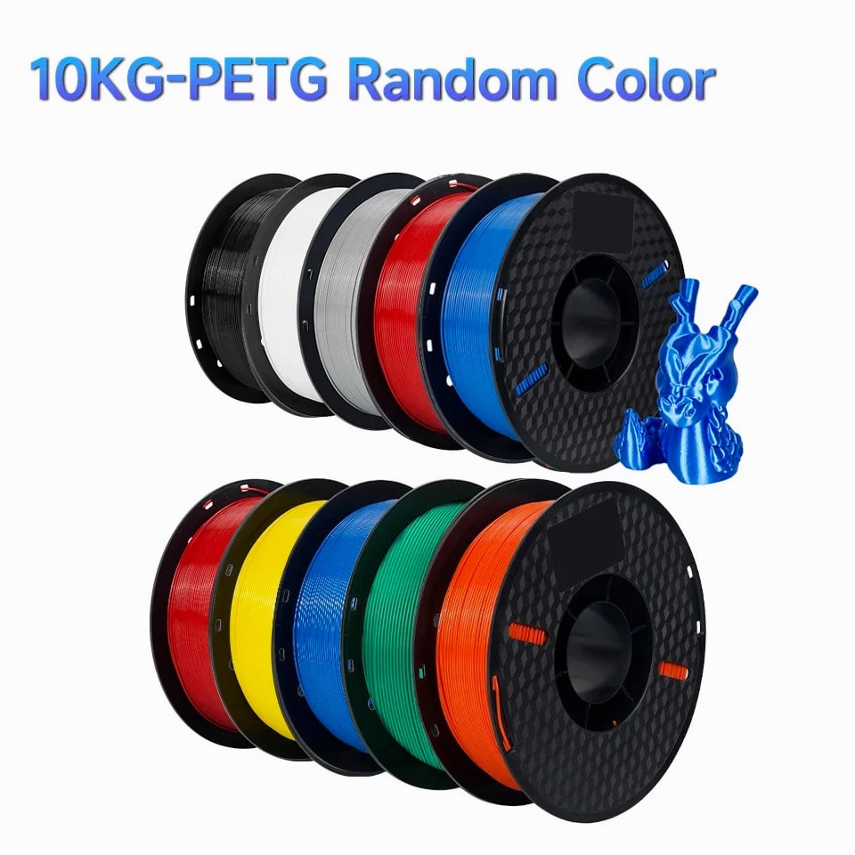 10kg PETG Filament For 3D Printer Plastic Material 22LBS 1.75mm Non-Toxic Eco-Friendly PETG 3D Filament Consumables for Ender Item Description Wire diameter: 1.75mm Tolerance: ±0.02MM Printing temperature: 220-250℃ Bottom plate temperature: need to apply glue when not heating Heating 60-80℃, no glue Rally (KGF): 8-14 Melt index: 6-11g/10min (220℃, 2.16kg) Elongation at break: 210% Printing speed: 50-100MM/s Air bubbles: 100% zero bubbles Net weight: 1KG/roll Gross weight: 1.3KG/roll Length: 1.75MM(1KG)=320M, PETG Filament Characteristics: 1. Environmental protection and non-toxic; 2. Bright color; 3. Low shrinkage; 4. Good toughness, not easy to be brittle, good acid and alkali resistance, excellent toughness, weather resistance, and good adhesion. 5. Good dimensional stability, no cracks and warping. 6. High transparency and good gloss. Suitable for all types of FDM3D printers, compatible with all kinds of commonly used models, crafts, industry pieces, advertising words, etc.