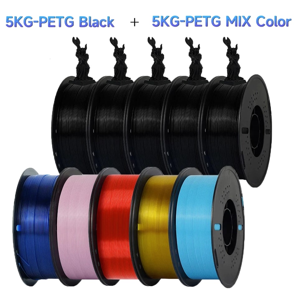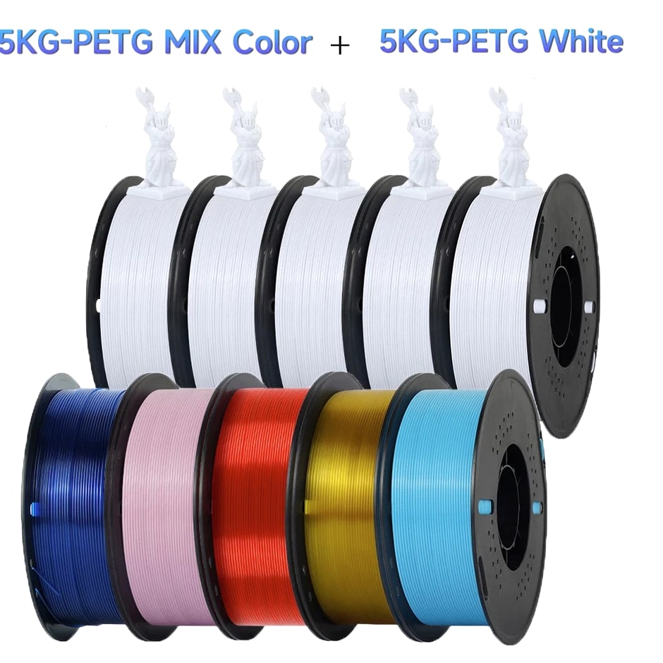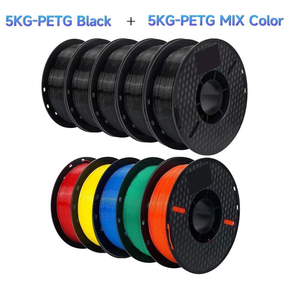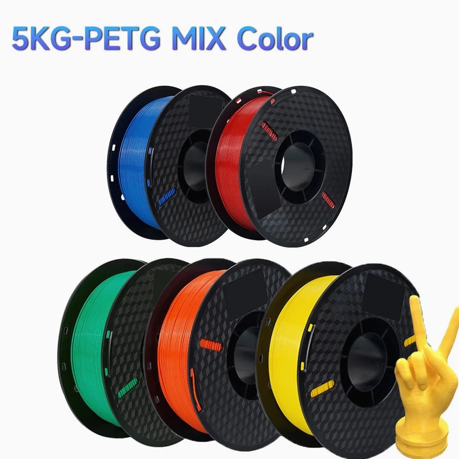 10kg PETG Filament For 3D Printer Plastic Material 22LBS 1.75mm Non-Toxic Eco-Friendly PETG 3D Filament Consumables for Ender Item Description Wire diameter: 1.75mm Tolerance: ±0.02MM Printing temperature: 220-250℃ Bottom plate temperature: need to apply glue when not heating Heating 60-80℃, no glue Rally (KGF): 8-14 Melt index: 6-11g/10min (220℃, 2.16kg) Elongation at break: 210% Printing speed: 50-100MM/s Air bubbles: 100% zero bubbles Net weight: 1KG/roll Gross weight: 1.3KG/roll Length: 1.75MM(1KG)=320M, PETG Filament Characteristics: 1. Environmental protection and non-toxic; 2. Bright color; 3. Low shrinkage; 4. Good toughness, not easy to be brittle, good acid and alkali resistance, excellent toughness, weather resistance, and good adhesion. 5. Good dimensional stability, no cracks and warping. 6. High transparency and good gloss. Suitable for all types of FDM3D printers, compatible with all kinds of commonly used models, crafts, industry pieces, advertising words, etc.