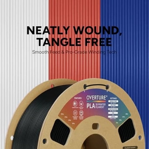OVERTURE PLA Filament 1.75mm, Neatly Wound 3D Printer Material 1kg Spool (2.2lbs)