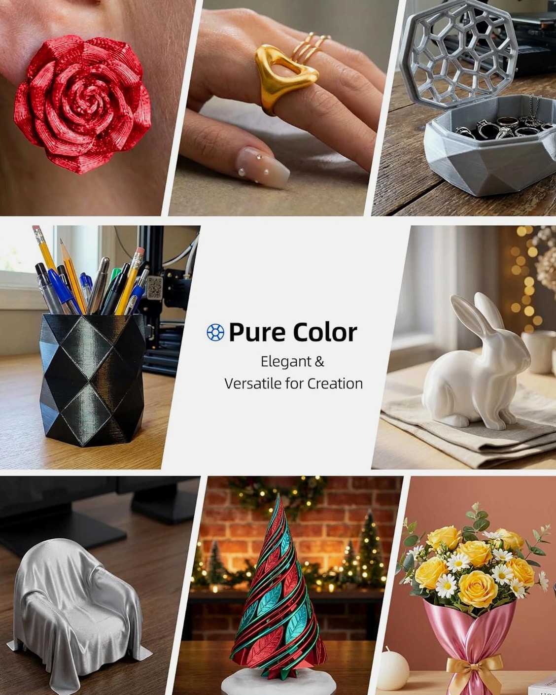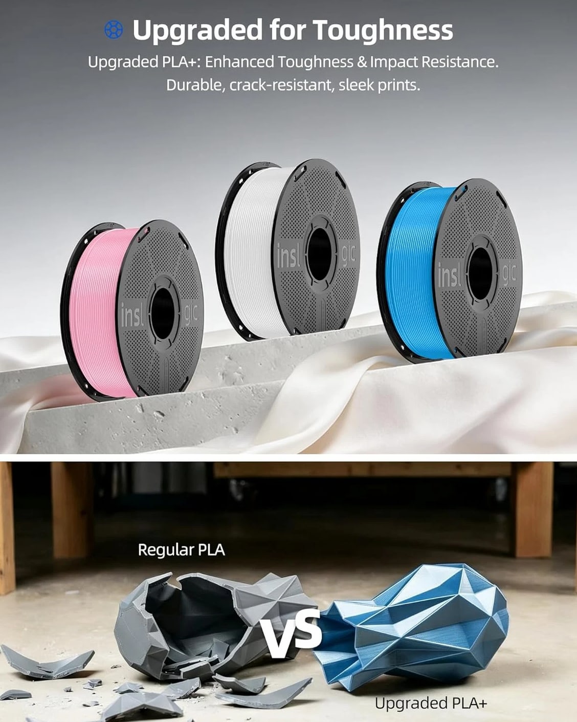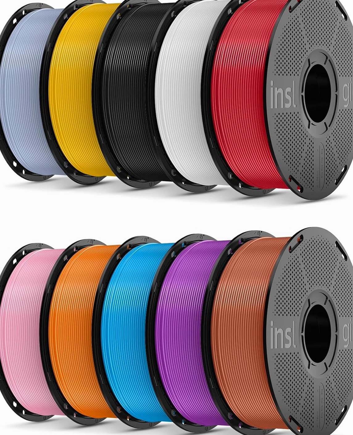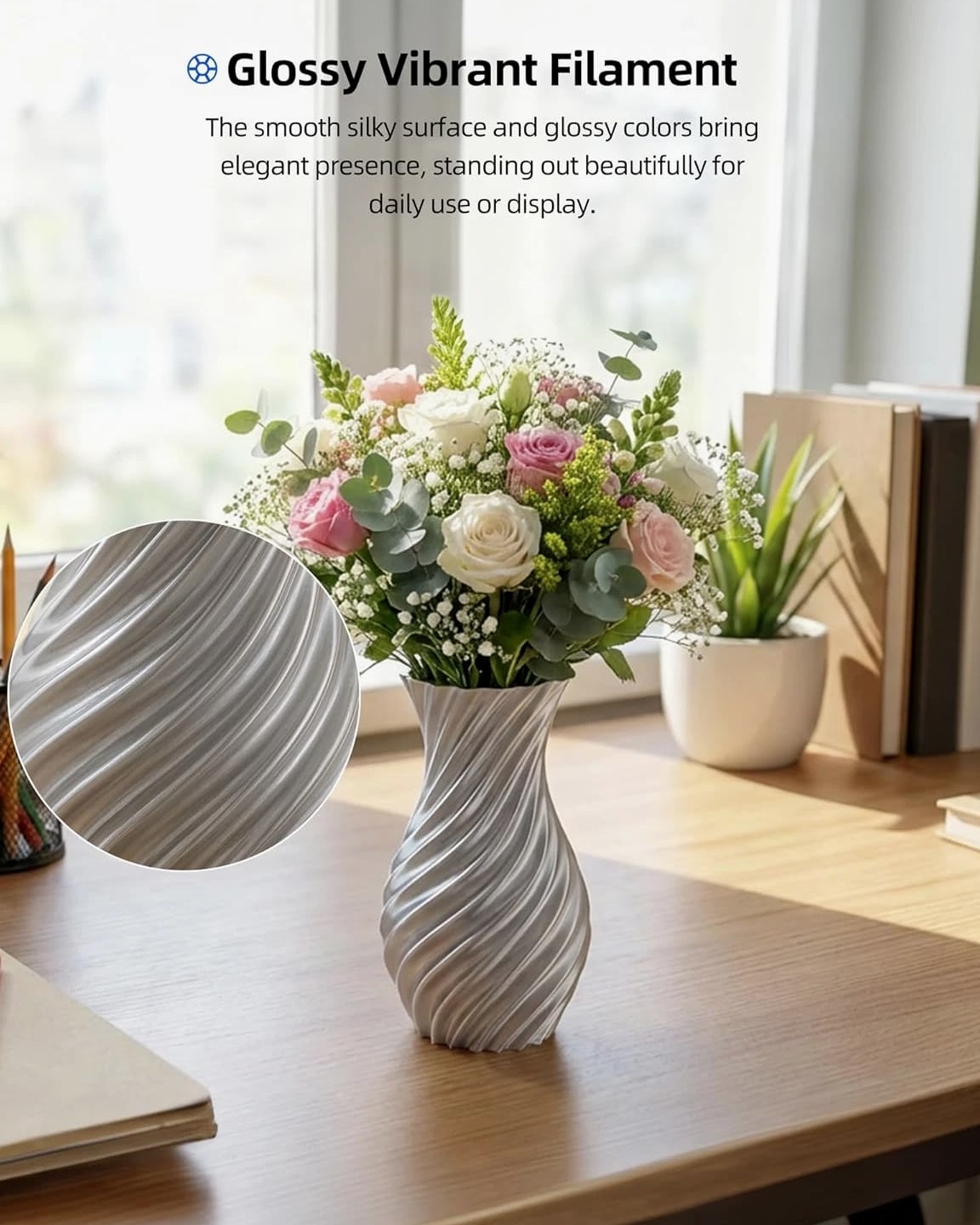 【SILK 3D Printer Filament Bundle】10kg in Total, 10 Spools of 1000g Inslogic 1.75mm SILK filament. Multiple Color Choices, 10 colours: Silver, Gold, Black, White, Red, Pink, Orange, Blue, Purple, and Copper. PLA Silk+ presents a stunning array of vibrant color options to suit all your creative needs. 【Smooth Like Silk】Inslogic Silk PLA gives every 3D print a silky shine and smooth, flawless finish, making your creations look more professional and beautiful. 【Unique Dynamic Color-Shifting Aesthetics】The colors shift dynamically with light and angle, giving each print a unique, vibrant, and fluid appearance. 【Enhanced Layer Adhesion】No need to make any trade-offs between layer adhesion and appearance. Inslogic PLA Silk+ provides enhanced layer adhesion. Prevents warping, cracking, or delamination during printing. 【Maintains Mechanical Strength of PLA】Inslogic multicolor silk filament combines PLA strength for durable, glossy prints with a perfect balance of beauty and function. 【High Precision】Provides a finer texture with intricate details and enhanced depth, creating a more three-dimensional visual effect. 【After-Sales Support】Inslogic offers comprehensive after-sales service and technical support. Contact anytime with any questions.