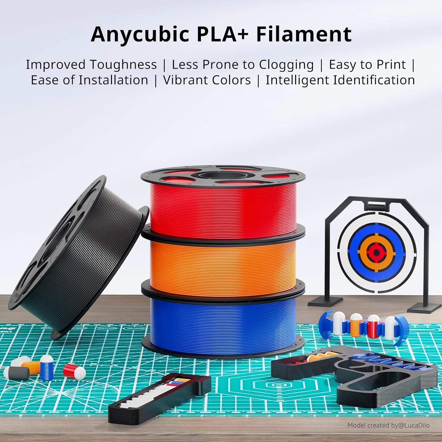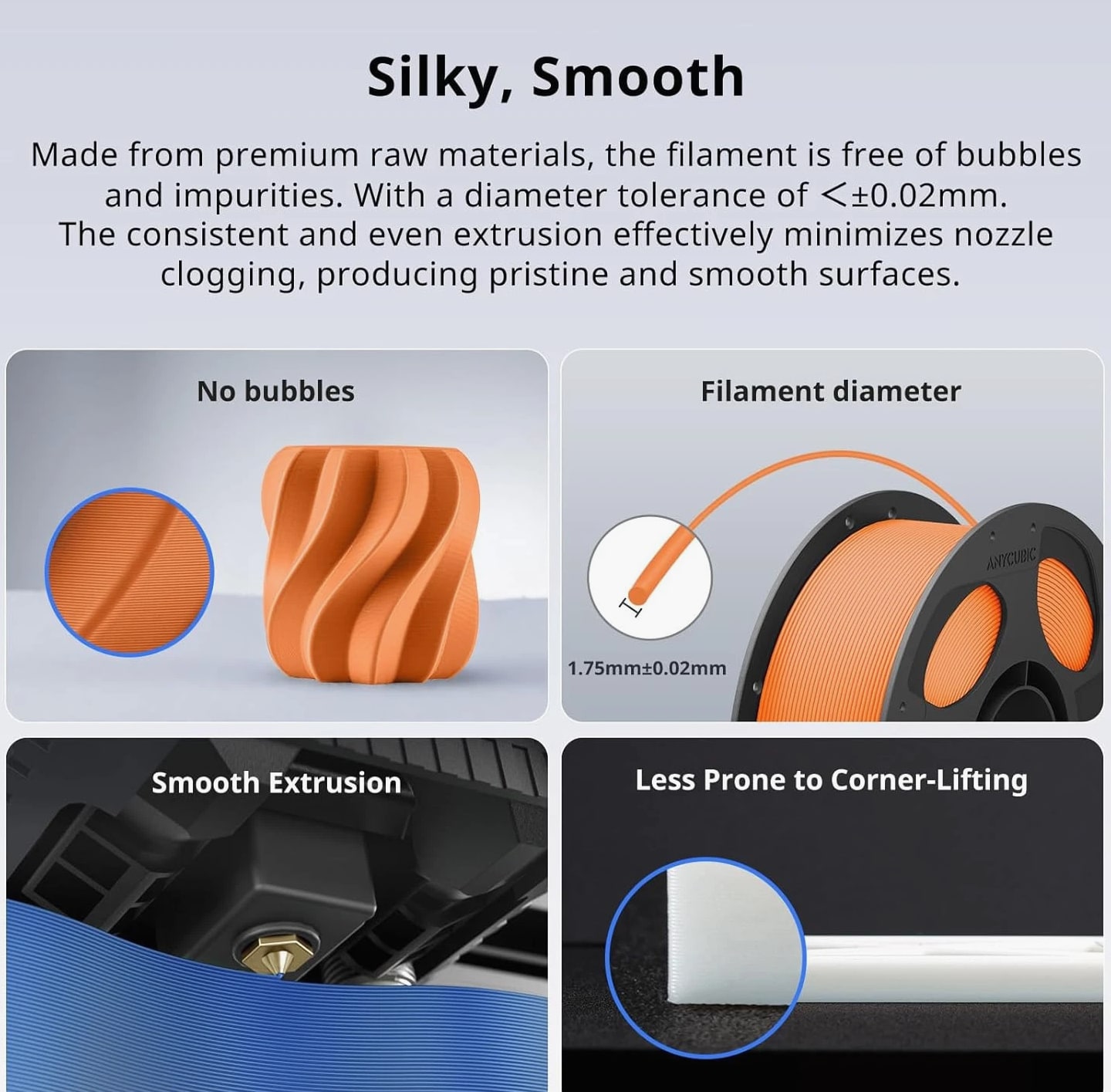 【Boosting Efficiency with Intelligent Identification】Anycubic filaments feature intelligent identification chips that integrate seamlessly with the ACE Pro, allowing for automatic identification of printing information and enhancing the printing experience. 【High Toughness】Anycubic PLA Plus 3D Printer Filament is developed with high toughness and certain impact resistance, not easy to break when subjected to external force. At the same time prints smoothly with minimal layers, suitable for making models of handicrafts, artworks, engineering parts, and so on. 【High Dimensional Accuracy】The winding of Anycubic PLA Plus 3D Filament 1.75mm is tidy and maintains dimensional stability, with a controlled wire diameter tolerance of ±0.02 mm. Its high precision and minimal shrinkage work together to prevent cracks and warping. 【No Clogging, No Bubbles】Without any clogging or bubbles, Anycubic PLA Plus Filament guarantees seamless extrusion of filament, resulting in a refined and consistent finish for the completed model. 【Without Tangle Hassles】Anycubic 3D Printing PLA Plus Filament has no tangle hassles on the roll and easily leaves the spool without crossing turns which can result in less thread pulling and twisting, no clogging. Besides, it can easily lock the filament after use.