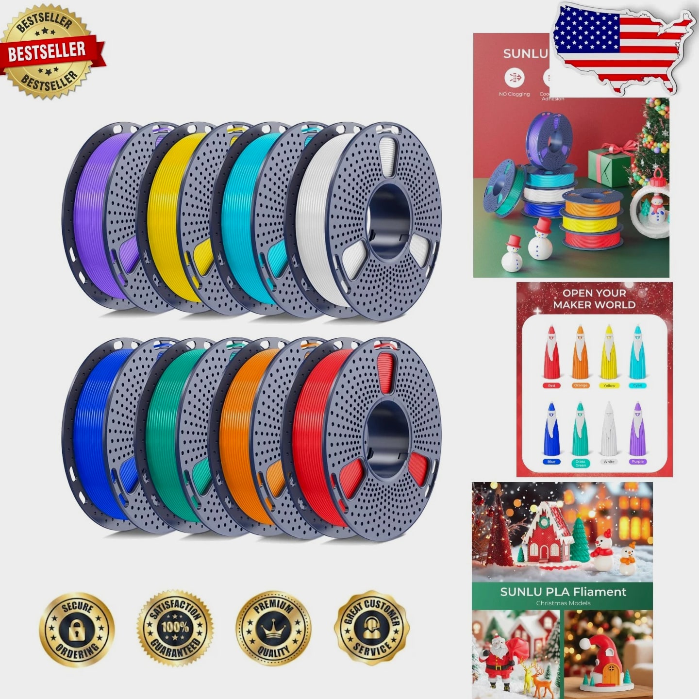 SUNLU 8-Roll PLA Filament 1.75mm Bundle, 250g Mini Spools, Tangle-Free Design, 8 Colors
