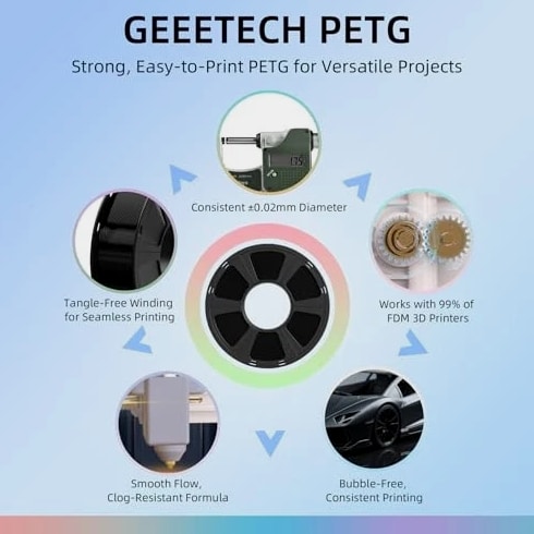 Geeetech PETG Filament 1.75mm Clear, 1 KG (2.2lbs) Neatly Wound Spool 3D P BrandUnbranded TypeExtruder Gear MaterialPetg Filament Diameter1.75 mm Unit Quantity1 KG Unit Typelb ColorTransparent About This Product Geeetech PETG Filament 1.75mm Clear, 1 KG (2.2lbs) Neatly Wound Spool 3D P Geeetech PETG Filament 1.75mm Clear, 1 KG (2.2lbs) Neatly Wound Spool 3D P Product Gallery Shipping Free Shipping available. Ships within 1 business day. Payment All major credit cards accepted via Managed Payments. Secure checkout guaranteed. Returns 30 Day Returns 30 day returns accepted.