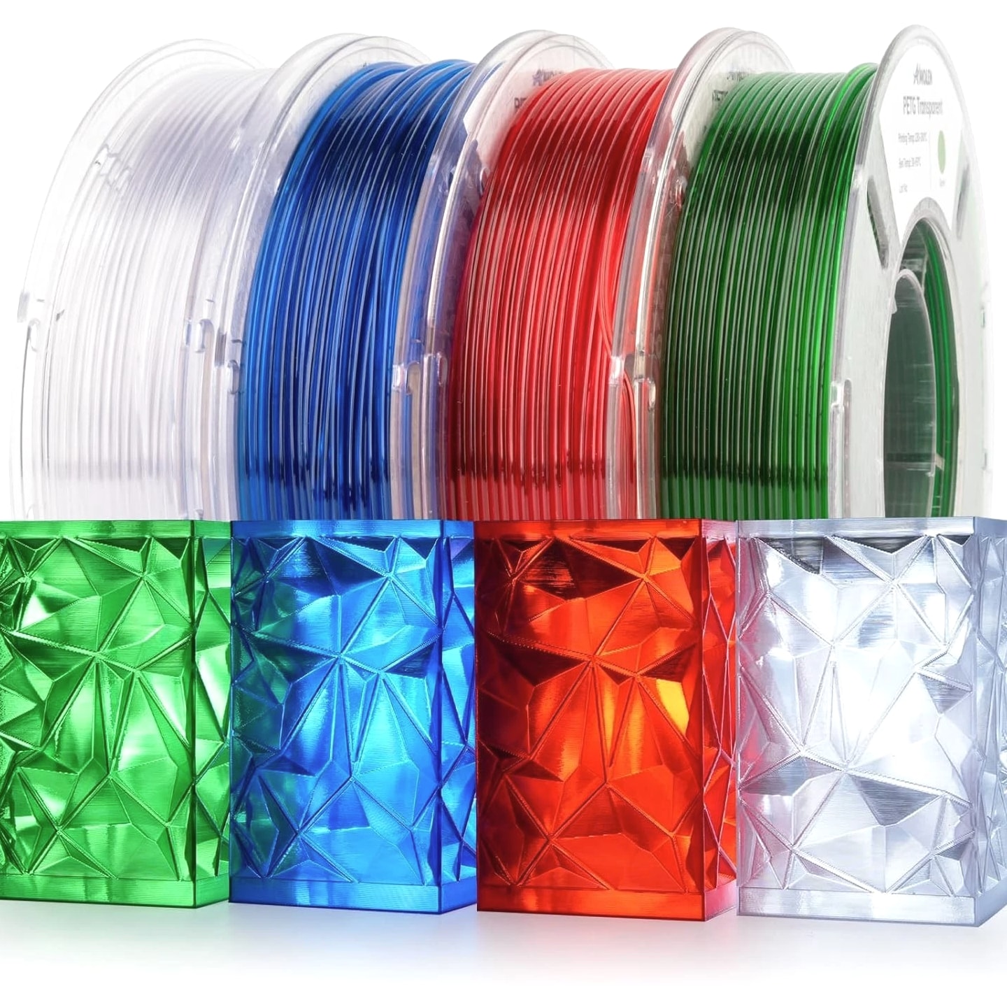 4 Colors PETG Filament for 3D Printing - 250g Each, Clear, Red, Green, Blue