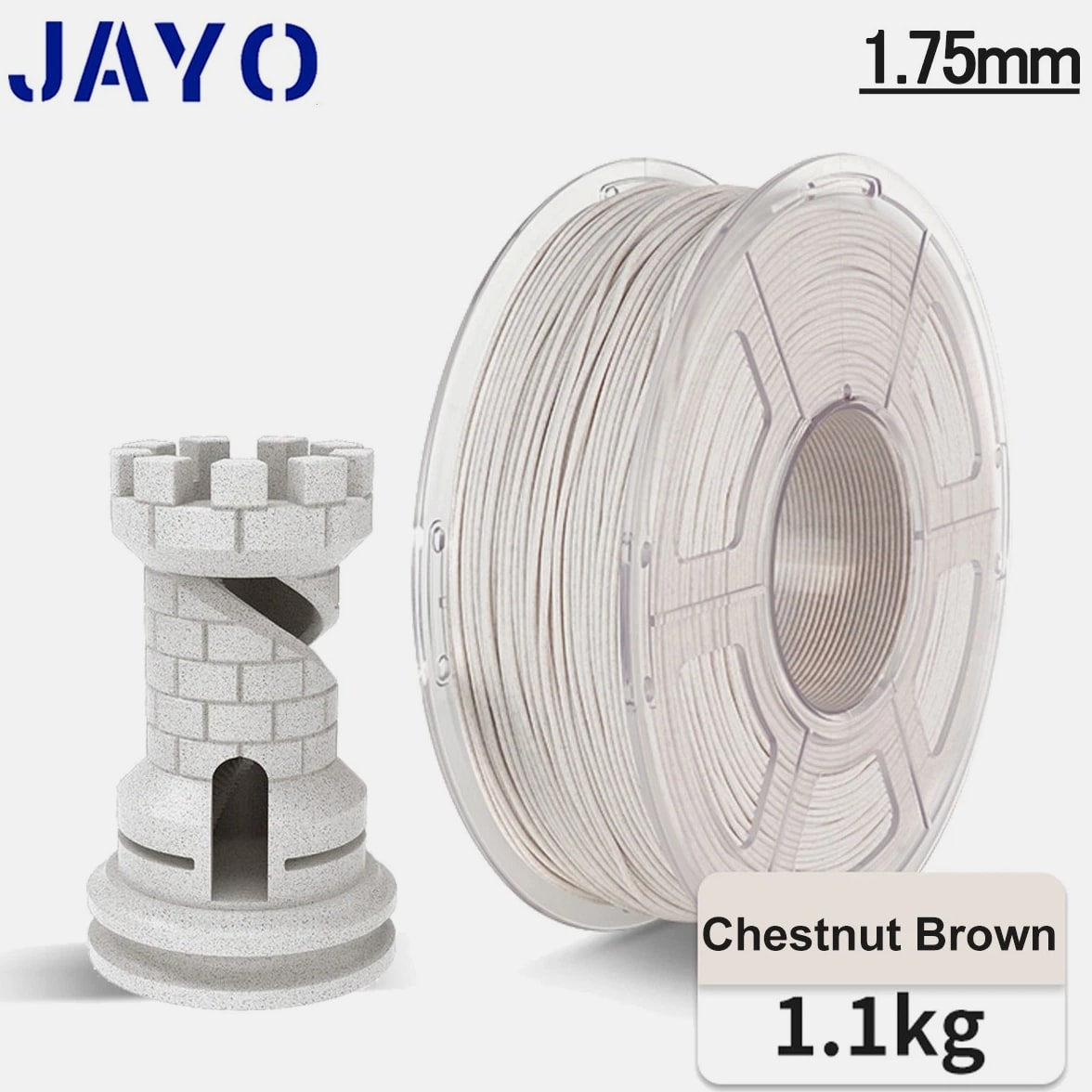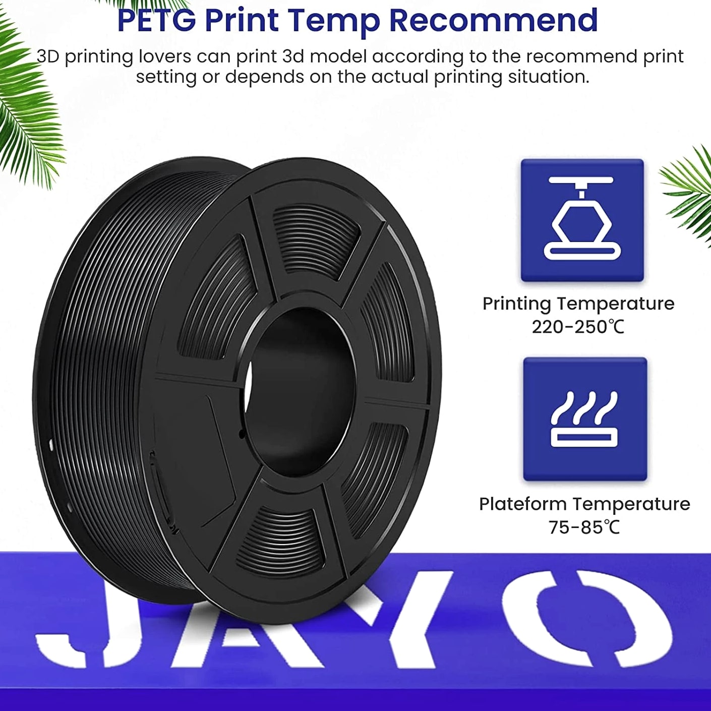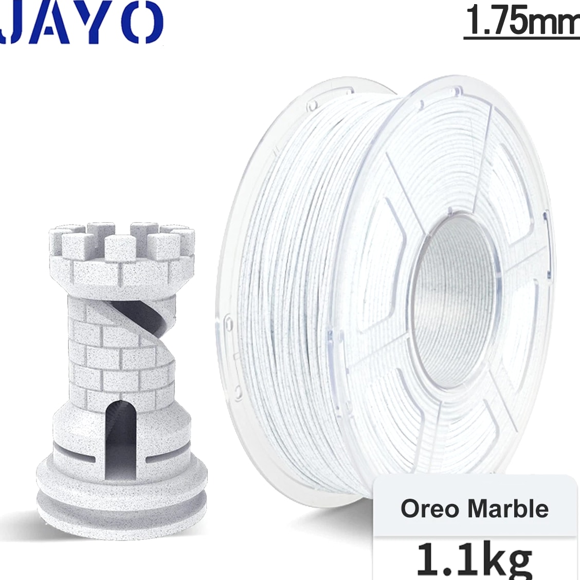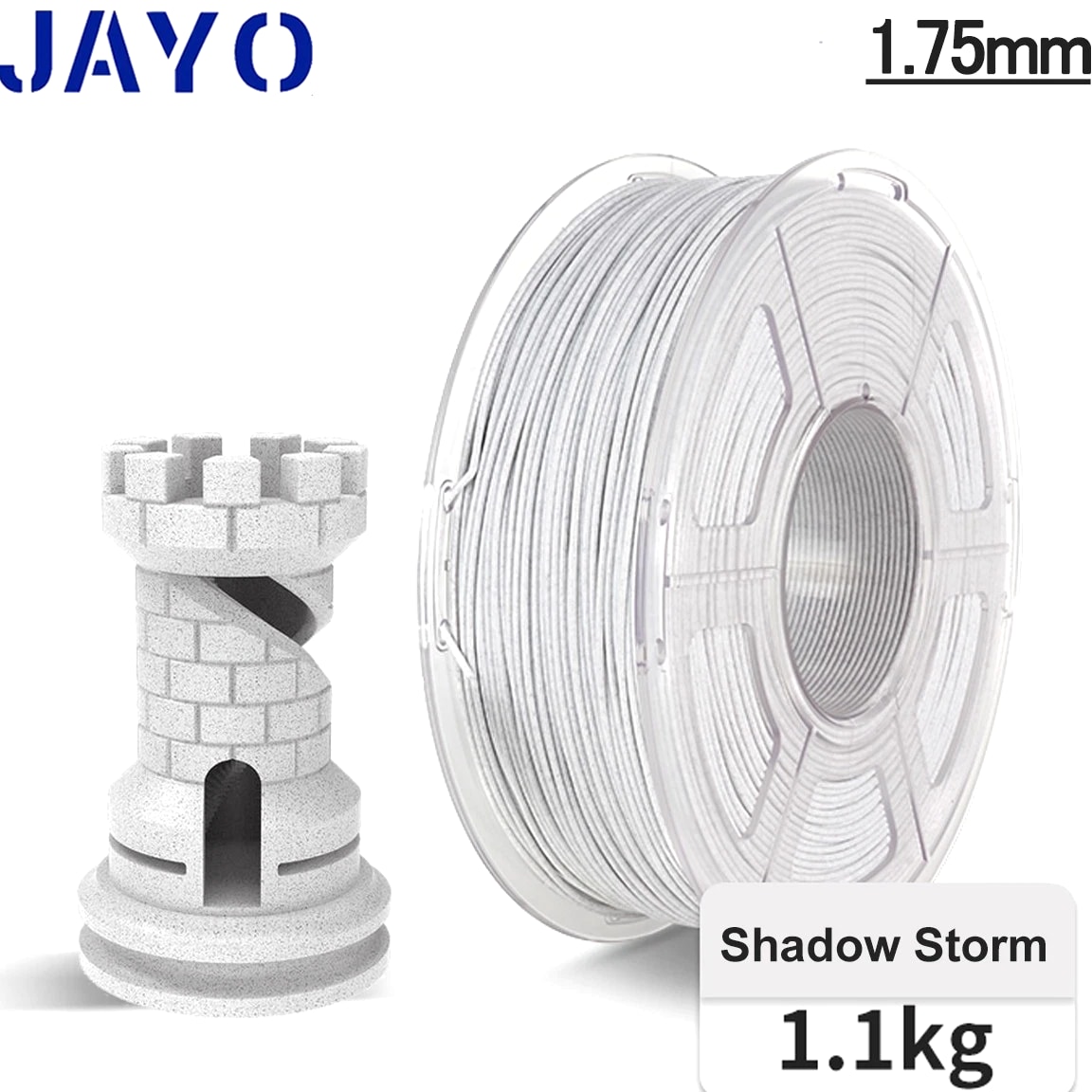 JAYO 10KG/20KG 3D Printer Filament 1.75mm Options The Following Filaments are 100% Neatly Wound -- PLA / PLA+ / PETG / SILK / PLA Meta / PLA Matte (ABS / TPU / PLA Marble is not included.) Filament Wire Diameter Tolerance Printing Temperature Print speed Heat Distortion Temperature Print Platform Temperature Net weight 1.75MM ±0.02mm 200-210℃ 50-100mm/s 53℃ 50-60℃ 1.1KG PLA+ ±0.02mm 195-205℃ 50-100mm/s 50-60℃ 1.1KG PLA+2.0 ±0.02mm 195-205℃ 50-100mm/s 50-60℃ 1.1KG PLA Meta ±0.02mm 185-195℃ 50-150mm/s 50-60℃ 1.1KG PLA Matte ±0.02mm 205-215℃ 50-100mm/s 50-60℃ 1.1KG HighSpeed PLA ±0.02mm / 190-210℃, 50-150mm/s 210-230℃,150-300mm/s 230-260℃,300-600mm/s 53℃ 50-60℃ 1.1KG PLA Glow ±0.02mm 195-215℃ 50-100mm/s 53℃ 50-60℃ 1.1KG PLA Carbon Fibre ±0.02mm 205-215℃ 40-60mm/s 53℃ 50-60℃ 1.1KG PLA Marble ±0.03mm 210-220℃ 40-60mm/s 53℃ 50-60℃ 1.1KG WOOD ±0.03mm 195-215℃ 40-60mm/s 53℃ 60-70℃ 1.1KG PETG ±0.02mm 230-240℃ 40-60mm/s 63℃ 60-70℃ 1.1KG PLA+ SILK ±0.02mm 205-215℃ 40-60mm/s 53℃ 50-60℃ 1.1KG TPU(95A) ±0.03mm 195-205℃ Proximal Extrusion:40mm/s Remote Extrusion:20mm/s 52℃ 50-60℃ 0.5KG TPU-SILK(98A) ±0.03mm 210-220℃ Proximal Extrusion:50mm/s Remote Extrusion:30mm/s 131℃ 50-60℃ 1.1KG ABS ±0.03mm 250-260℃ 40-60mm/s 84℃ 80-100℃ Easy ABS ±0.03mm 225-235℃ 40-60mm/s 57.9℃ 60-70℃ JAYO 1.1KG PLA Filament 1.75mm Dimensional Accuracy +/- 0.02mm, Compatible with Most FDM Printers JAYO 1.1KG PLA+ Filament 1.75mm Dimensional Accuracy +/- 0.02mm, Compatible with Most FDM Printers JAYO 1.1KG Matte PETG Filament 1.75mm Dimensional Accuracy +/- 0.02mm, Compatible with Most FDM Printers JAYO 1.1KG PLA+ SILK Filament 1.75mm Dimensional Accuracy +/- 0.02mm, Compatible with Most FDM Printers JAYO 1.1KG PLA Marble Filament 1.75mm Dimensional Accuracy +/- 0.02mm, Compatible with Most FDM Printers Delivery details