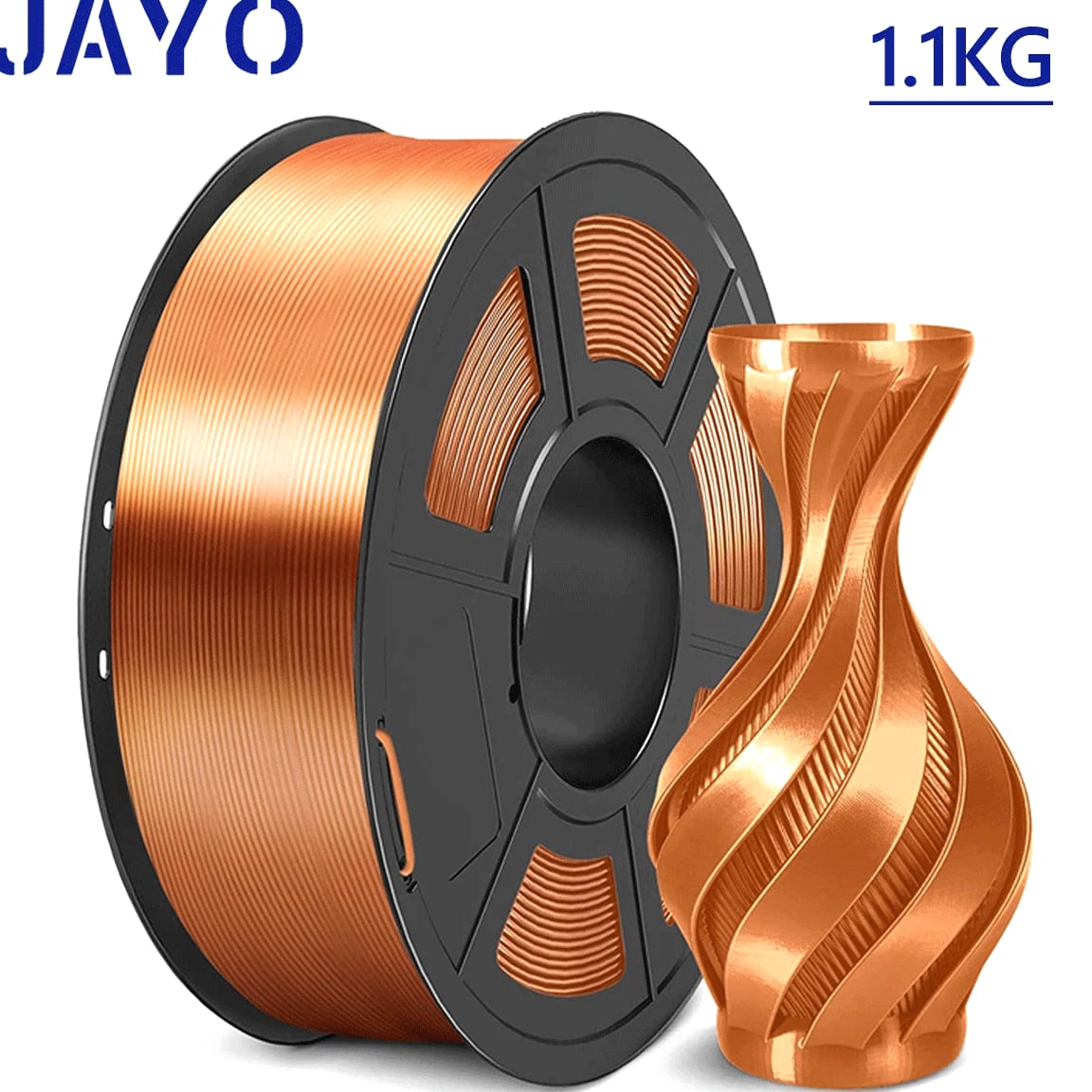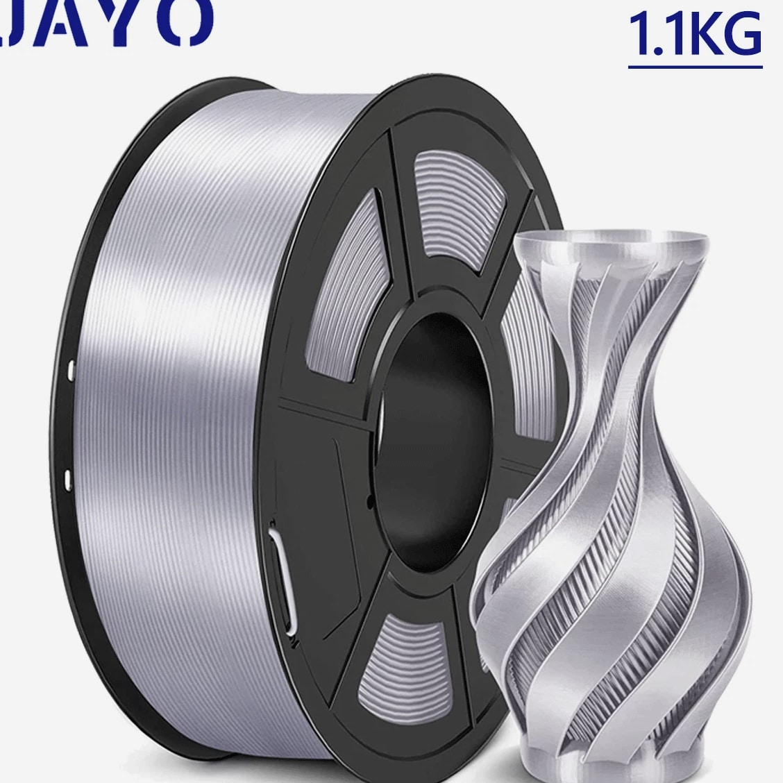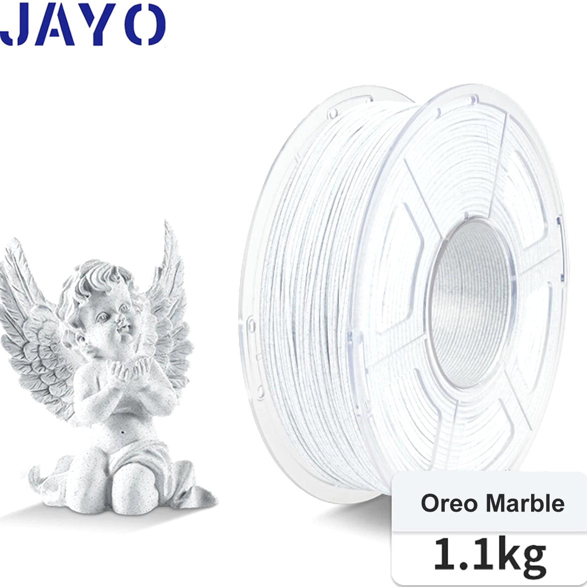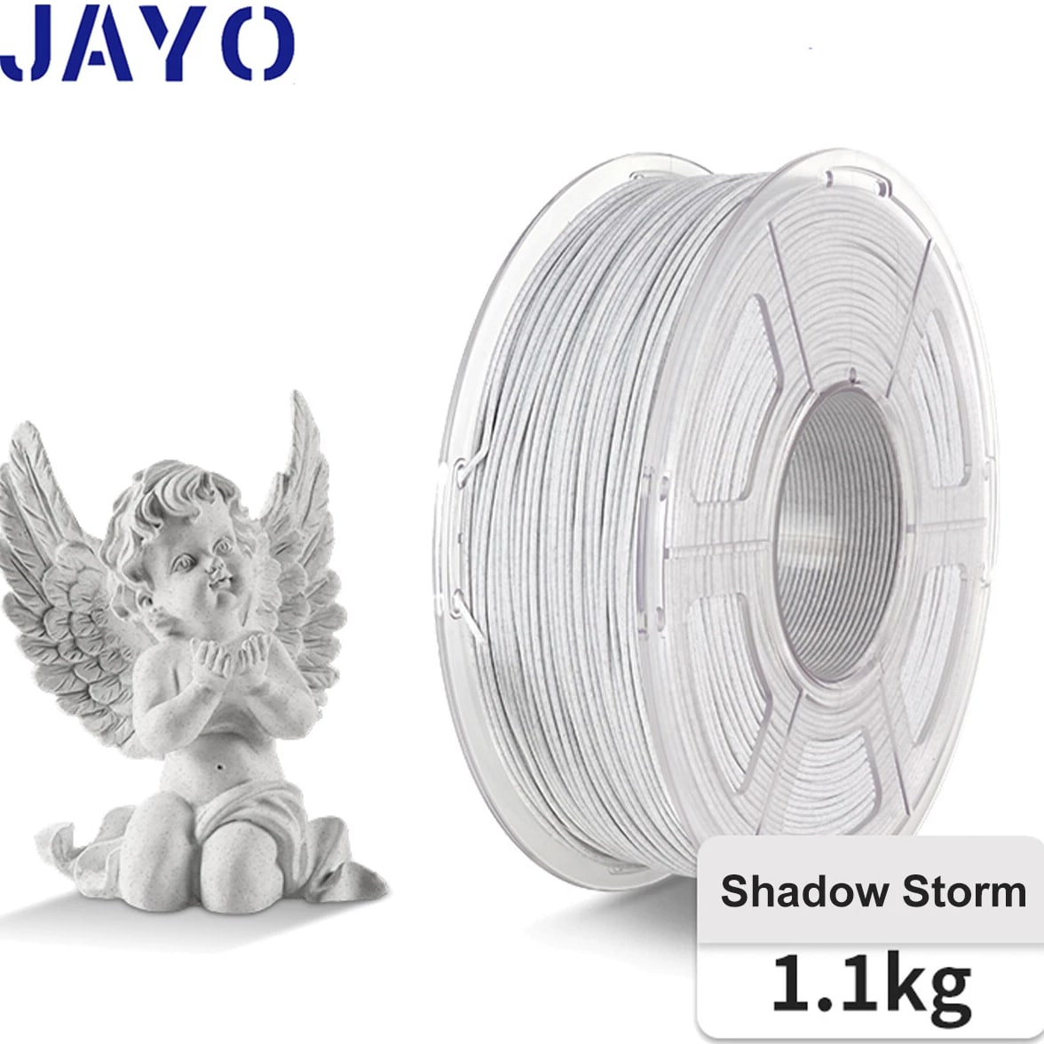 JAYO 3D Printer Filament 5KG/10KG Bundled Options The Following Filament are 100% Neatly Wound -- PLA / PLA+ / PLA Meta / PETG /SILK / PLA Matte (ABS / TPU / PLA Marble is not included.) Filament Wire Diameter Tolerance Printing Temperature Print speed Heat Distortion Temperature Print Platform Temperature Net weight 1.75MM ±0.02mm 200-210℃ 50-100mm/s 53℃ 50-60℃ 1.1KG/Roll PLA+ ±0.02mm 195-205℃ 50-100mm/s 50-60℃ 1.1KG/Roll PLA+2.0 ±0.02mm 195-205℃ 50-100mm/s 50-60℃ 1.1KG/Roll PLA Meta ±0.02mm 185-195℃ 50-150mm/s 50-60℃ 1.1KG/Roll PLA Matte ±0.02mm 205-215℃ 50-100mm/s 50-60℃ 1.1KG/Roll PLA HighSpeed ±0.02mm 190-210℃ 190-210℃, 50-150mm/s 210-230℃,150-300mm/s 230-260℃,300-600mm/s 53℃ 50-60℃ 1.1KG/Roll PLA Glow ±0.02mm 195-215℃ 50-100mm/s 53℃ 50-60℃ 1.1KG/Roll PLA Carbon Fibre ±0.02mm 205-215℃ 40-60mm/s 53℃ 50-60℃ 1.1KG/Roll PLA Marble ±0.03mm 210-220℃ 40-60mm/s 53℃ 50-60℃ 1.1KG/Roll WOOD ±0.03mm 195-215℃ 40-60mm/s 53℃ 60-70℃ 1.1KG/Roll PETG ±0.02mm 230-240℃ 40-60mm/s 63℃ 60-70℃ 1.1KG/Roll Matte PETG High Speed ±0.02mm 230-270℃ 50-600mm/s / 70-80℃ 1.1KG/Roll PLA+ SILK ±0.02mm 205-215℃ 40-60mm/s 53℃ 50-60℃ 1.1KG/Roll TPU(95A) ±0.03mm 195-205℃ Proximal Extrusion:40mm/s Remote Extrusion:20mm/s 52℃ 50-60℃ 0.5KG/Roll TPU SILK(98A) ±0.03mm 210-220℃ Proximal Extrusion:50mm/s Remote Extrusion:30mm/s 131℃ 50-60℃ 1.1KG/Roll ABS ±0.03mm 250-260℃ 40-60mm/s 84℃ 80-100℃ 1KG/Roll Easy ABS ±0.03mm 225-235℃ 40-60mm/s 57.9℃ 60-70℃ 1KG/Roll JAYO Filament Benefits 【More filament, more value】JAYO filament has 100g more filament than other brands on the market, with the same size, one filament roll can print 10% more models. This makes it a cost-effective option for your 3D printing needs. 【Neatly wound filament】JAYO filament is neatly wound with full mechanical winding technology, reducing tangles and preventing possible snags and string breaks. It also minimizes deformation and adheres easily to the heating bed. 【No clogging, no bubbles】JAYO filament diameter tolerance +/- 0.02 ensures consistency