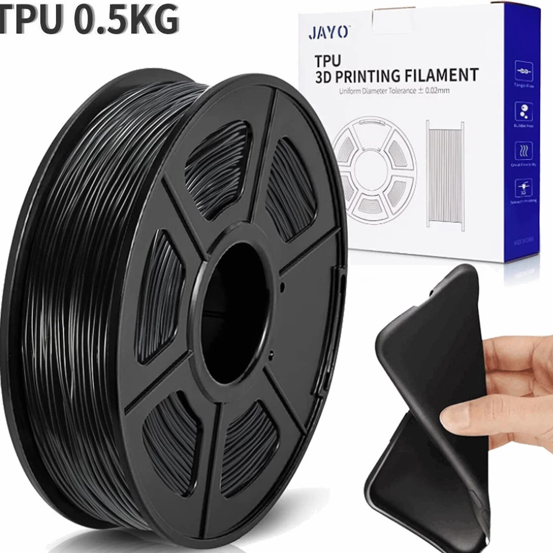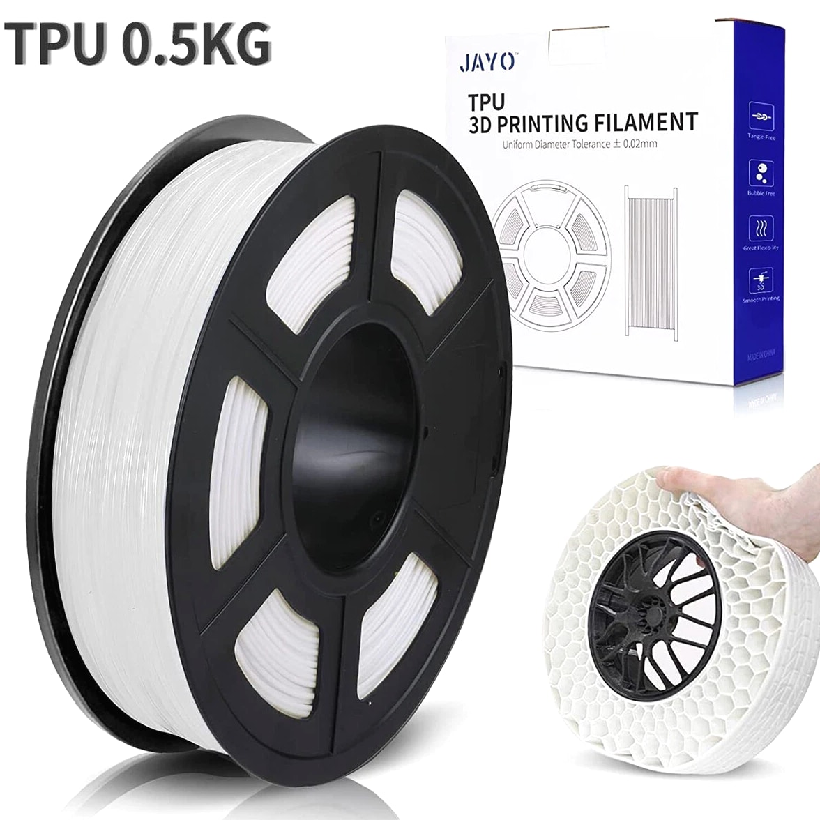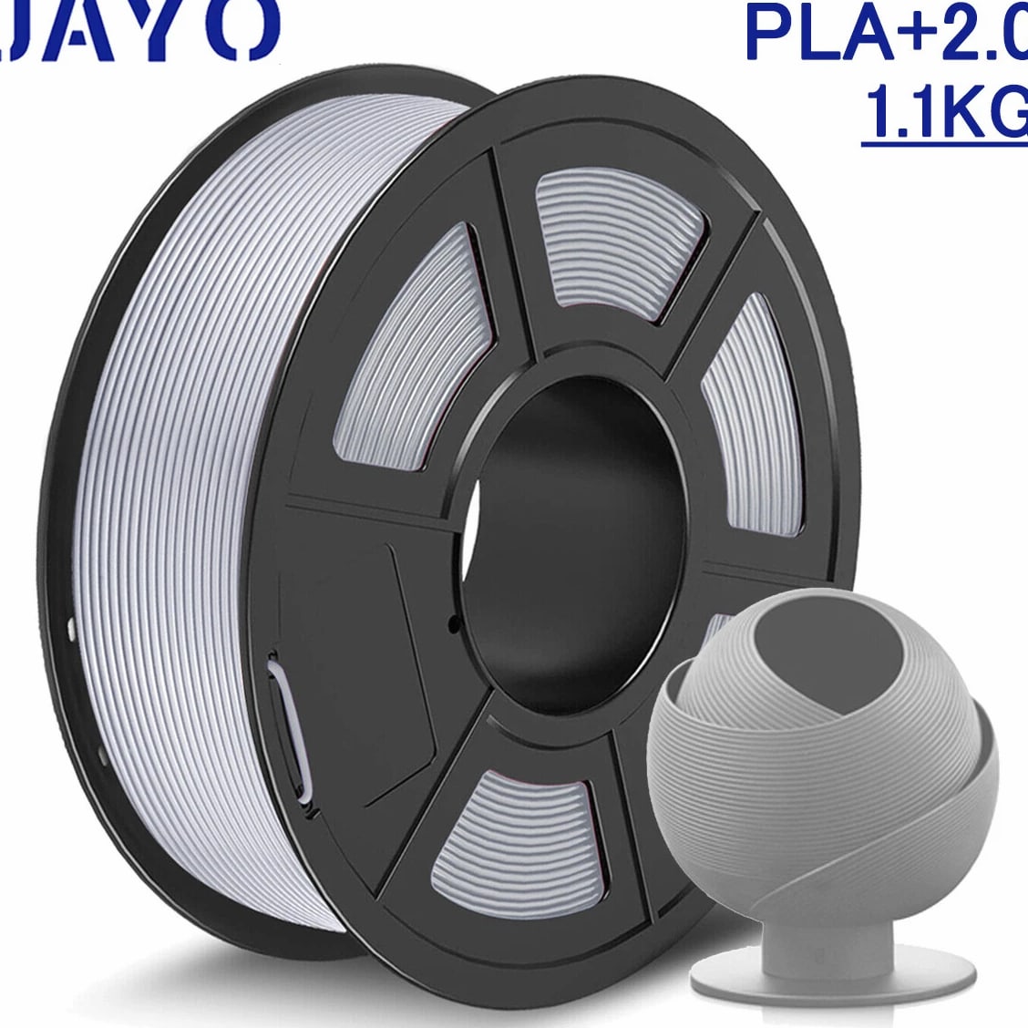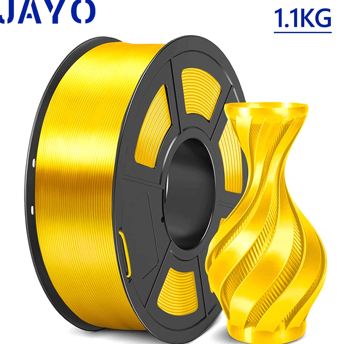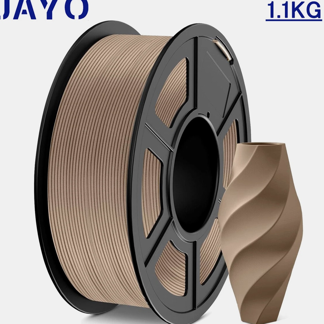 JAYO 3D Printer Filament 5KG/10KG Bundled Options The Following Filament are 100% Neatly Wound -- PLA / PLA+ / PLA Meta / PETG /SILK / PLA Matte (ABS / TPU / PLA Marble is not included.) Filament Wire Diameter Tolerance Printing Temperature Print speed Heat Distortion Temperature Print Platform Temperature Net weight 1.75MM ±0.02mm 200-210℃ 50-100mm/s 53℃ 50-60℃ 1.1KG/Roll PLA+ ±0.02mm 195-205℃ 50-100mm/s 50-60℃ 1.1KG/Roll PLA+2.0 ±0.02mm 195-205℃ 50-100mm/s 50-60℃ 1.1KG/Roll PLA Meta ±0.02mm 185-195℃ 50-150mm/s 50-60℃ 1.1KG/Roll PLA Matte ±0.02mm 205-215℃ 50-100mm/s 50-60℃ 1.1KG/Roll PLA HighSpeed ±0.02mm 190-210℃ 190-210℃, 50-150mm/s 210-230℃,150-300mm/s 230-260℃,300-600mm/s 53℃ 50-60℃ 1.1KG/Roll PLA Glow ±0.02mm 195-215℃ 50-100mm/s 53℃ 50-60℃ 1.1KG/Roll PLA Carbon Fibre ±0.02mm 205-215℃ 40-60mm/s 53℃ 50-60℃ 1.1KG/Roll PLA Marble ±0.03mm 210-220℃ 40-60mm/s 53℃ 50-60℃ 1.1KG/Roll WOOD ±0.03mm 195-215℃ 40-60mm/s 53℃ 60-70℃ 1.1KG/Roll PETG ±0.02mm 230-240℃ 40-60mm/s 63℃ 60-70℃ 1.1KG/Roll Matte PETG High Speed ±0.02mm 230-270℃ 50-600mm/s / 70-80℃ 1.1KG/Roll PLA+ SILK ±0.02mm 205-215℃ 40-60mm/s 53℃ 50-60℃ 1.1KG/Roll TPU(95A) ±0.03mm 195-205℃ Proximal Extrusion:40mm/s Remote Extrusion:20mm/s 52℃ 50-60℃ 0.5KG/Roll TPU SILK(98A) ±0.03mm 210-220℃ Proximal Extrusion:50mm/s Remote Extrusion:30mm/s 131℃ 50-60℃ 1.1KG/Roll ABS ±0.03mm 250-260℃ 40-60mm/s 84℃ 80-100℃ 1KG/Roll Easy ABS ±0.03mm 225-235℃ 40-60mm/s 57.9℃ 60-70℃ 1KG/Roll JAYO Filament Benefits 【More filament, more value】JAYO filament has 100g more filament than other brands on the market, with the same size, one filament roll can print 10% more models. This makes it a cost-effective option for your 3D printing needs. 【Neatly wound filament】JAYO filament is neatly wound with full mechanical winding technology, reducing tangles and preventing possible snags and string breaks. It also minimizes deformation and adheres easily to the heating bed. 【No clogging, no bubbles】JAYO filament diameter tolerance +/- 0.02 ensures consistency