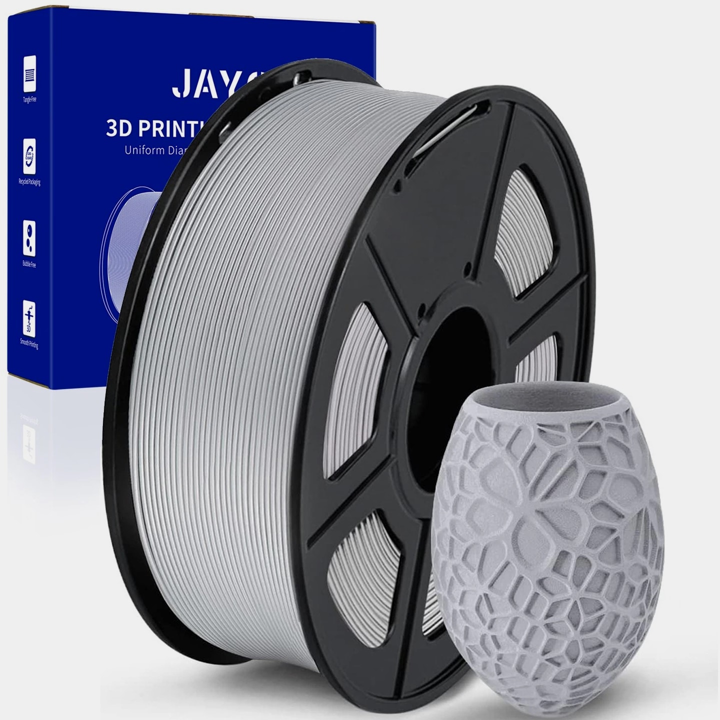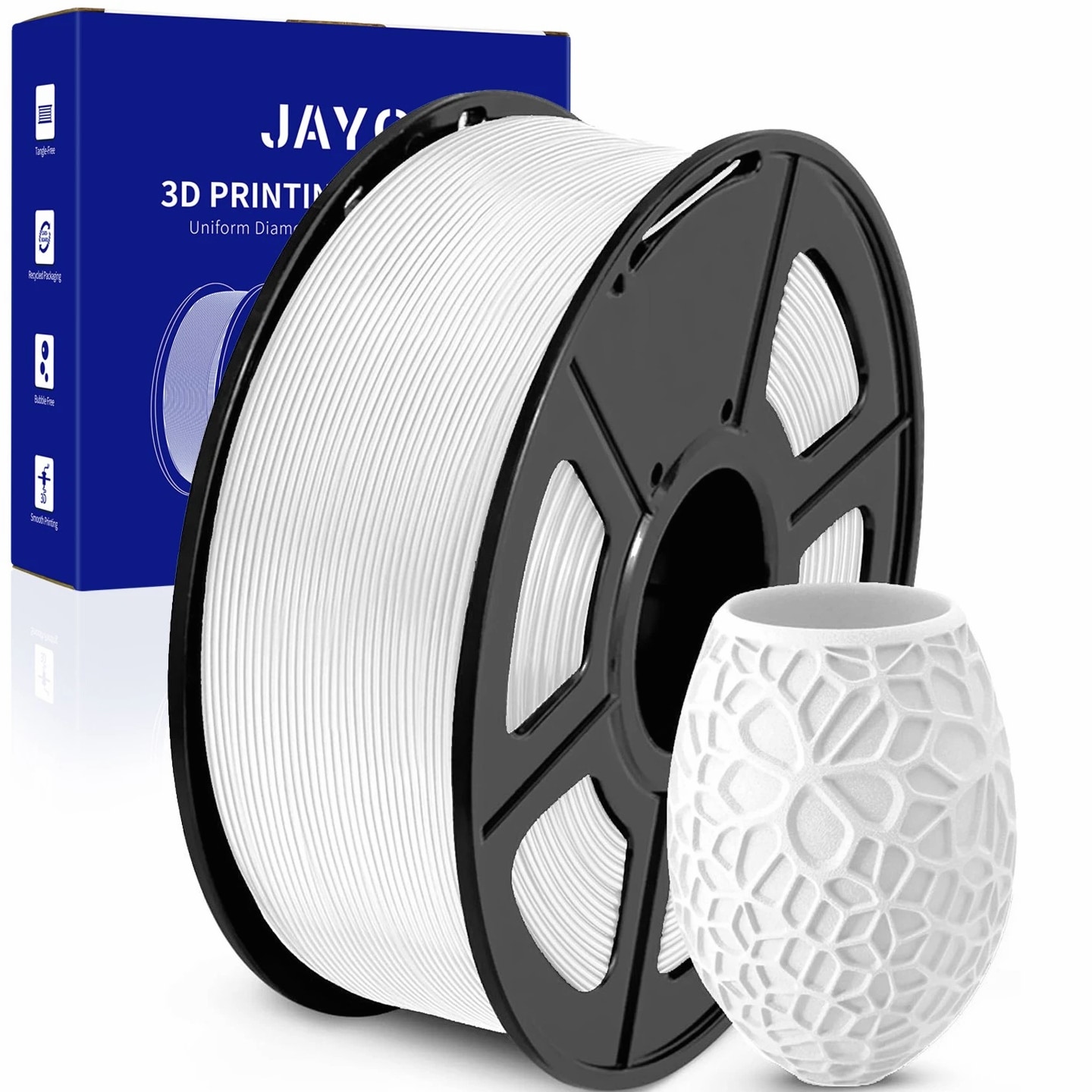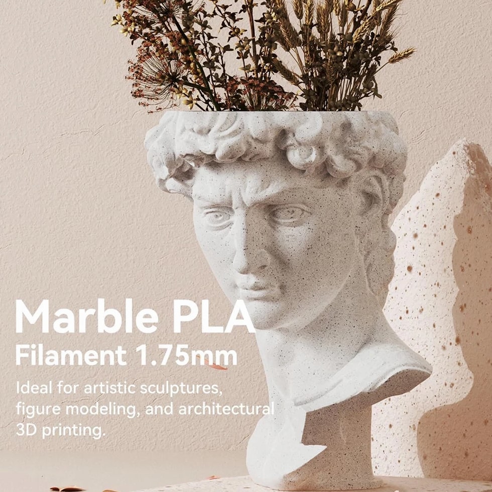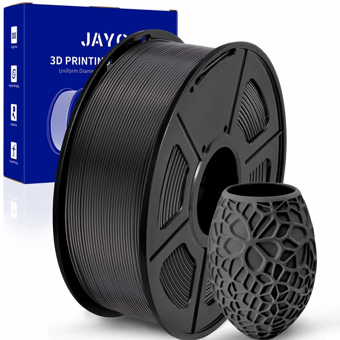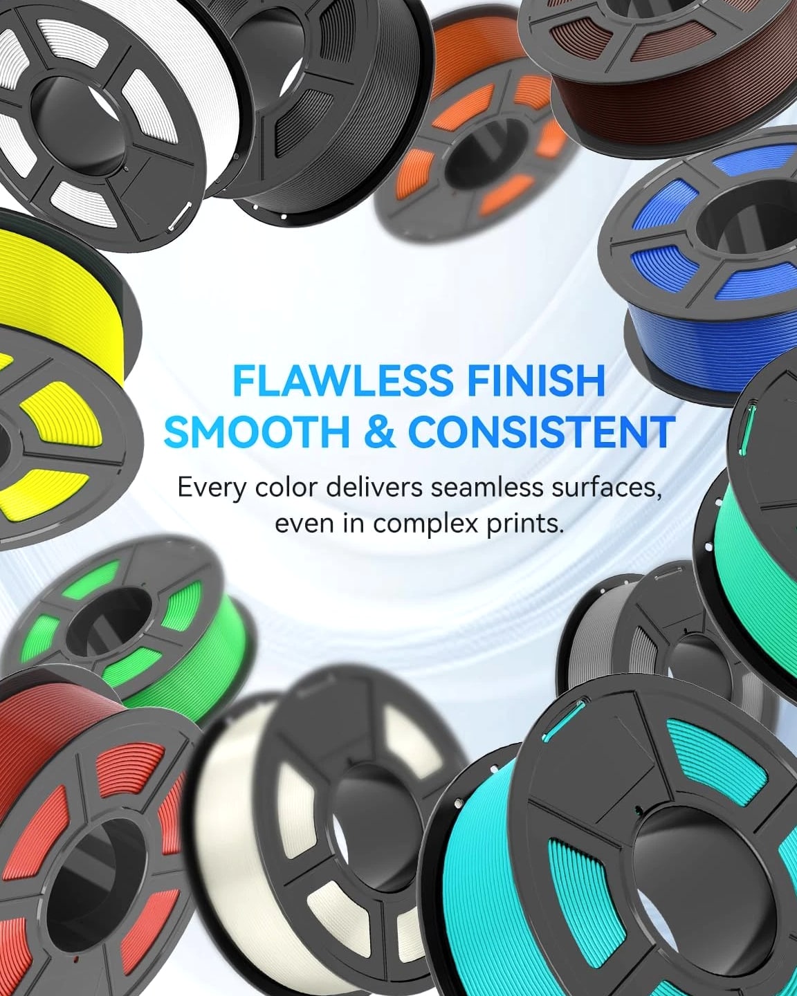 We are in the transitional period of switching to plastic spools. You may receive both plastic and cardboard versions of the spools. Filament PLA PLA+ PETG ABS PLA Meta PLA Matte PLA High-Speed Filament Diameter 1,75mm 1,75mm 1,75mm 1,75mm 1,75mm 1,75mm 1,75mm Tolerance ±0.02mm ±0.02mm ±0.02mm ±0.03mm ±0.02mm ±0.03mm ±0.02mm Printing Temperature 200-210℃ 205-215℃ 220-230℃ 250-260℃ 185-195℃ 205-215℃ 190-210℃ Platform Temperature 50-60℃ 50-60℃ 60-70℃ 80-100℃ 50-60℃ 50-60℃ 50-60℃ Printing Speed 50-100MM/s 50-100MM/s 40-60MM/s 40-60MM/s 50-150MM/s 50-100MM/s 190-210℃, 50-150mm/s 210-230℃, 150-300mm/s 230-260℃, 300-600mm/s Heat Deflection Temperature 53℃ 53℃ 63℃ 84℃ 53℃ 53℃ 53℃ Elongation at Break 3.1% 3.6% 5.3% 7.8% 17% 9.6% 3.6% Net Weight 1.1 KG 1.1 KG 1.1 KG 0.65 KG 1.1 KG 1.1 KG 1.1 KG Filament PLA Luminous (Glow in the Dark) PLA Carbon Fiber PLA Marble WOOD Silk PLA+ Easy ABS TPU (95A) TPU SILK (98A) Filament Diameter 1,75mm 1,75mm 1,75mm 1,75mm 1,75mm 1,75mm 1,75mm 1,75mm Tolerance ±0.02mm ±0.02mm ±0.03mm ±0.03mm ±0.02mm ±0.03mm ±0.03mm ±0.03mm Printing Temperature 200-210℃ 215-225℃ 210-220℃ 205-215℃ 205-215℃ 225-235℃ 195-205℃ 210-220℃ Platform Temperature 50-60℃ 50-60℃ 50-60℃ 50-60℃ 50-60℃ 60-70℃ 50-60℃ 50-60℃ Printing Speed 40-60mm/s 40-60MM/s 40-60MM/s 40-60MM/s 40-60MM/s 40-60MM/s Direct Drive Extrusion: 40MM/s Bowden Extrusion: 20MM/s Direct Drive Extrusion: 50MM/s Bowden Extrusion: 30MM/s Heat Deflection Temperature 53℃ 53℃ 53℃ 53℃ 53℃ 57.9℃ 52℃ 131℃ Elongation at Break 21% 4.1% 3.1% 8.1% 6.3% 20% 536% 436% Net Weight 1.1 KG 1.1 KG 1.1 KG 1.1 KG 1.1 KG 0.65 KG 0.5 KG 1.1 KG We have upgraded the production process of our filaments. The following filaments are now 100% precisely wound- PLA / PLA+ / PLA Meta / SILK PLA+ / PETG. (ABS / TPU / PLA Marble / PLA Twinkling is not included.) Compatible with any 3D Printer that uses 1.75mm diameter filament including some models for your reference AirWolf ColorFabb Dremel MakerBot PowerSpec Simplify3D Aleph Objects Cra