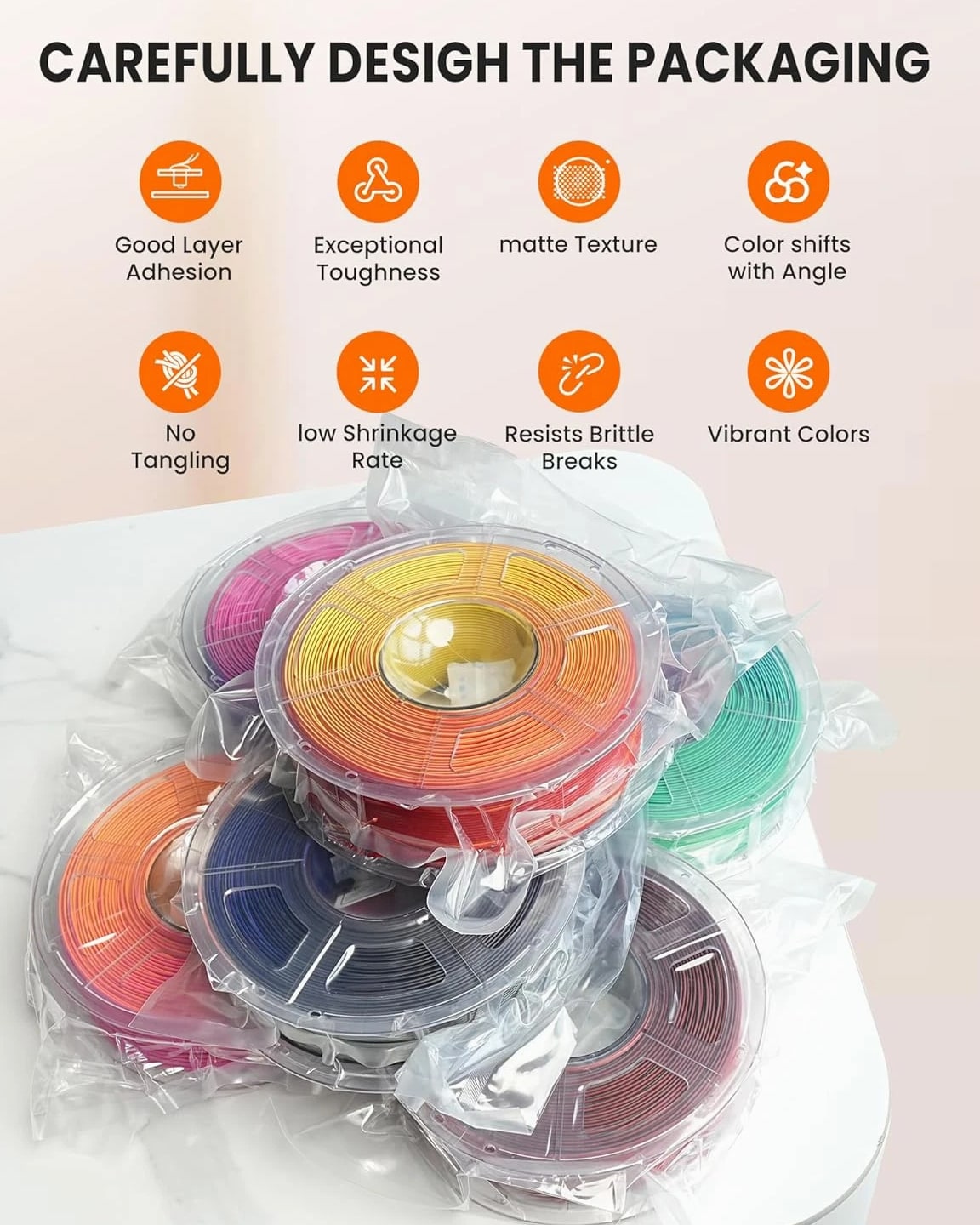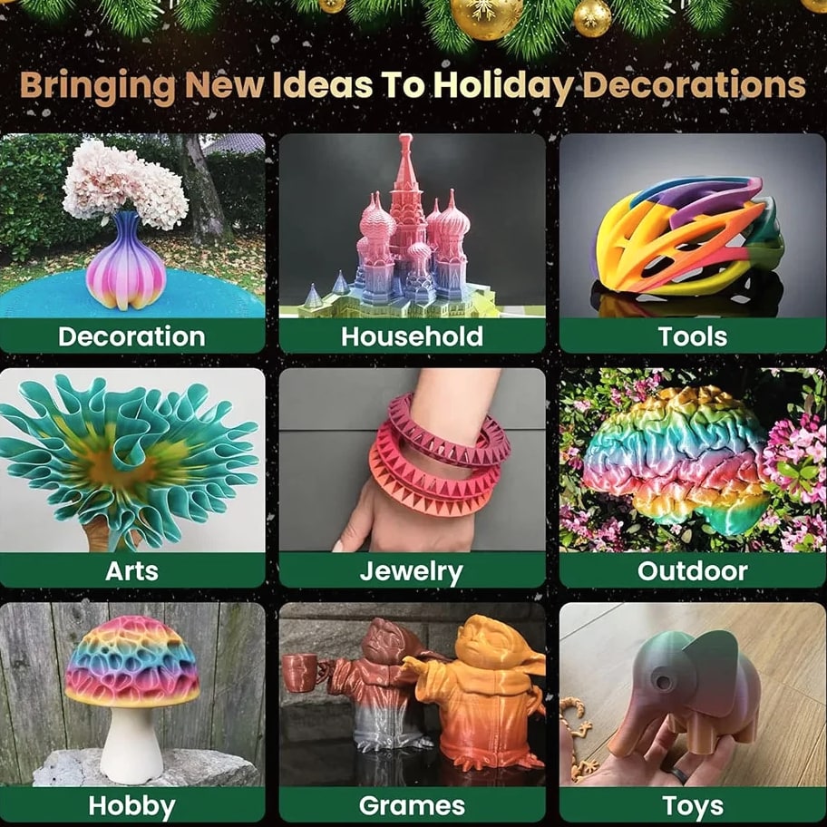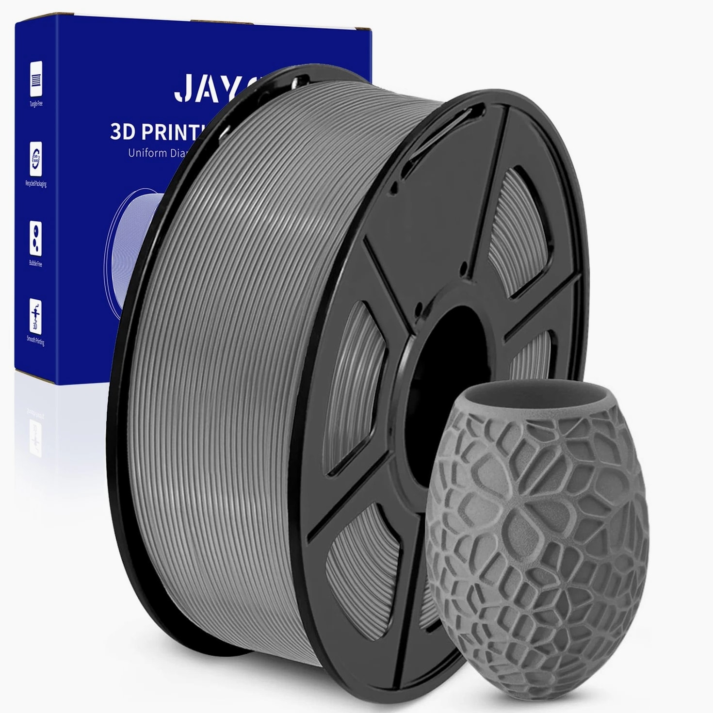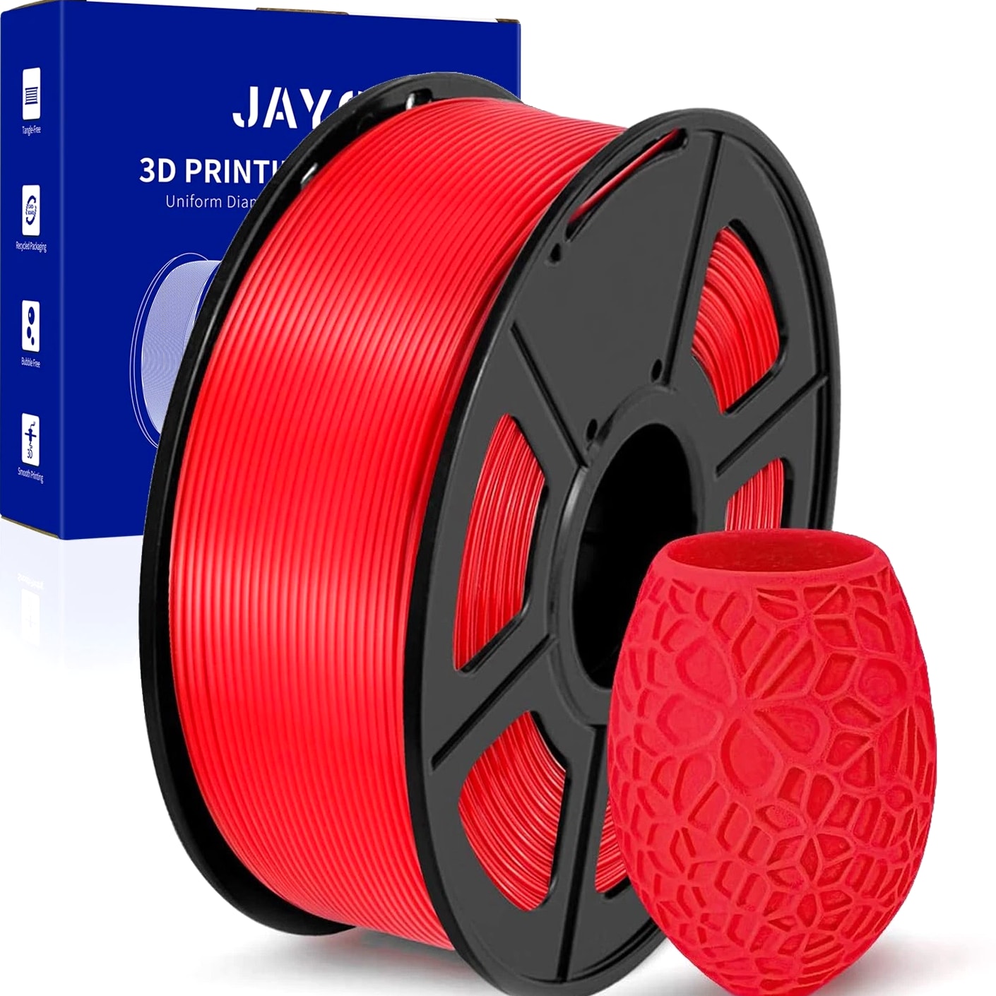 We are in the transitional period of switching to plastic spools. You may receive both plastic and cardboard versions of the spools. Filament PLA PLA+ PETG ABS PLA Meta PLA Matte PLA High-Speed Filament Diameter 1,75mm 1,75mm 1,75mm 1,75mm 1,75mm 1,75mm 1,75mm Tolerance ±0.02mm ±0.02mm ±0.02mm ±0.03mm ±0.02mm ±0.03mm ±0.02mm Printing Temperature 200-210℃ 205-215℃ 220-230℃ 250-260℃ 185-195℃ 205-215℃ 190-210℃ Platform Temperature 50-60℃ 50-60℃ 60-70℃ 80-100℃ 50-60℃ 50-60℃ 50-60℃ Printing Speed 50-100MM/s 50-100MM/s 40-60MM/s 40-60MM/s 50-150MM/s 50-100MM/s 190-210℃, 50-150mm/s 210-230℃, 150-300mm/s 230-260℃, 300-600mm/s Heat Deflection Temperature 53℃ 53℃ 63℃ 84℃ 53℃ 53℃ 53℃ Elongation at Break 3.1% 3.6% 5.3% 7.8% 17% 9.6% 3.6% Net Weight 1.1 KG 1.1 KG 1.1 KG 0.65 KG 1.1 KG 1.1 KG 1.1 KG Filament PLA Luminous (Glow in the Dark) PLA Carbon Fiber PLA Marble WOOD Silk PLA+ Easy ABS TPU (95A) TPU SILK (98A) Filament Diameter 1,75mm 1,75mm 1,75mm 1,75mm 1,75mm 1,75mm 1,75mm 1,75mm Tolerance ±0.02mm ±0.02mm ±0.03mm ±0.03mm ±0.02mm ±0.03mm ±0.03mm ±0.03mm Printing Temperature 200-210℃ 215-225℃ 210-220℃ 205-215℃ 205-215℃ 225-235℃ 195-205℃ 210-220℃ Platform Temperature 50-60℃ 50-60℃ 50-60℃ 50-60℃ 50-60℃ 60-70℃ 50-60℃ 50-60℃ Printing Speed 40-60mm/s 40-60MM/s 40-60MM/s 40-60MM/s 40-60MM/s 40-60MM/s Direct Drive Extrusion: 40MM/s Bowden Extrusion: 20MM/s Direct Drive Extrusion: 50MM/s Bowden Extrusion: 30MM/s Heat Deflection Temperature 53℃ 53℃ 53℃ 53℃ 53℃ 57.9℃ 52℃ 131℃ Elongation at Break 21% 4.1% 3.1% 8.1% 6.3% 20% 536% 436% Net Weight 1.1 KG 1.1 KG 1.1 KG 1.1 KG 1.1 KG 0.65 KG 0.5 KG 1.1 KG We have upgraded the production process of our filaments. The following filaments are now 100% precisely wound- PLA / PLA+ / PLA Meta / SILK PLA+ / PETG. (ABS / TPU / PLA Marble / PLA Twinkling is not included.) Compatible with any 3D Printer that uses 1.75mm diameter filament including some models for your reference AirWolf ColorFabb Dremel MakerBot PowerSpec Simplify3D Aleph Objects Cra