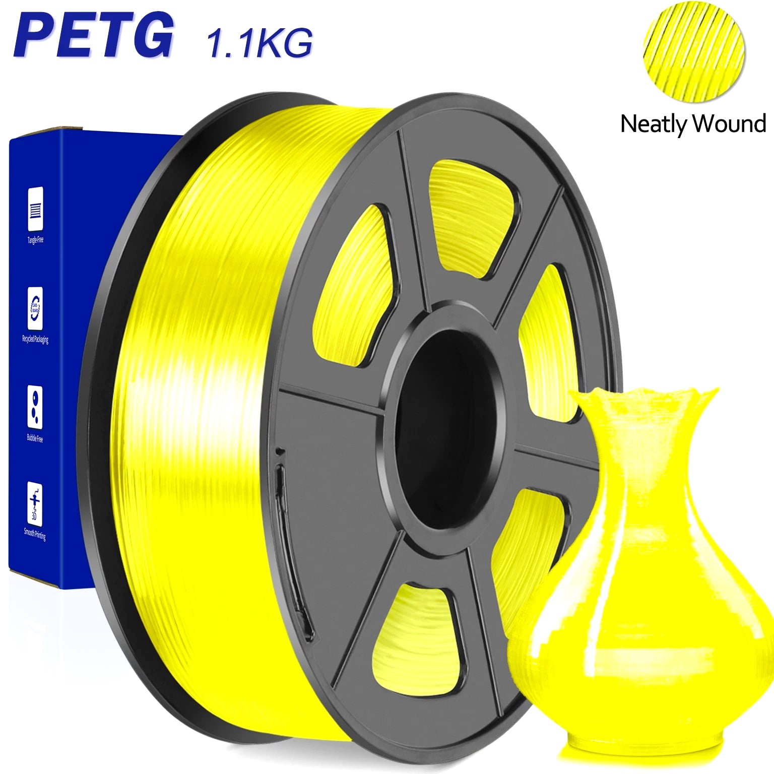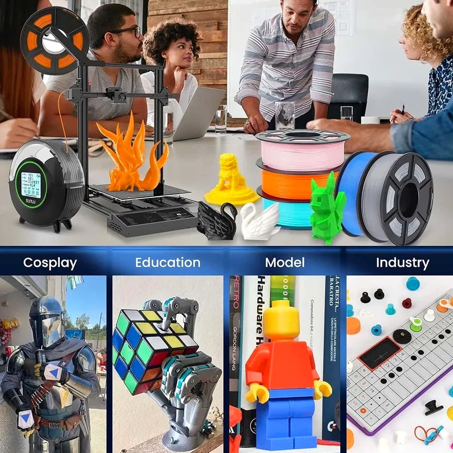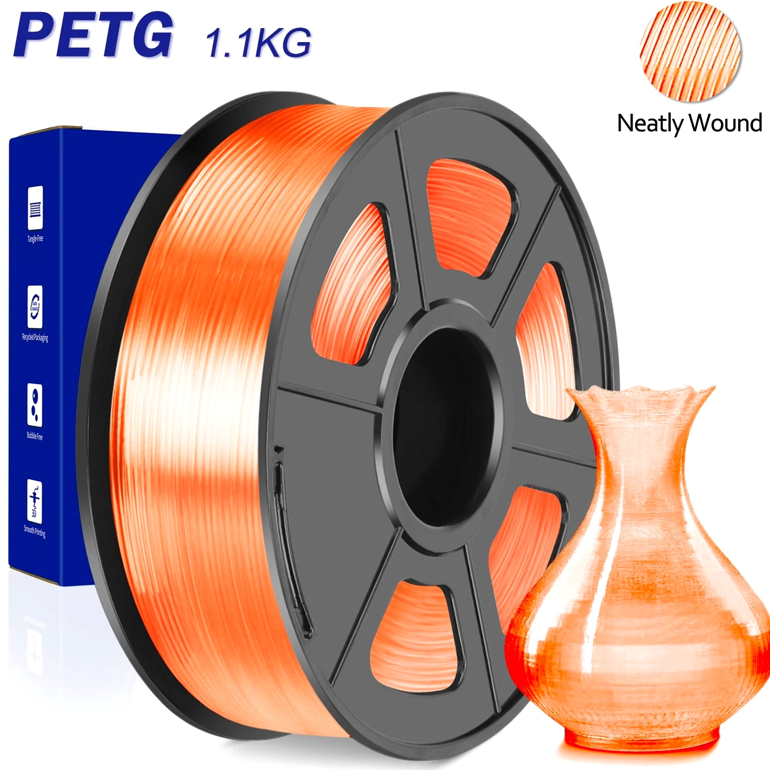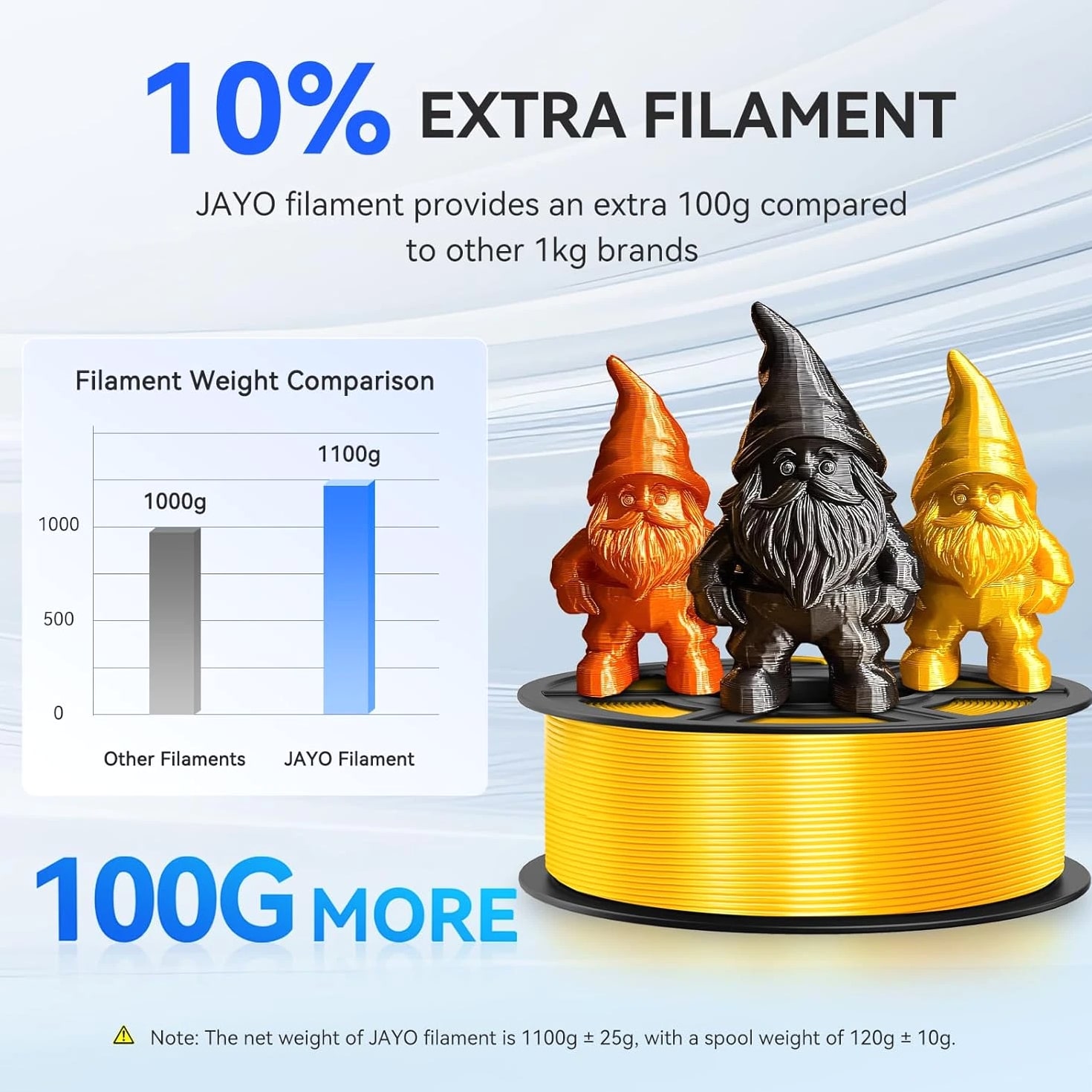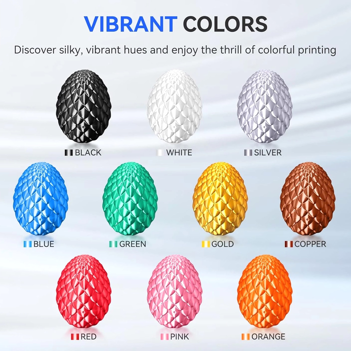 We are in the transitional period of switching to plastic spools. You may receive both plastic and cardboard versions of the spools. Filament PLA PLA+ PETG ABS PLA Meta PLA Matte PLA High-Speed Filament Diameter 1,75mm 1,75mm 1,75mm 1,75mm 1,75mm 1,75mm 1,75mm Tolerance ±0.02mm ±0.02mm ±0.02mm ±0.03mm ±0.02mm ±0.03mm ±0.02mm Printing Temperature 200-210℃ 205-215℃ 220-230℃ 250-260℃ 185-195℃ 205-215℃ 190-210℃ Platform Temperature 50-60℃ 50-60℃ 60-70℃ 80-100℃ 50-60℃ 50-60℃ 50-60℃ Printing Speed 50-100MM/s 50-100MM/s 40-60MM/s 40-60MM/s 50-150MM/s 50-100MM/s 190-210℃, 50-150mm/s 210-230℃, 150-300mm/s 230-260℃, 300-600mm/s Heat Deflection Temperature 53℃ 53℃ 63℃ 84℃ 53℃ 53℃ 53℃ Elongation at Break 3.1% 3.6% 5.3% 7.8% 17% 9.6% 3.6% Net Weight 1.1 KG 1.1 KG 1.1 KG 0.65 KG 1.1 KG 1.1 KG 1.1 KG Filament PLA Luminous (Glow in the Dark) PLA Carbon Fiber PLA Marble WOOD Silk PLA+ Easy ABS TPU (95A) TPU SILK (98A) Filament Diameter 1,75mm 1,75mm 1,75mm 1,75mm 1,75mm 1,75mm 1,75mm 1,75mm Tolerance ±0.02mm ±0.02mm ±0.03mm ±0.03mm ±0.02mm ±0.03mm ±0.03mm ±0.03mm Printing Temperature 200-210℃ 215-225℃ 210-220℃ 205-215℃ 205-215℃ 225-235℃ 195-205℃ 210-220℃ Platform Temperature 50-60℃ 50-60℃ 50-60℃ 50-60℃ 50-60℃ 60-70℃ 50-60℃ 50-60℃ Printing Speed 40-60mm/s 40-60MM/s 40-60MM/s 40-60MM/s 40-60MM/s 40-60MM/s Direct Drive Extrusion: 40MM/s Bowden Extrusion: 20MM/s Direct Drive Extrusion: 50MM/s Bowden Extrusion: 30MM/s Heat Deflection Temperature 53℃ 53℃ 53℃ 53℃ 53℃ 57.9℃ 52℃ 131℃ Elongation at Break 21% 4.1% 3.1% 8.1% 6.3% 20% 536% 436% Net Weight 1.1 KG 1.1 KG 1.1 KG 1.1 KG 1.1 KG 0.65 KG 0.5 KG 1.1 KG We have upgraded the production process of our filaments. The following filaments are now 100% precisely wound- PLA / PLA+ / PLA Meta / SILK PLA+ / PETG. (ABS / TPU / PLA Marble / PLA Twinkling is not included.) Compatible with any 3D Printer that uses 1.75mm diameter filament including some models for your reference AirWolf ColorFabb Dremel MakerBot PowerSpec Simplify3D Aleph Objects Cra