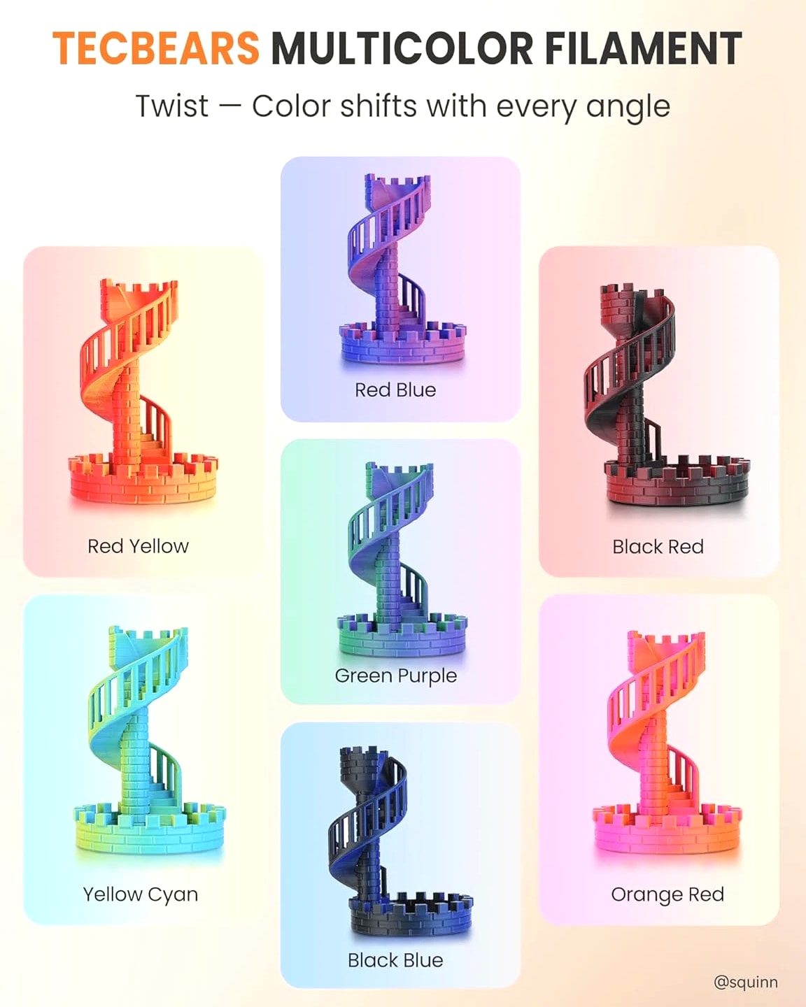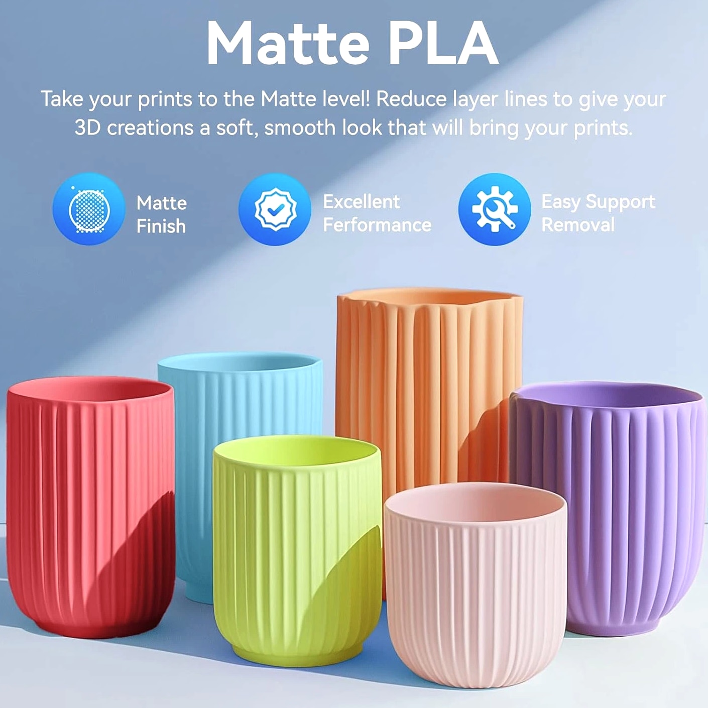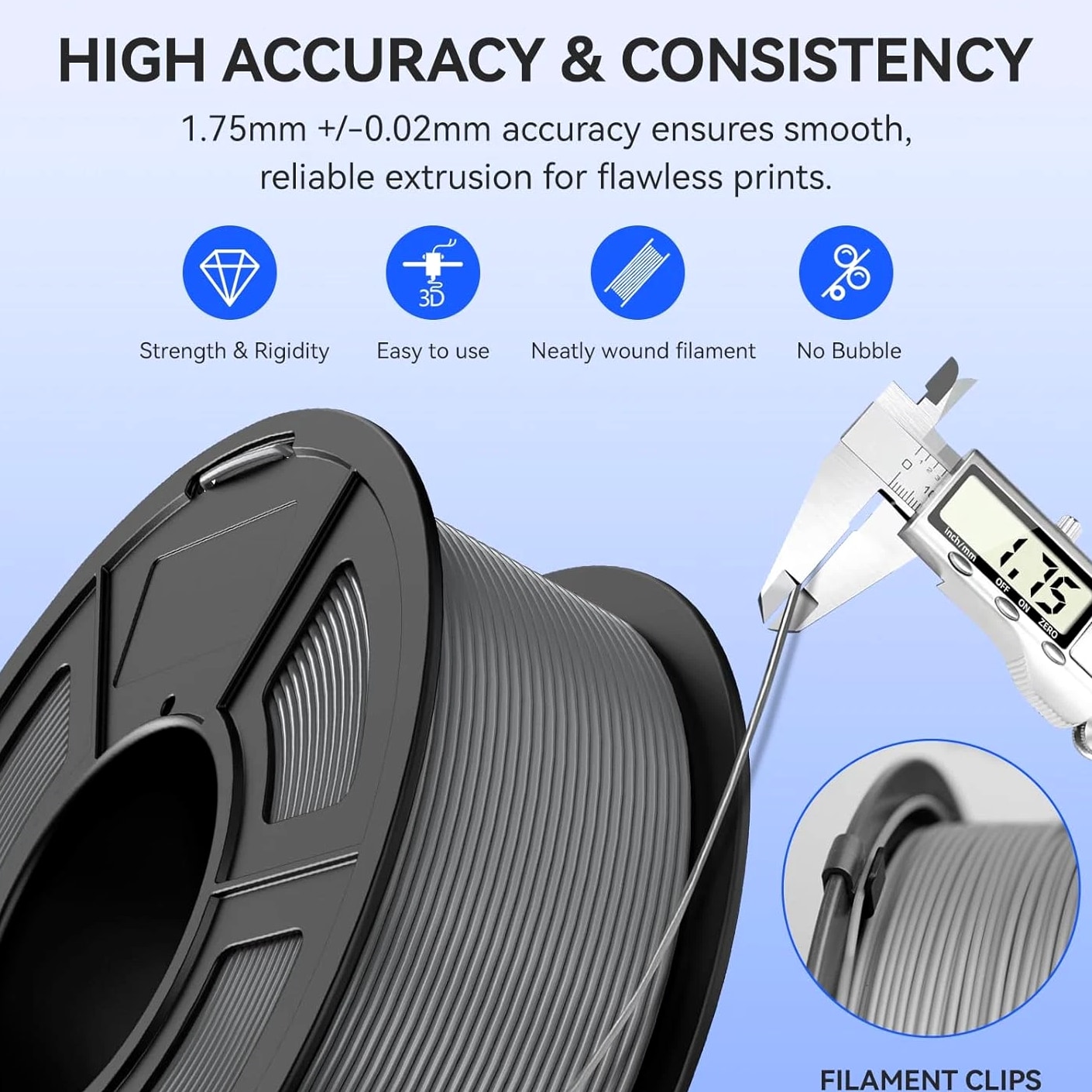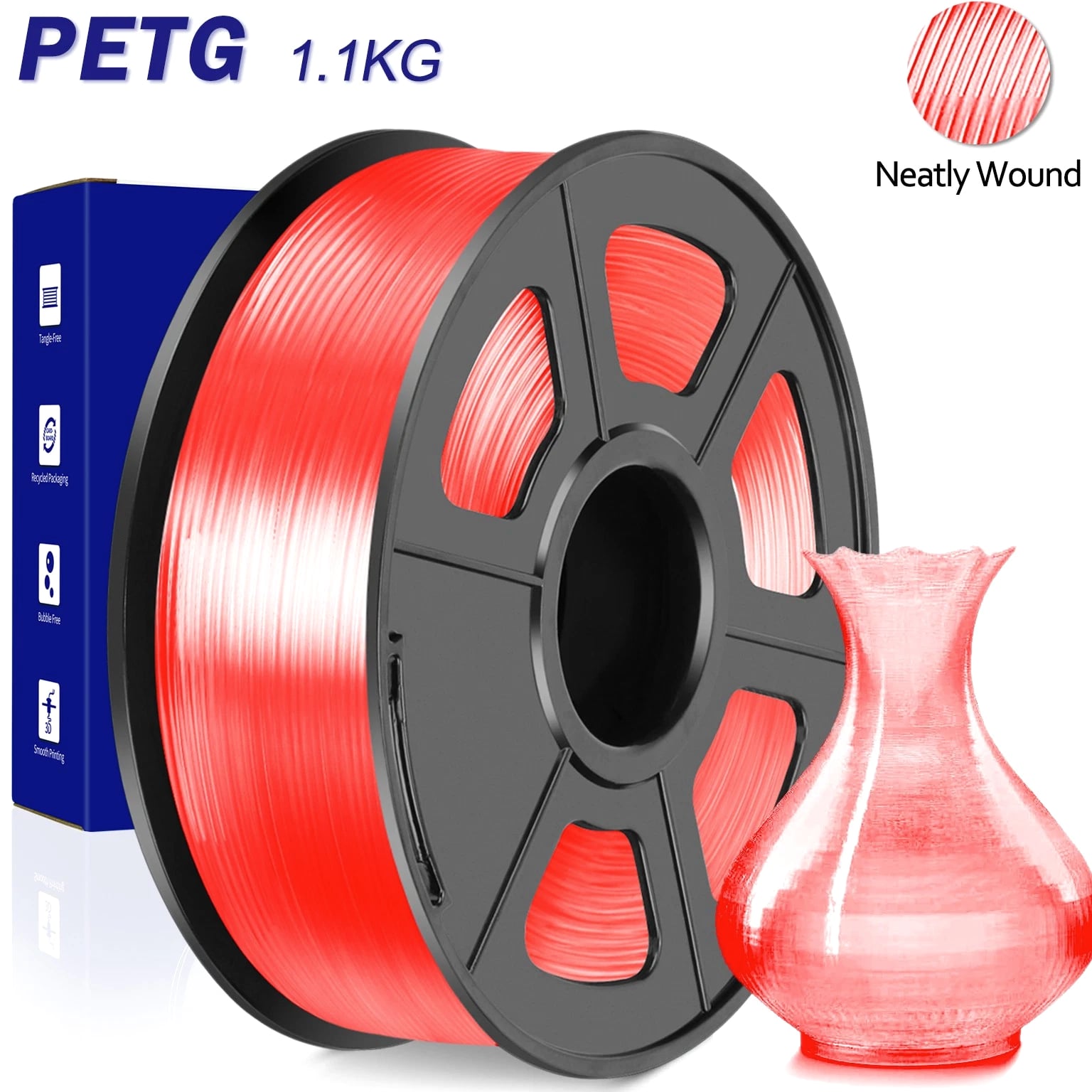 We are in the transitional period of switching to plastic spools. You may receive both plastic and cardboard versions of the spools. Filament PLA PLA+ PETG ABS PLA Meta PLA Matte PLA High-Speed Filament Diameter 1,75mm 1,75mm 1,75mm 1,75mm 1,75mm 1,75mm 1,75mm Tolerance ±0.02mm ±0.02mm ±0.02mm ±0.03mm ±0.02mm ±0.03mm ±0.02mm Printing Temperature 200-210℃ 205-215℃ 220-230℃ 250-260℃ 185-195℃ 205-215℃ 190-210℃ Platform Temperature 50-60℃ 50-60℃ 60-70℃ 80-100℃ 50-60℃ 50-60℃ 50-60℃ Printing Speed 50-100MM/s 50-100MM/s 40-60MM/s 40-60MM/s 50-150MM/s 50-100MM/s 190-210℃, 50-150mm/s 210-230℃, 150-300mm/s 230-260℃, 300-600mm/s Heat Deflection Temperature 53℃ 53℃ 63℃ 84℃ 53℃ 53℃ 53℃ Elongation at Break 3.1% 3.6% 5.3% 7.8% 17% 9.6% 3.6% Net Weight 1.1 KG 1.1 KG 1.1 KG 0.65 KG 1.1 KG 1.1 KG 1.1 KG Filament PLA Luminous (Glow in the Dark) PLA Carbon Fiber PLA Marble WOOD Silk PLA+ Easy ABS TPU (95A) TPU SILK (98A) Filament Diameter 1,75mm 1,75mm 1,75mm 1,75mm 1,75mm 1,75mm 1,75mm 1,75mm Tolerance ±0.02mm ±0.02mm ±0.03mm ±0.03mm ±0.02mm ±0.03mm ±0.03mm ±0.03mm Printing Temperature 200-210℃ 215-225℃ 210-220℃ 205-215℃ 205-215℃ 225-235℃ 195-205℃ 210-220℃ Platform Temperature 50-60℃ 50-60℃ 50-60℃ 50-60℃ 50-60℃ 60-70℃ 50-60℃ 50-60℃ Printing Speed 40-60mm/s 40-60MM/s 40-60MM/s 40-60MM/s 40-60MM/s 40-60MM/s Direct Drive Extrusion: 40MM/s Bowden Extrusion: 20MM/s Direct Drive Extrusion: 50MM/s Bowden Extrusion: 30MM/s Heat Deflection Temperature 53℃ 53℃ 53℃ 53℃ 53℃ 57.9℃ 52℃ 131℃ Elongation at Break 21% 4.1% 3.1% 8.1% 6.3% 20% 536% 436% Net Weight 1.1 KG 1.1 KG 1.1 KG 1.1 KG 1.1 KG 0.65 KG 0.5 KG 1.1 KG We have upgraded the production process of our filaments. The following filaments are now 100% precisely wound- PLA / PLA+ / PLA Meta / SILK PLA+ / PETG. (ABS / TPU / PLA Marble / PLA Twinkling is not included.) Compatible with any 3D Printer that uses 1.75mm diameter filament including some models for your reference AirWolf ColorFabb Dremel MakerBot PowerSpec Simplify3D Aleph Objects Cra