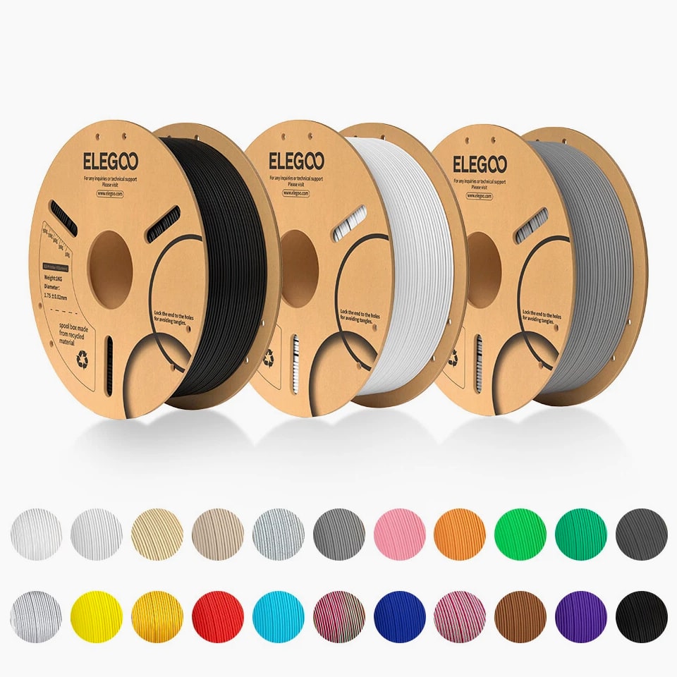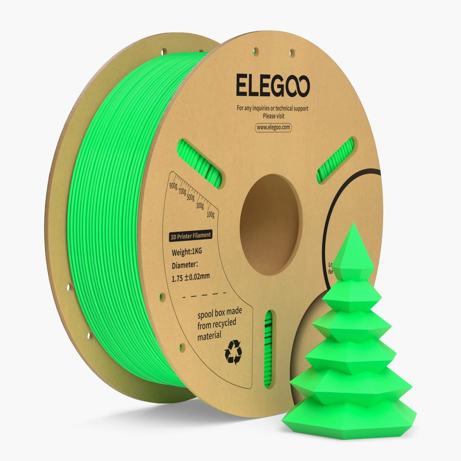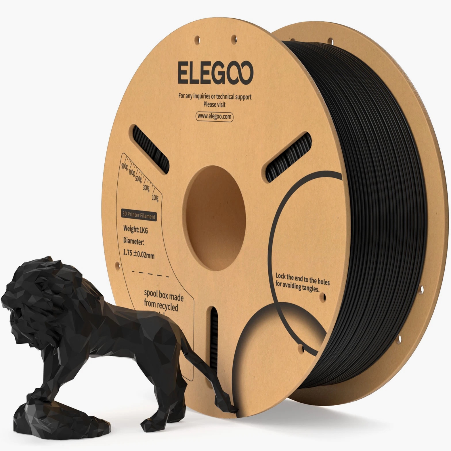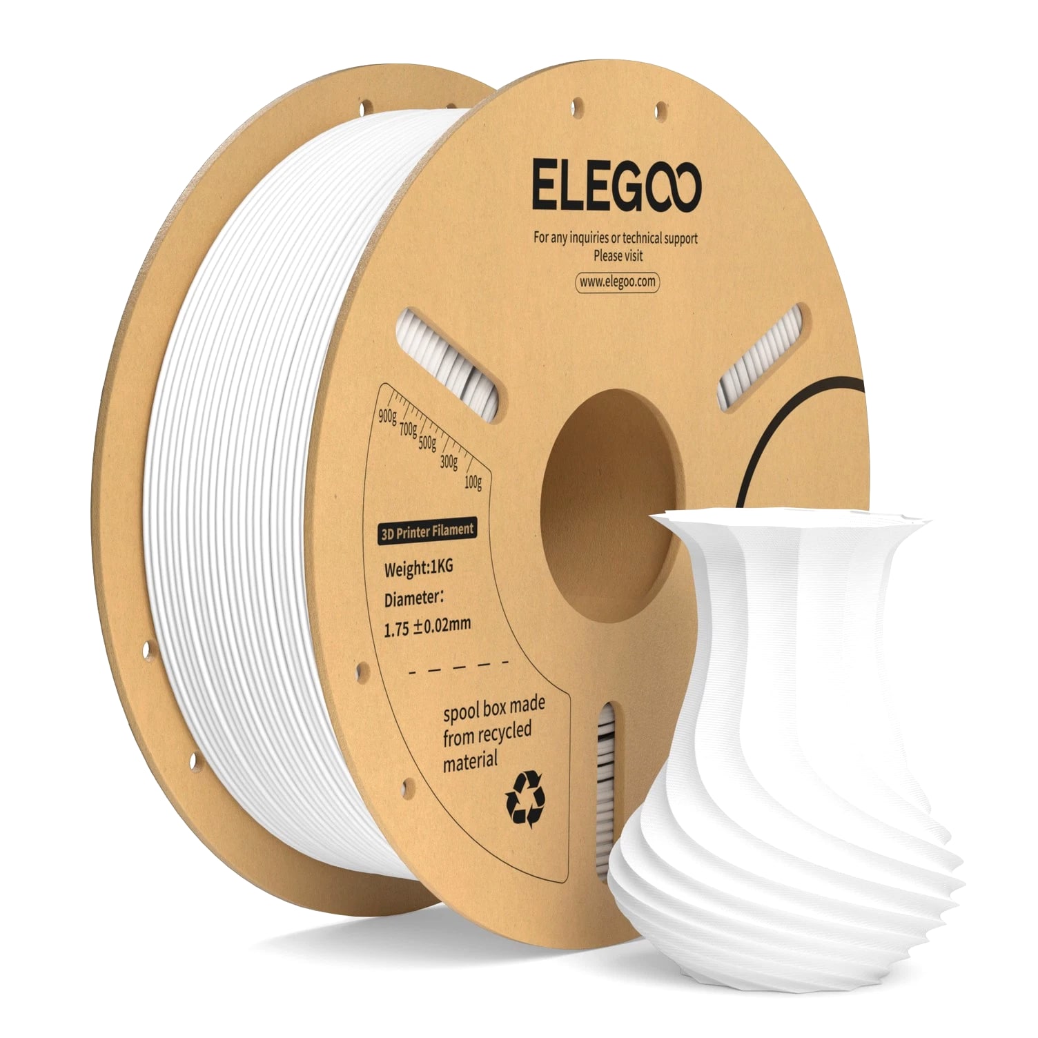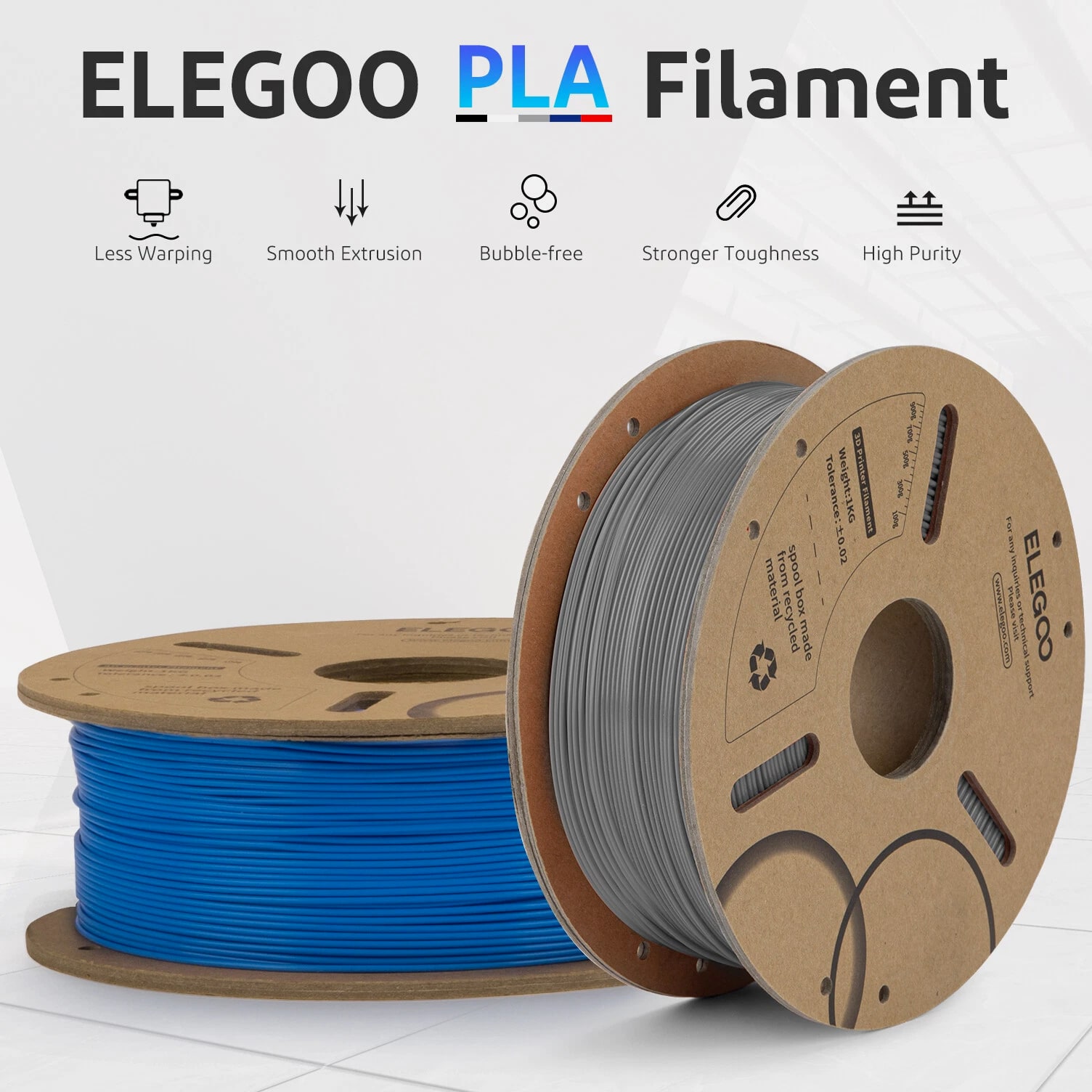 🔺Notice This "Buy 6 get 4 free" promotion requires you to add 10 items to the shopping cart and pay together. will automatically calculate the discount; you only pay for 6 pieces. 🔺Example If you want to get 10pcs, add 10pcs to cart. You only pay for 6pcs. If you want to get 20pcs, add 20pcs to cart. You only pay for 12pcs. ELEGOO PLA Filament 1.75mm 3D Printer Filament Dimensional Accuracy +/- 0.02mm, Compatible with Most FDM Printers 【High-Quality PLA Filaments】Made from high-quality PLA, a commonly used thermoplastic material featuring lower melting temperature and ease of use, minimal warp and shrinkage, odorless during printing, and provides glossy surface finish. 【Clog-Free & Bubble-Free】Engineered and manufactured with clog-free properties, superb layer bonding and excellent fluidity for smooth, stable extrusion. Completely dried for 24 hours before packaging and vacuum sealed with desiccants to protect filament from moisture; no clogging or bubbling issues. 【Dimensional Accuracy & Consistency】 Rigorous tolerances ensure these PLA filaments of 1.75 mm diameter deliver smoother and more stable printing with +/- 0.02 mm dimensional accuracy; 1 kg spool (2.2lbs). 【Low-tangle and Simple to Use】Precision mechanical winding and strict manual inspection ensure neatly arranged line with minimal tangles, avoiding possible snaps and breakage. Larger spool inner diameter for easy feeding. 【Wide Compatibility】Universal compatibility with most common 1.75mm FDM 3D printers available, due to premium manufacturing standards for accuracy and minimal +/- 0.02mm dimensional tolerance. Technical Specifications Density: 1.20g/Cm³ Melt Index: 14(190°C/2.16kg)G/10min Tensile Strength (X-Y): ≥ 50mpa Elongation At Break (X-Y): 11.2% Bending Strength: 91mpa Bending Modulus: 1913mpa Charpy Impact Strength: 5.4kj/M² Thermal Deformation Temp: 53°C(0.45mpa) Fan: 100% Line Length: (1.75