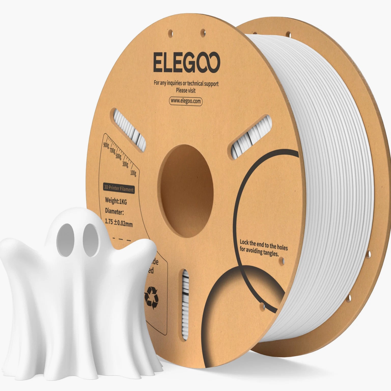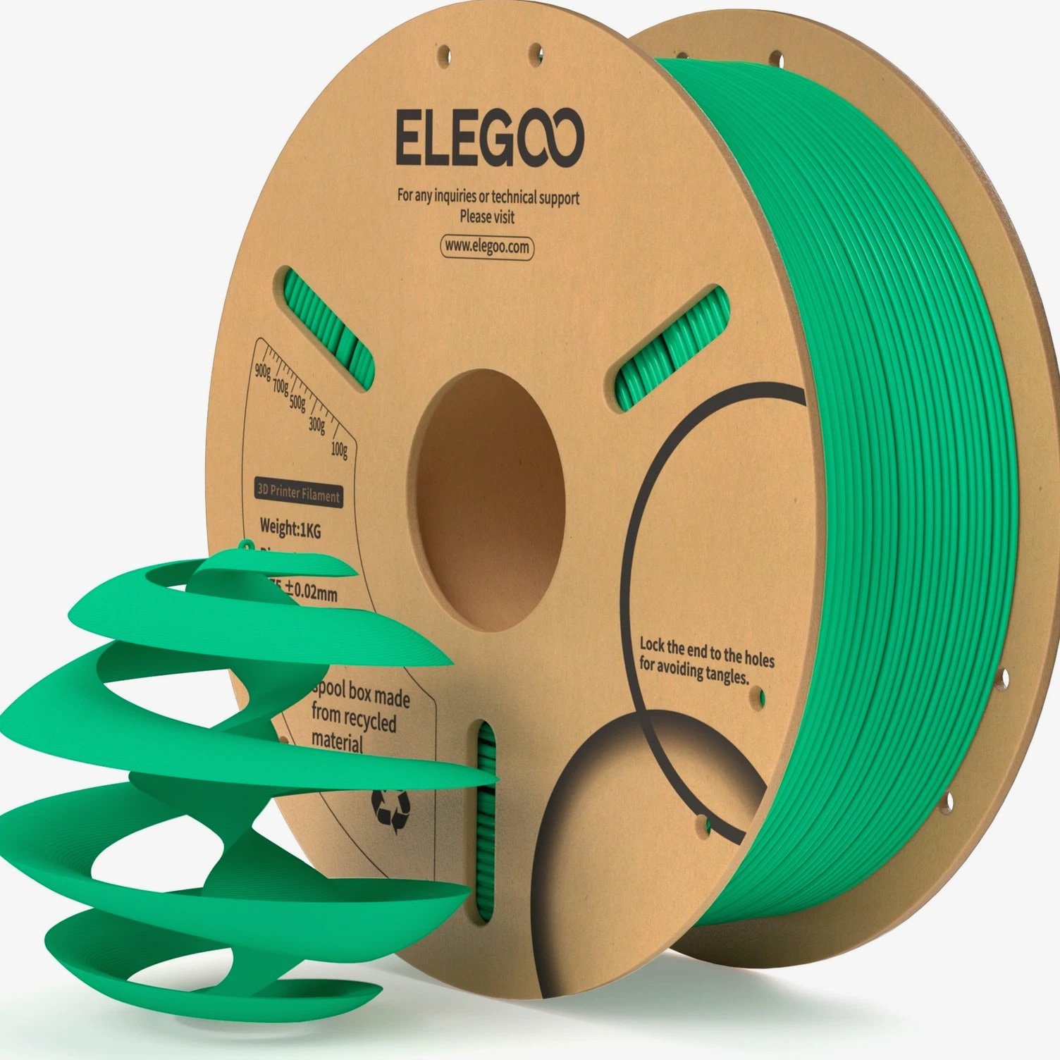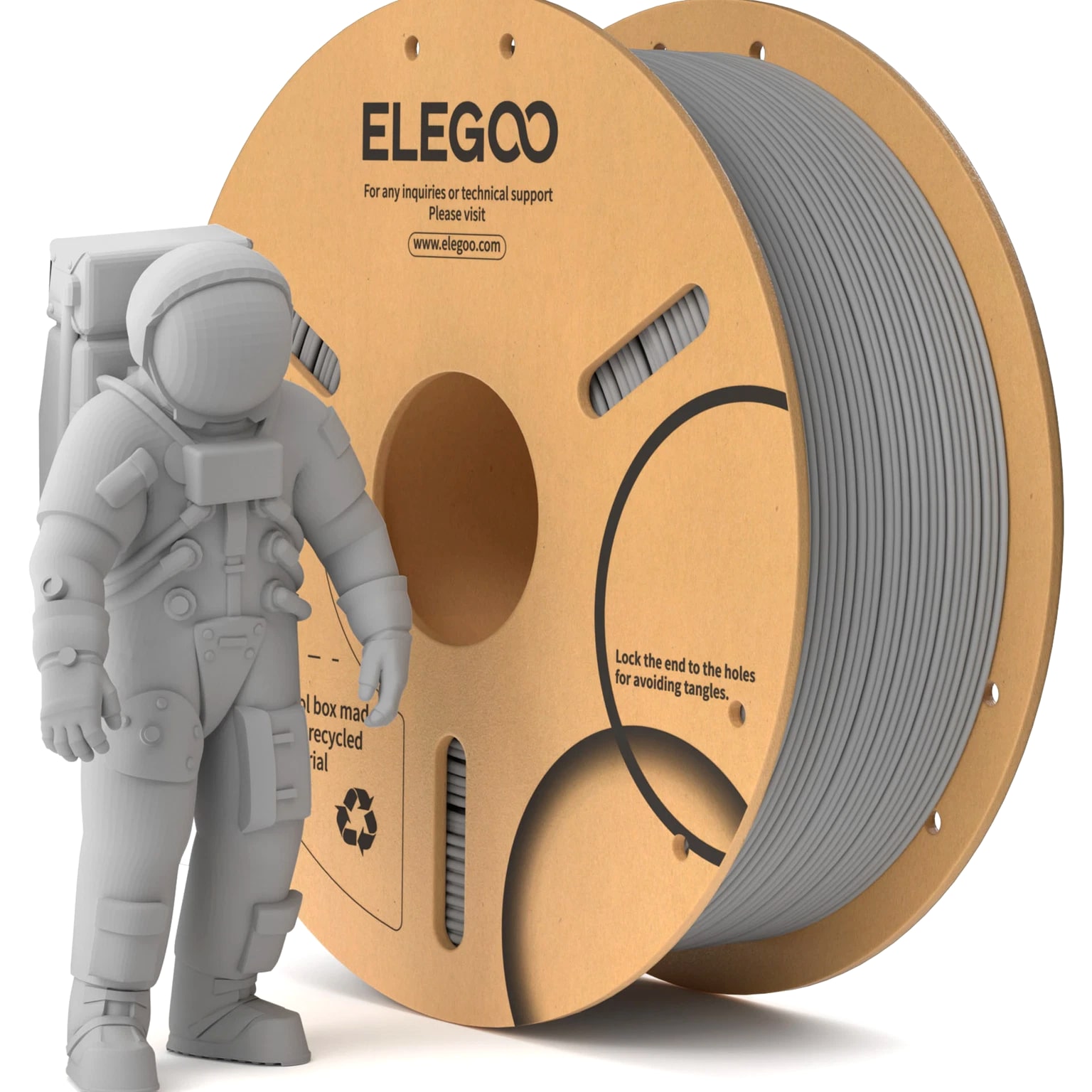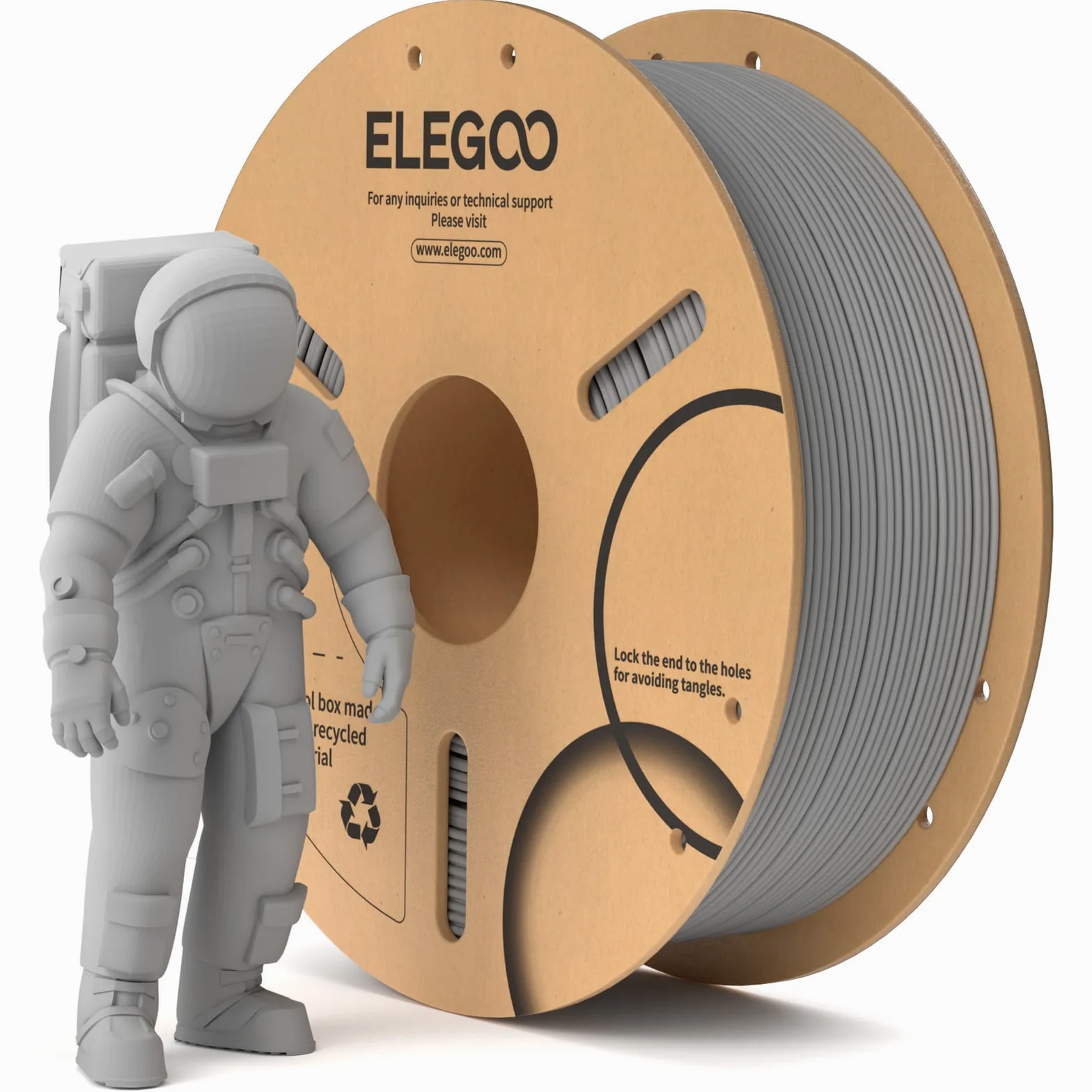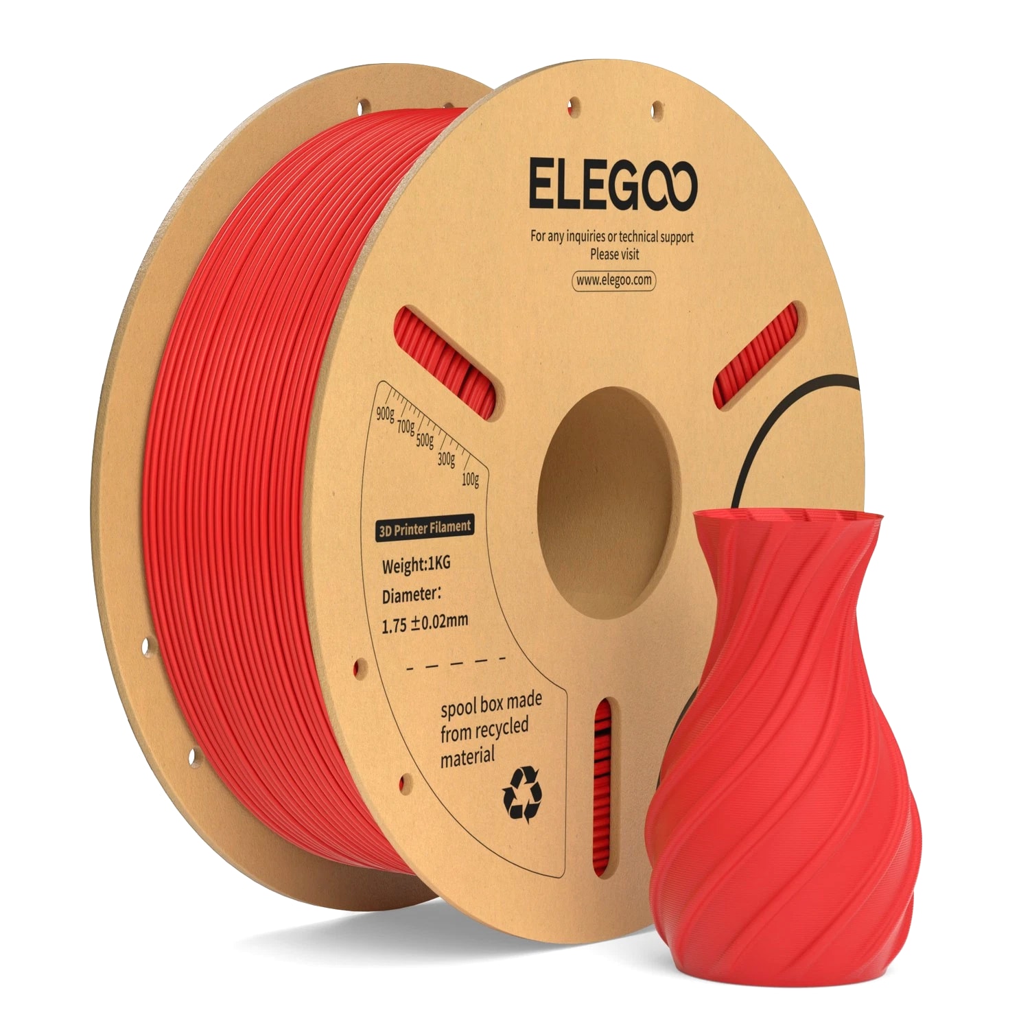 🔺Notice This "Buy 6 get 4 free" promotion requires you to add 10 items to the shopping cart and pay together. will automatically calculate the discount; you only pay for 6 pieces. 🔺Example If you want to get 10pcs, add 10pcs to cart. You only pay for 6pcs. If you want to get 20pcs, add 20pcs to cart. You only pay for 12pcs. ELEGOO PLA Filament 1.75mm 3D Printer Filament Dimensional Accuracy +/- 0.02mm, Compatible with Most FDM Printers 【High-Quality PLA Filaments】Made from high-quality PLA, a commonly used thermoplastic material featuring lower melting temperature and ease of use, minimal warp and shrinkage, odorless during printing, and provides glossy surface finish. 【Clog-Free & Bubble-Free】Engineered and manufactured with clog-free properties, superb layer bonding and excellent fluidity for smooth, stable extrusion. Completely dried for 24 hours before packaging and vacuum sealed with desiccants to protect filament from moisture; no clogging or bubbling issues. 【Dimensional Accuracy & Consistency】 Rigorous tolerances ensure these PLA filaments of 1.75 mm diameter deliver smoother and more stable printing with +/- 0.02 mm dimensional accuracy; 1 kg spool (2.2lbs). 【Low-tangle and Simple to Use】Precision mechanical winding and strict manual inspection ensure neatly arranged line with minimal tangles, avoiding possible snaps and breakage. Larger spool inner diameter for easy feeding. 【Wide Compatibility】Universal compatibility with most common 1.75mm FDM 3D printers available, due to premium manufacturing standards for accuracy and minimal +/- 0.02mm dimensional tolerance. Technical Specifications Density: 1.20g/Cm³ Melt Index: 14(190°C/2.16kg)G/10min Tensile Strength (X-Y): ≥ 50mpa Elongation At Break (X-Y): 11.2% Bending Strength: 91mpa Bending Modulus: 1913mpa Charpy Impact Strength: 5.4kj/M² Thermal Deformation Temp: 53°C(0.45mpa) Fan: 100% Line Length: (1.75