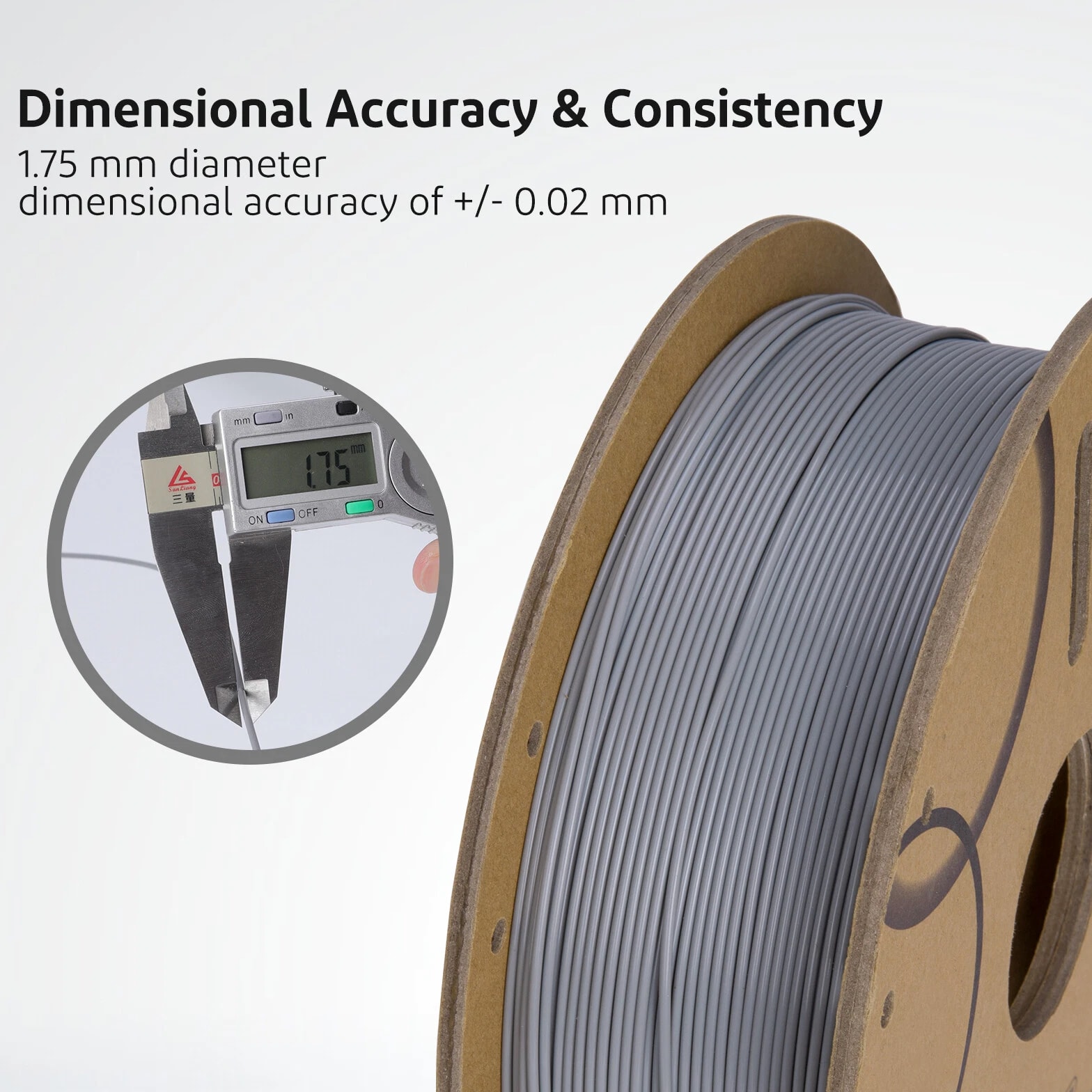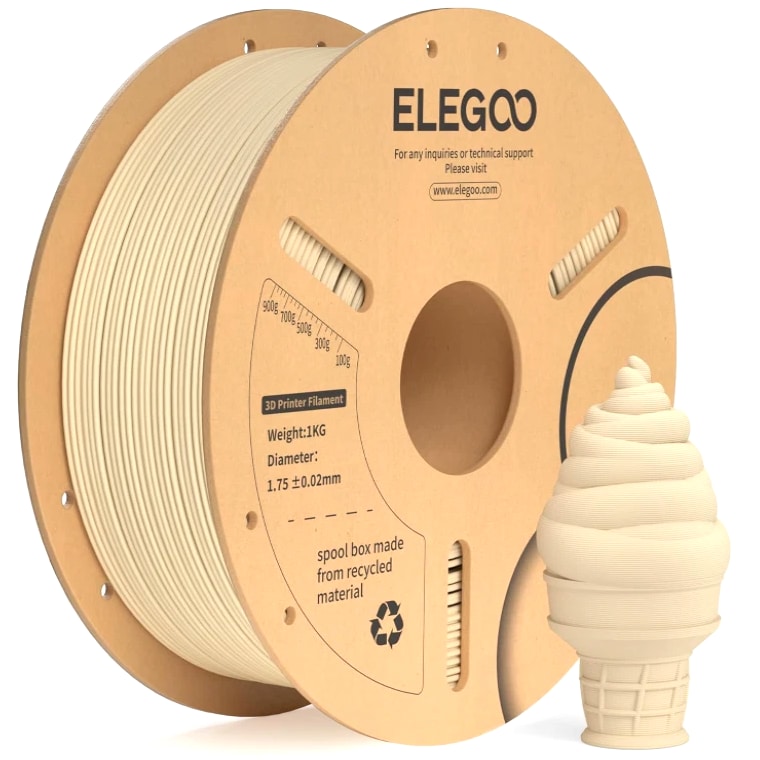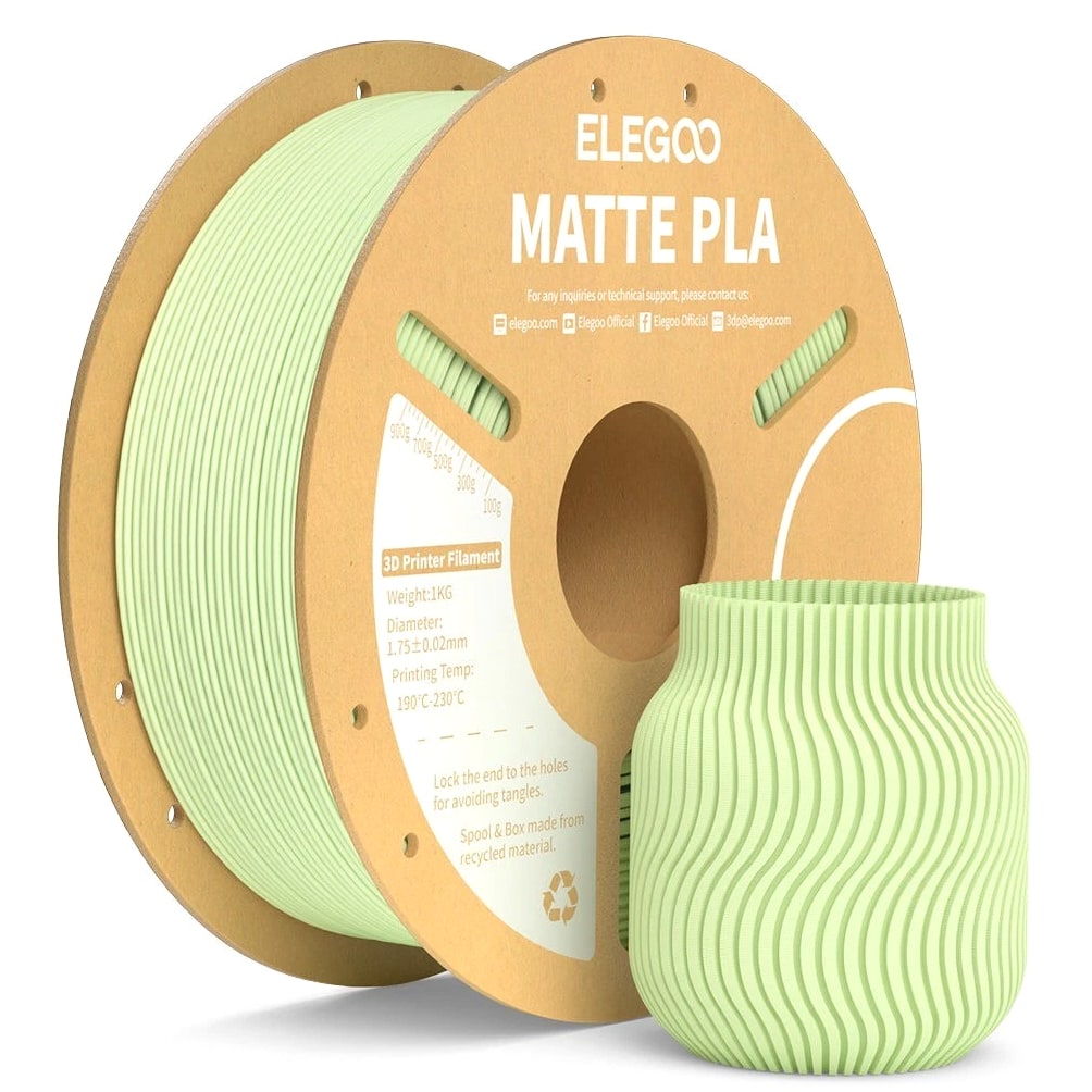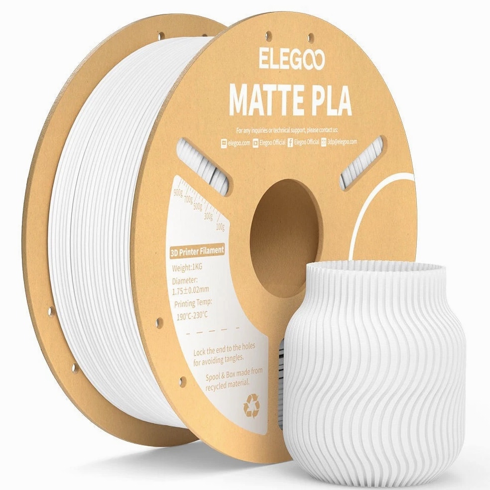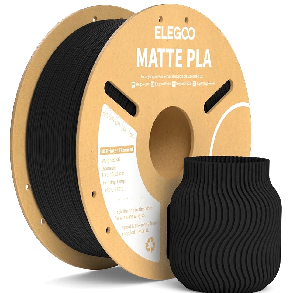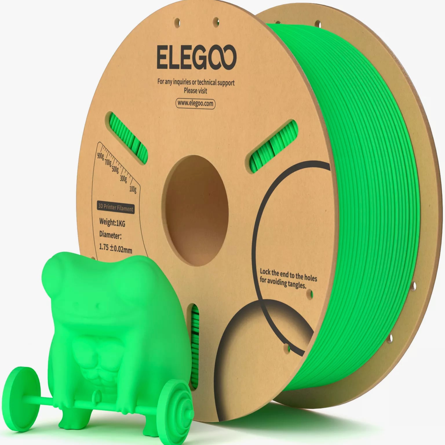 🔺Notice This "Buy 6 get 4 free" promotion requires you to add 10 items to the shopping cart and pay together. will automatically calculate the discount; you only pay for 6 pieces. 🔺Example If you want to get 10pcs, add 10pcs to cart. You only pay for 6pcs. If you want to get 20pcs, add 20pcs to cart. You only pay for 12pcs. ELEGOO PLA Filament 1.75mm 3D Printer Filament Dimensional Accuracy +/- 0.02mm, Compatible with Most FDM Printers 【High-Quality PLA Filaments】Made from high-quality PLA, a commonly used thermoplastic material featuring lower melting temperature and ease of use, minimal warp and shrinkage, odorless during printing, and provides glossy surface finish. 【Clog-Free & Bubble-Free】Engineered and manufactured with clog-free properties, superb layer bonding and excellent fluidity for smooth, stable extrusion. Completely dried for 24 hours before packaging and vacuum sealed with desiccants to protect filament from moisture; no clogging or bubbling issues. 【Dimensional Accuracy & Consistency】 Rigorous tolerances ensure these PLA filaments of 1.75 mm diameter deliver smoother and more stable printing with +/- 0.02 mm dimensional accuracy; 1 kg spool (2.2lbs). 【Low-tangle and Simple to Use】Precision mechanical winding and strict manual inspection ensure neatly arranged line with minimal tangles, avoiding possible snaps and breakage. Larger spool inner diameter for easy feeding. 【Wide Compatibility】Universal compatibility with most common 1.75mm FDM 3D printers available, due to premium manufacturing standards for accuracy and minimal +/- 0.02mm dimensional tolerance. Technical Specifications Density: 1.20g/Cm³ Melt Index: 14(190°C/2.16kg)G/10min Tensile Strength (X-Y): ≥ 50mpa Elongation At Break (X-Y): 11.2% Bending Strength: 91mpa Bending Modulus: 1913mpa Charpy Impact Strength: 5.4kj/M² Thermal Deformation Temp: 53°C(0.45mpa) Fan: 100% Line Length: (1.75