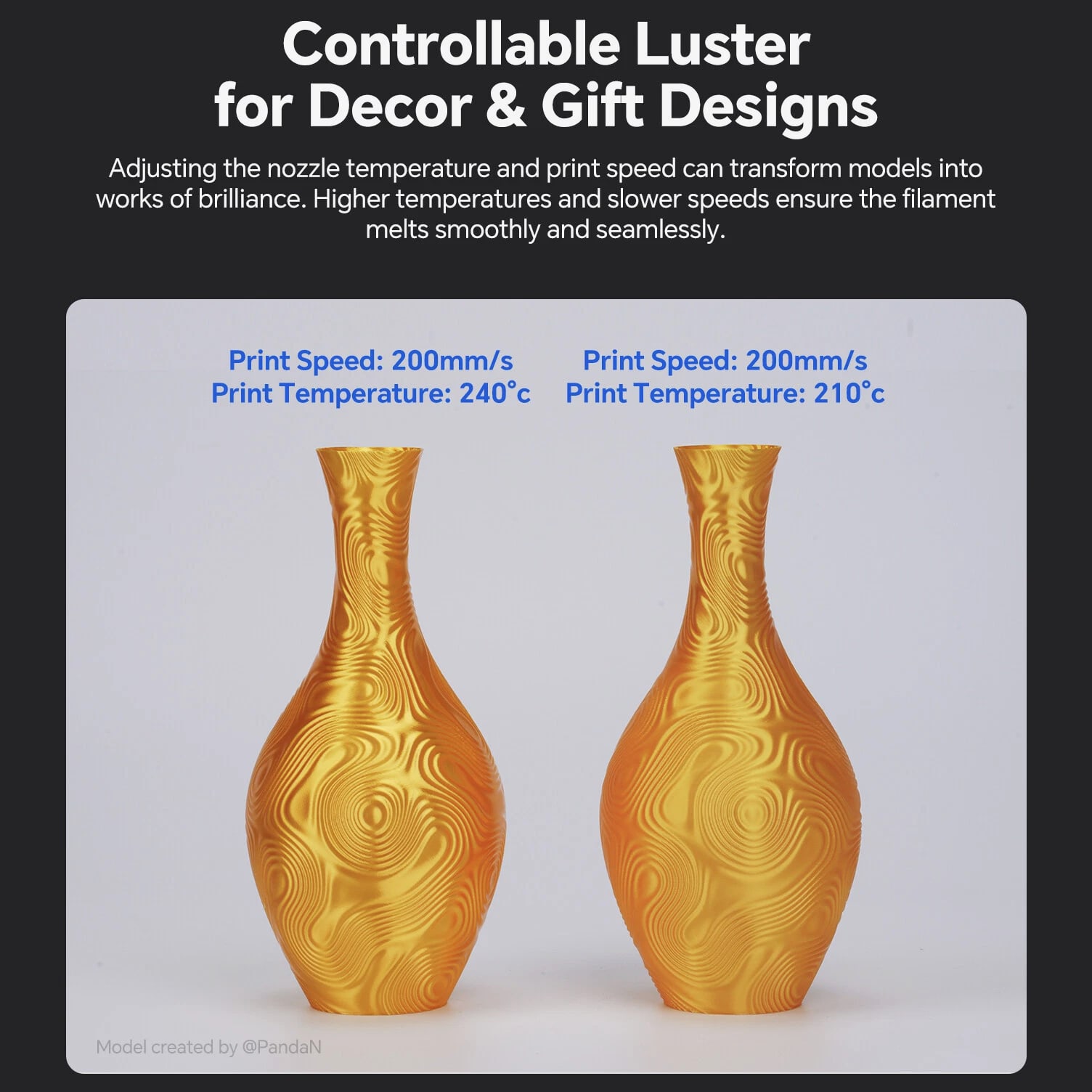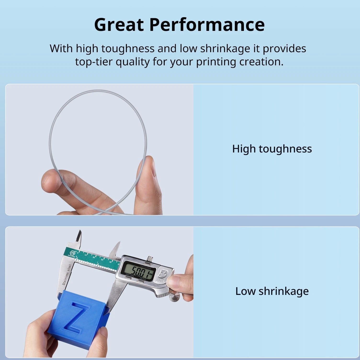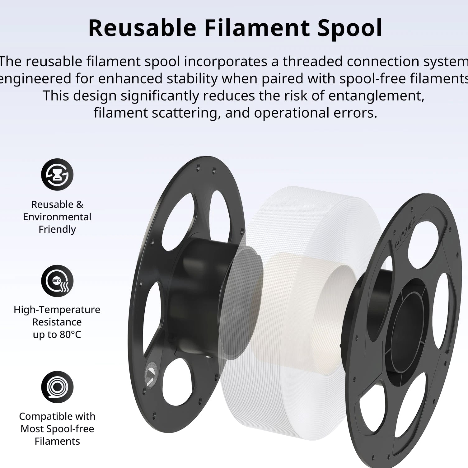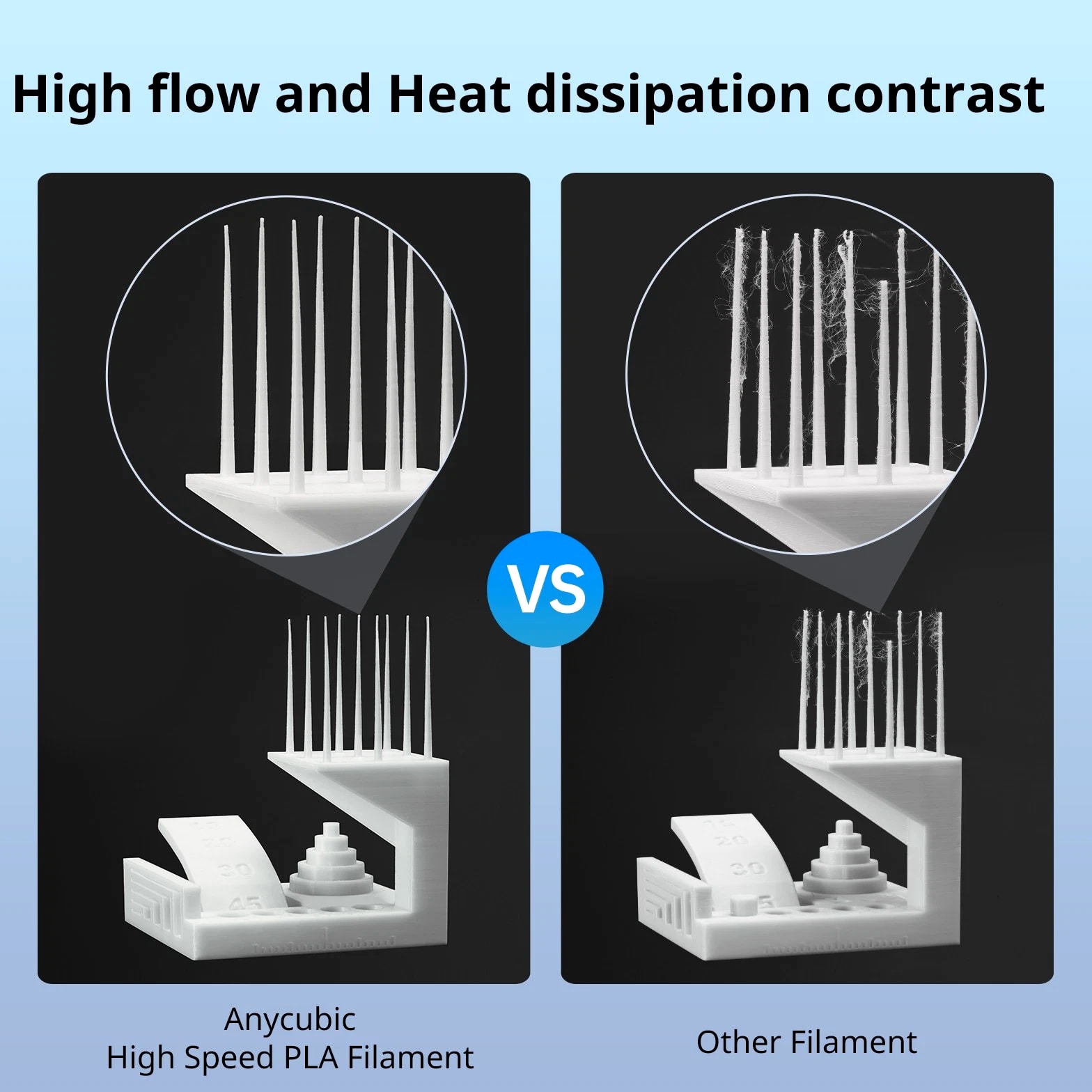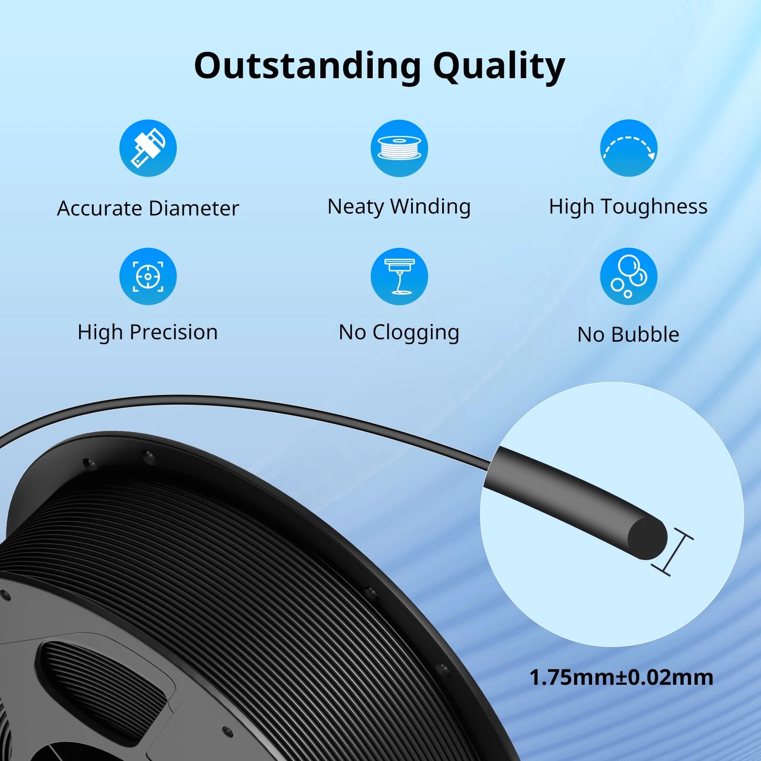 ANYCUBIC Filament Parameters Standard PLA Matte PLA Silk PLA Matte blau Silk PLA High Speed PLA PLA + PLA Glow PETG PLA Wood Material PLA PLA PLA PLA PLA PLA PLA PETG PLA Filament diameter ⌀ 1.75±0.02 ⌀ 1.75±0.03 ⌀ 1.75±0.02 ⌀ 1.75±0.03 ⌀ 1.75±0.02 ⌀ 1.75±0.02 ⌀ 1.75±0.02 ⌀ 1.75±0.02 ⌀ 1.75±0.03 Tensile strength /MPa 61 20.9 60.6 42~50 54 58 50 61.4 48.6 Stretch at break /% 3.1 34.5 6.3 2~4 12 3.6 21.7 5.3 8.1 Bending strength /MPa 83 39.6 65 70~80 74 73 79.8 74.8 58 Density /g/cm3 1.23 1.31 1.23 1.05~1.07 1.26 1.23 1.26 1.3 1.25 Heat deflection /℃ 53 52 53 75 56 53 53 63 53 Melting point /℃ 164 162.6 164 160 165 164 162 128 164 Melting index g/10min 4~10 14~20 7~15 30~40 4~6 4~10 6~12 8~16 8.5 Printing speed mm/s 50~100 30~70 40~60 40~80 50~150 150~300 300~600 50~100 40~60 40~60 40~60 Pressure temperature /℃ 200~210 190~230 205~215 200~230 190~210 210~230 230~260 205~215 195~205 230~240 205~215 Base plate temperature /℃ 50~60 45~60 50~60 60~80 50~60 50~60 50~60 60~70 50~60 Length /m 330 310 330 330 330 330 330 320 330 Anycubic PLA Filament Neatly Wound Experience hassle-free 3D printing with Anycubic PLA Filament. Our meticulous winding method minimizes filament tangles, guaranteeing smooth, frustration-free printing. Say goodbye to interruptions and hello to flawless prints for all creative endeavors. Consistent Filament Diameter With impressive ±0.02mm diameter tolerance and vibrant colors, we deliver premium 3D printing experience. Enjoy unmatched reliability and color consistency throughout your creative journey. Eco-Friendly PLA is made from lactic acid, which is produced via starch fermentation from corn or other plant-based materials; it's a biodegradable and eco-friendly material. Specifications Product Type Net Weight 1kg/roll Diameter 1.75mm Tolerance ±0.02mm Length 340m Density 1.25g±0.05g/cm³ Tensile Strength 55MPa Hotbed Temperature 50-80°C Nozzle Temperature 200-210°C