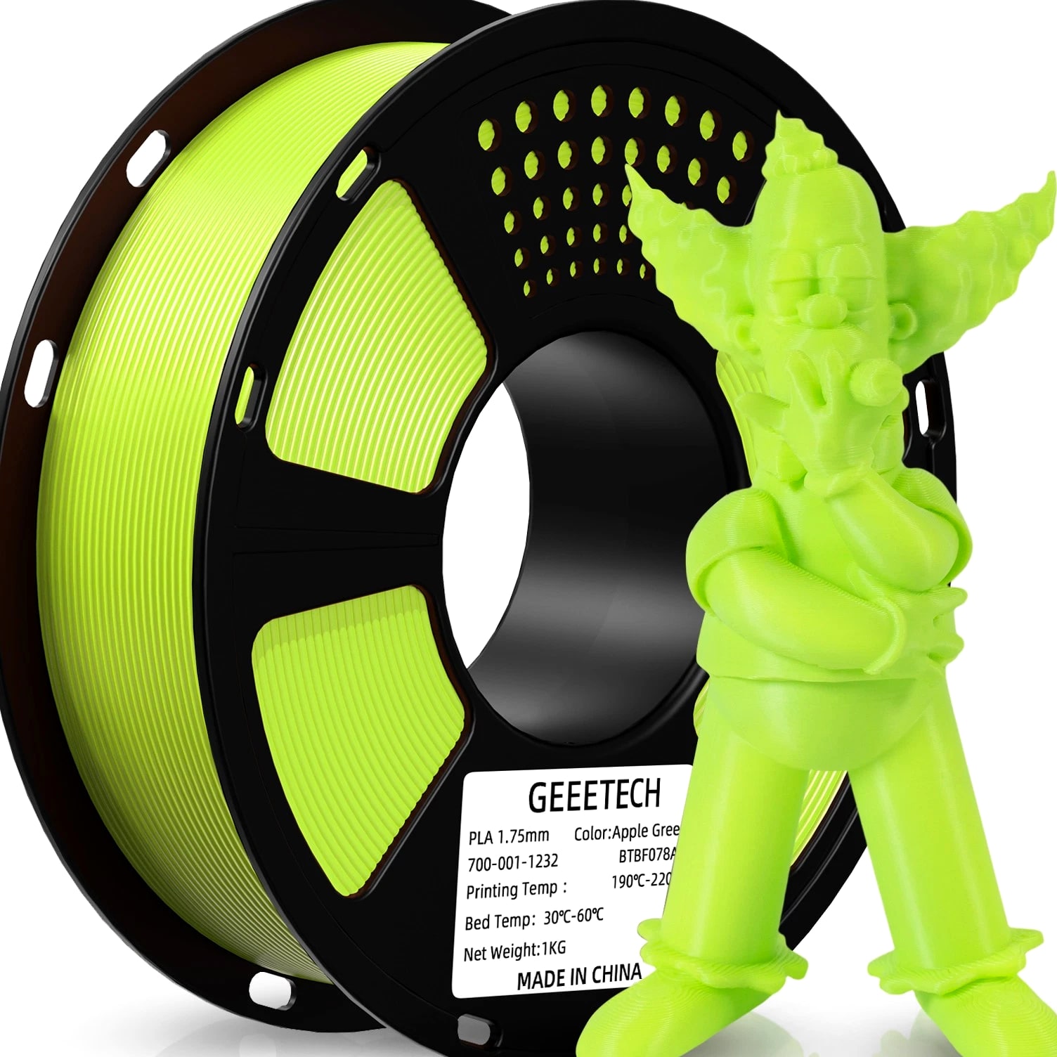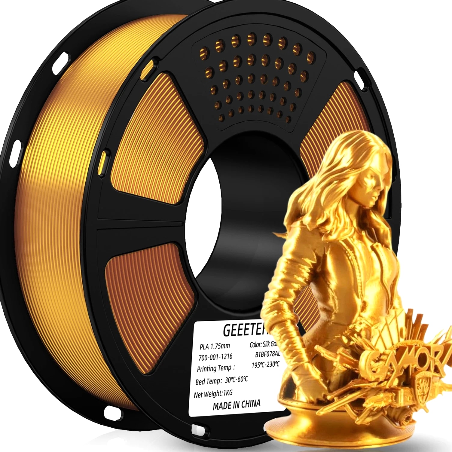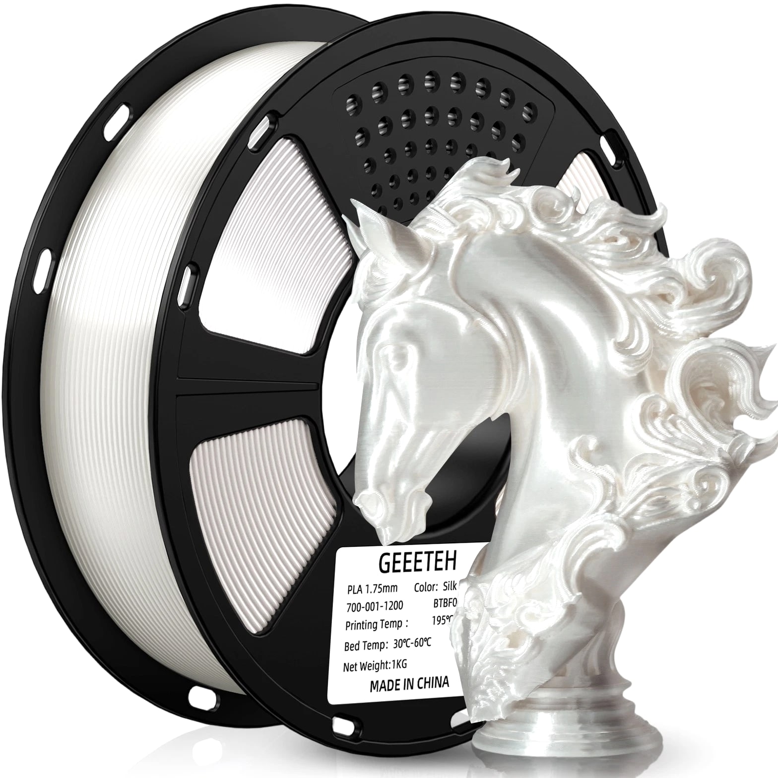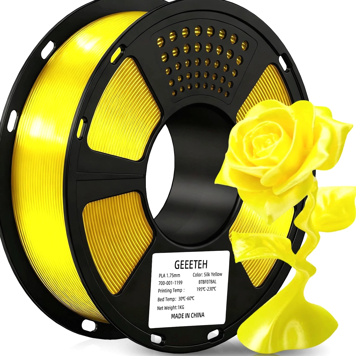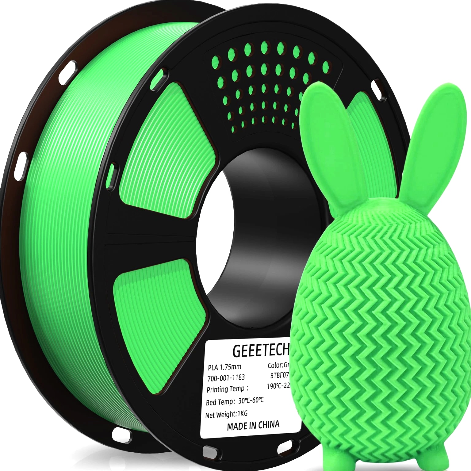 Product Details Specification: Net weight: 1 kg Color: As Your Choice Material: PLA/ABS/PETG/TPU Filament diameter: 1.75 mm ( +/- 0.03 mm) Regular PLA 【Dimensional Accuracy & Consistency】- GEETECH PLA features strict tolerances. Diameter 1.75mm, dimensional accuracy +/- 0.03mm without exaggeration. Works harmoniously with all common 1.75mm FDM 3D printers. 【1kg (2.2lbs) Spool】Pack of 1 spool 1kg/(2.2lbs). Spool size: Φ200mm/7.9" flange, Φ56mm/2.2" hub hole, 64mm/2.5" width. Reel suits most popular printers, Comgrow, Geeetech, Longer, LABISTS, ANYCUBIC.etc 【Easy-to-Use, Clog-Free, Bubble-Free】- Recommended extrusion nozzle temperature 185°C - 215°C, hot bed 25°C - 60°C. Works perfectly with common 1.75mm FDM 3D printers. 【Vacuum Packing】- Vacuum sealed with desiccant to maintain low moisture content. Please keep it dry and dust-free after opening the sealed package to prevent brittleness or nozzle jamming. Note: extra sealed bag provided for filament storage. Silk PLA 【Silky Shiny Color】The special color of PLA Silk Filament brings arts & crafts and 3D Projects smooth shiny silver surface which gives eye-catching, glossy prints. Very suitable for printing decorations or gifts for all kinds of festivals and cosplay. 【High Quality】This filament resists warping, offers high accuracy, no bubble, no jamming and no drawing. Recommended printing temp 200-230°C (392-446°F), hot bed temp 40-60°C (104-140℉). 【High Compatibility】This filament is universally designed and compatible with 3D Printers using 1.75mm diameter filament, with dimensional accuracy of +/- 0.03mm. 【Vacuum sealed packaging】 This filament is packed in sealed vacuum bag with desiccant bag to keep it dry and maintain high performance for extended time. Luminous PLA Filament: 【An Impressive Luminous PLA Filament】If you enjoy prints that are shiny and bright, Geeetech glow in the dark filament is ideal, which really expands your capabilities for creating