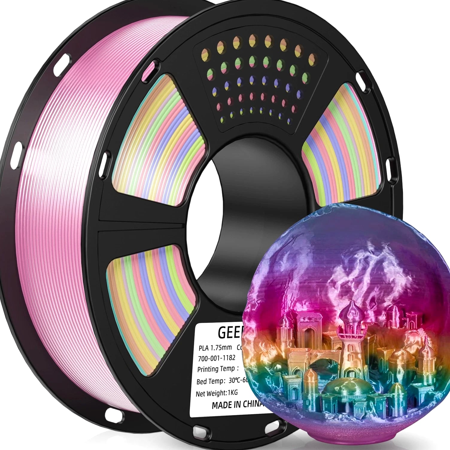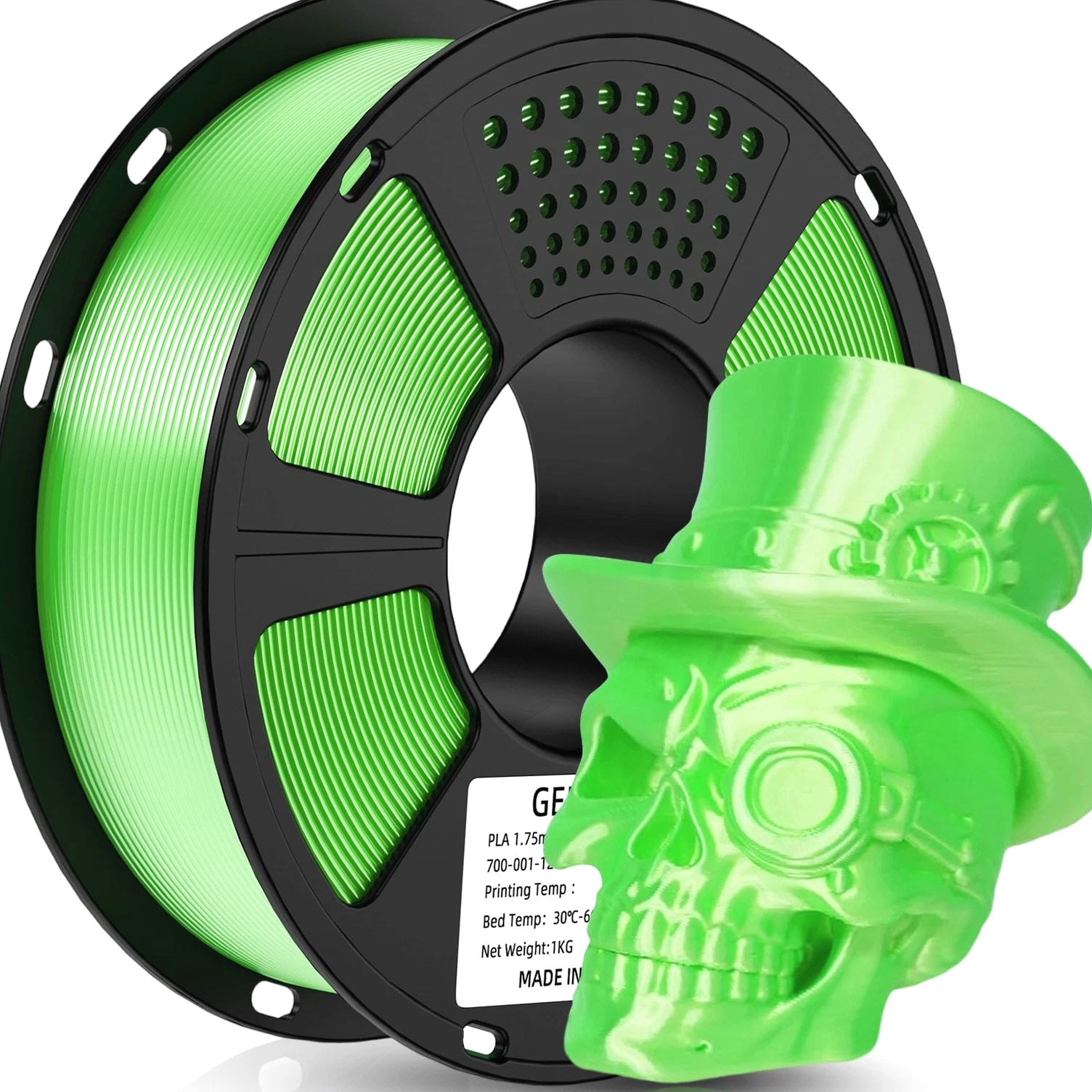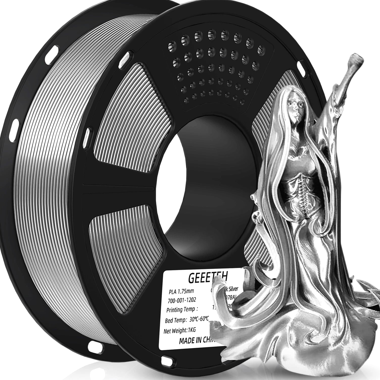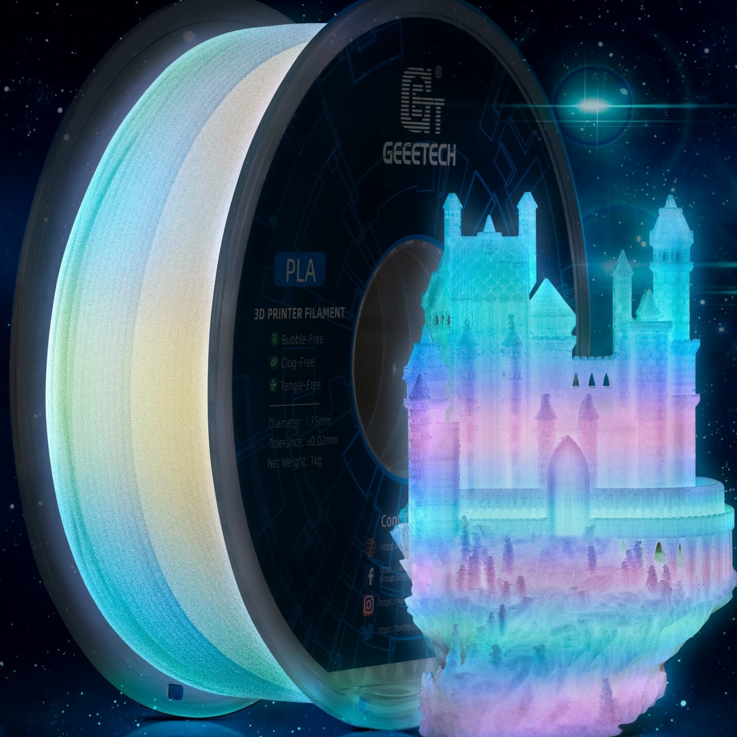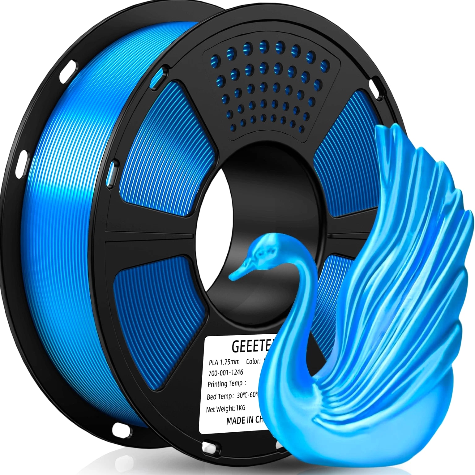 Product Details Specification: Net weight: 1 kg Color: As Your Choice Material: PLA/ABS/PETG/TPU Filament diameter: 1.75 mm ( +/- 0.03 mm) Regular PLA 【Dimensional Accuracy & Consistency】- GEETECH PLA features strict tolerances. Diameter 1.75mm, dimensional accuracy +/- 0.03mm without exaggeration. Works harmoniously with all common 1.75mm FDM 3D printers. 【1kg (2.2lbs) Spool】Pack of 1 spool 1kg/(2.2lbs). Spool size: Φ200mm/7.9" flange, Φ56mm/2.2" hub hole, 64mm/2.5" width. Reel suits most popular printers, Comgrow, Geeetech, Longer, LABISTS, ANYCUBIC.etc 【Easy-to-Use, Clog-Free, Bubble-Free】- Recommended extrusion nozzle temperature 185°C - 215°C, hot bed 25°C - 60°C. Works perfectly with common 1.75mm FDM 3D printers. 【Vacuum Packing】- Vacuum sealed with desiccant to maintain low moisture content. Please keep it dry and dust-free after opening the sealed package to prevent brittleness or nozzle jamming. Note: extra sealed bag provided for filament storage. Silk PLA 【Silky Shiny Color】The special color of PLA Silk Filament brings arts & crafts and 3D Projects smooth shiny silver surface which gives eye-catching, glossy prints. Very suitable for printing decorations or gifts for all kinds of festivals and cosplay. 【High Quality】This filament resists warping, offers high accuracy, no bubble, no jamming and no drawing. Recommended printing temp 200-230°C (392-446°F), hot bed temp 40-60°C (104-140℉). 【High Compatibility】This filament is universally designed and compatible with 3D Printers using 1.75mm diameter filament, with dimensional accuracy of +/- 0.03mm. 【Vacuum sealed packaging】 This filament is packed in sealed vacuum bag with desiccant bag to keep it dry and maintain high performance for extended time. Luminous PLA Filament: 【An Impressive Luminous PLA Filament】If you enjoy prints that are shiny and bright, Geeetech glow in the dark filament is ideal, which really expands your capabilities for creating