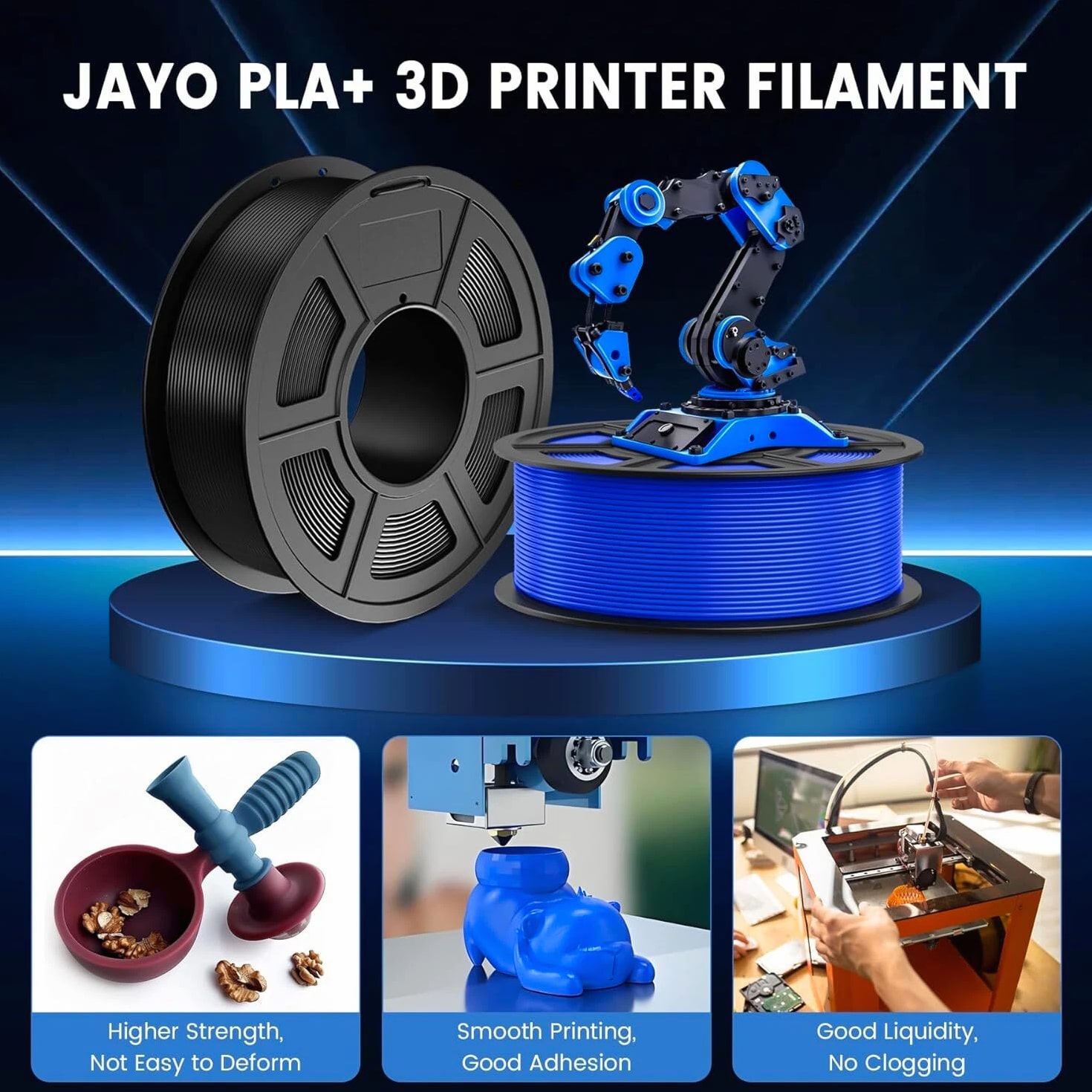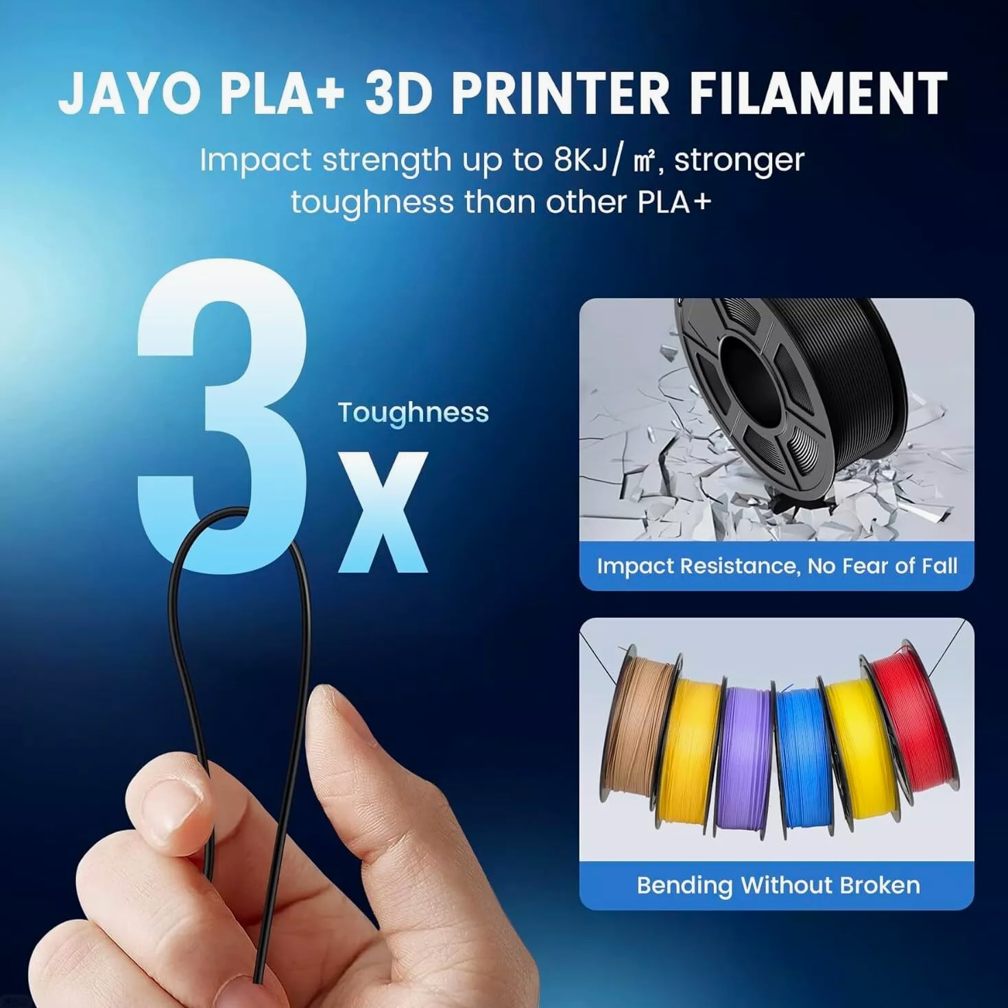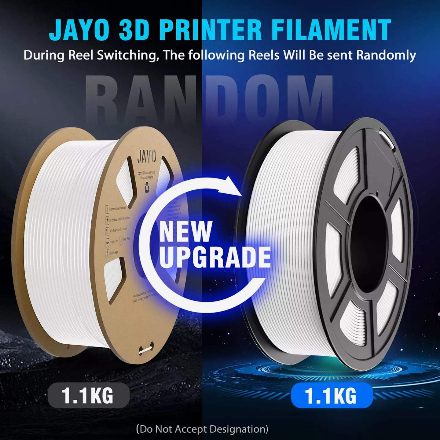 JAYO 1.75mm 3D Filament 🎁 Purchase 6, receive 4 complimentary discount Description: You must add 10 items or multiples of 10 to your basket! Combine payments. will automatically calculate the discount and in the case of 10 items, you will only pay for 6 of the 10 items. For example: If you buy 10 items, you only pay for 6. ✔️ If you buy 20 items, you only pay for 12. ✔️ The Following Filaments are 100% Neatly Wound -- PLA / PLA+ / PETG / SILK / PLA Meta / PLA Matte (ABS / TPU / PLA Marble is not included.) Filament Wire Diameter Tolerance Printing Temperature Print speed Heat Distortion Temperature Print Platform Temperature Net weight 1.75MM ±0.02mm 200-210℃ 50-100mm/s 53℃ 50-60℃ 1.1KG/Roll PLA+ ±0.02mm 195-205℃ 50-100mm/s 50-60℃ 1.1KG/Roll PLA+2.0 ±0.02mm 195-205℃ 50-100mm/s 50-60℃ 1.1KG/Roll PLA Meta ±0.02mm 185-195℃ 50-150mm/s 50-60℃ 1.1KG/Roll PLA Matte ±0.02mm 205-215℃ 50-100mm/s 50-60℃ 1.1KG/Roll PLA HighSpeed ±0.02mm / 190-210℃, 50-150mm/s 210-230℃,150-300mm/s 230-260℃,300-600mm/s 53℃ 50-60℃ 1.1KG/Roll PLA Glow ±0.02mm 195-215℃ 50-100mm/s 53℃ 50-60℃ 1.1KG/Roll PLA Carbon Fibre ±0.02mm 205-215℃ 40-60mm/s 53℃ 50-60℃ 1.1KG/Roll PLA Marble ±0.03mm 210-220℃ 40-60mm/s 53℃ 50-60℃ 1.1KG/Roll WOOD ±0.03mm 195-215℃ 40-60mm/s 53℃ 60-70℃ 1.1KG/Roll PETG ±0.02mm 230-240℃ 40-60mm/s 63℃ 60-70℃ 1.1KG/Roll SILK PLA+ ±0.02mm 205-215℃ 40-60mm/s 53℃ 50-60℃ 1.1KG/Roll TPU(95A) ±0.03mm 195-205℃ Proximal Extrusion:40mm/s Remote Extrusion:20mm/s 52℃ 50-60℃ 0.5KG/Roll TPU-SILK(98A) ±0.03mm 210-220℃ Proximal Extrusion:50mm/s Remote Extrusion:30mm/s 131℃ 50-60℃ 1.1KG/Roll ABS ±0.03mm 250-260℃ 40-60mm/s 84℃ 80-100℃ 1KG/Roll 0.65KG/Roll Easy ABS ±0.03mm 225-235℃ 40-60mm/s 57.9℃ 60-70℃ 1KG/Roll 0.65KG/Roll Exceptional precision JAYO 3D filaments feature tight tolerances and premium quality standards ensuring your 3D printers operate smoothly with excellent outcomes.