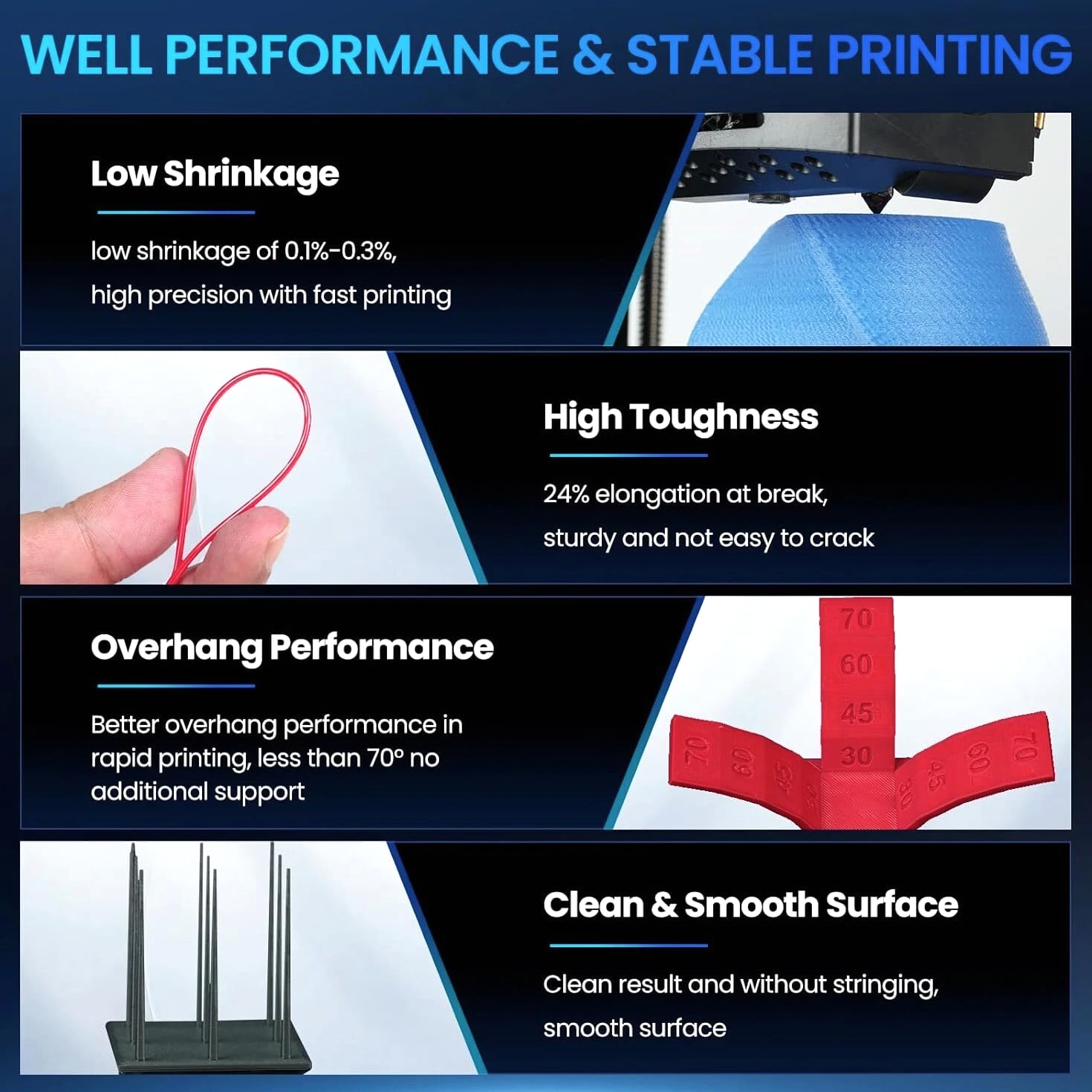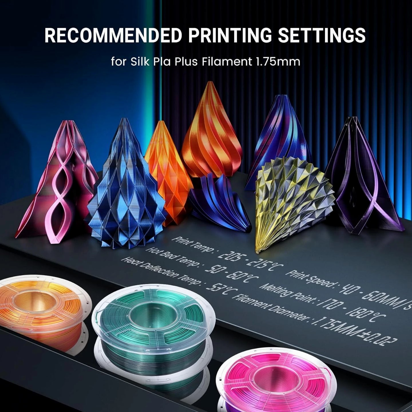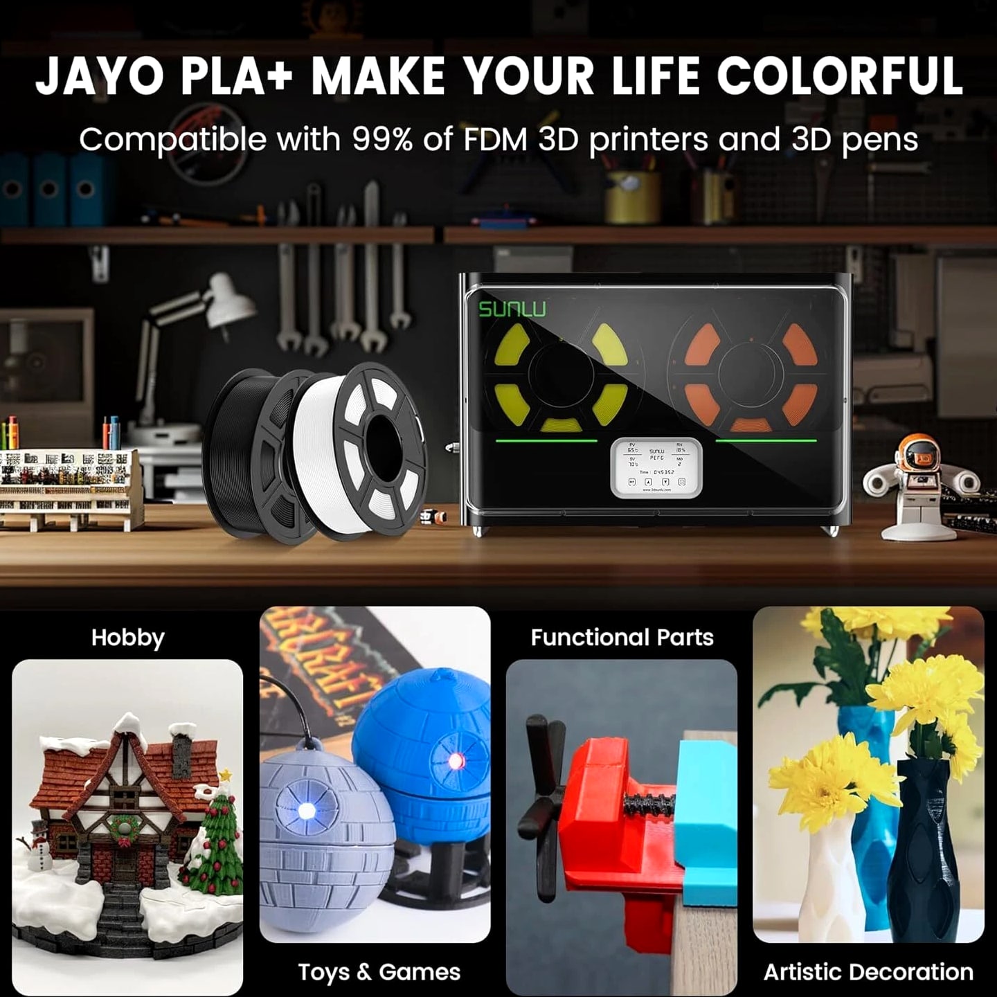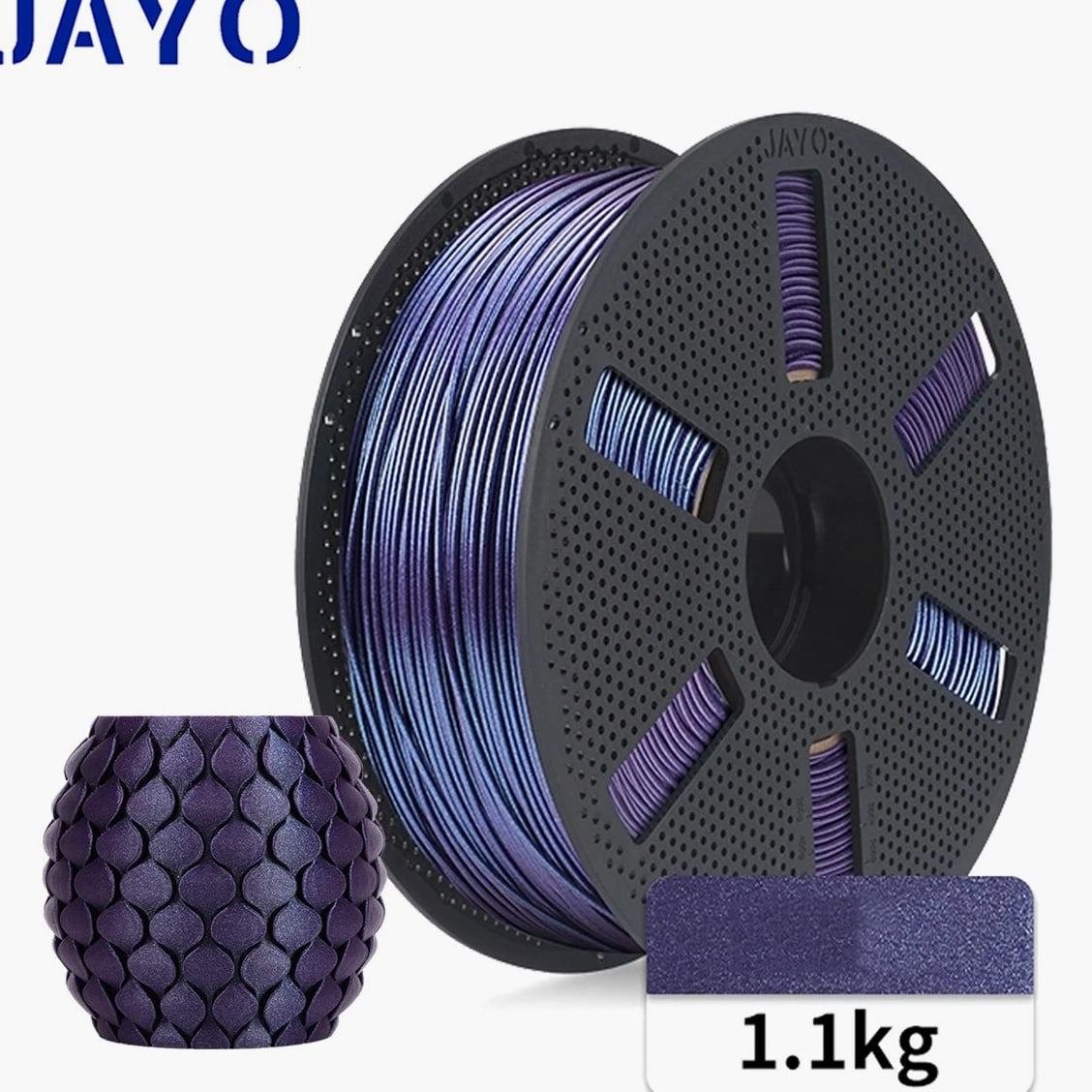 JAYO 1.75mm 3D Filament 🎁 Purchase 6, receive 4 complimentary discount Description: You must add 10 items or multiples of 10 to your basket! Combine payments. will automatically calculate the discount and in the case of 10 items, you will only pay for 6 of the 10 items. For example: If you buy 10 items, you only pay for 6. ✔️ If you buy 20 items, you only pay for 12. ✔️ The Following Filaments are 100% Neatly Wound -- PLA / PLA+ / PETG / SILK / PLA Meta / PLA Matte (ABS / TPU / PLA Marble is not included.) Filament Wire Diameter Tolerance Printing Temperature Print speed Heat Distortion Temperature Print Platform Temperature Net weight 1.75MM ±0.02mm 200-210℃ 50-100mm/s 53℃ 50-60℃ 1.1KG/Roll PLA+ ±0.02mm 195-205℃ 50-100mm/s 50-60℃ 1.1KG/Roll PLA+2.0 ±0.02mm 195-205℃ 50-100mm/s 50-60℃ 1.1KG/Roll PLA Meta ±0.02mm 185-195℃ 50-150mm/s 50-60℃ 1.1KG/Roll PLA Matte ±0.02mm 205-215℃ 50-100mm/s 50-60℃ 1.1KG/Roll PLA HighSpeed ±0.02mm / 190-210℃, 50-150mm/s 210-230℃,150-300mm/s 230-260℃,300-600mm/s 53℃ 50-60℃ 1.1KG/Roll PLA Glow ±0.02mm 195-215℃ 50-100mm/s 53℃ 50-60℃ 1.1KG/Roll PLA Carbon Fibre ±0.02mm 205-215℃ 40-60mm/s 53℃ 50-60℃ 1.1KG/Roll PLA Marble ±0.03mm 210-220℃ 40-60mm/s 53℃ 50-60℃ 1.1KG/Roll WOOD ±0.03mm 195-215℃ 40-60mm/s 53℃ 60-70℃ 1.1KG/Roll PETG ±0.02mm 230-240℃ 40-60mm/s 63℃ 60-70℃ 1.1KG/Roll SILK PLA+ ±0.02mm 205-215℃ 40-60mm/s 53℃ 50-60℃ 1.1KG/Roll TPU(95A) ±0.03mm 195-205℃ Proximal Extrusion:40mm/s Remote Extrusion:20mm/s 52℃ 50-60℃ 0.5KG/Roll TPU-SILK(98A) ±0.03mm 210-220℃ Proximal Extrusion:50mm/s Remote Extrusion:30mm/s 131℃ 50-60℃ 1.1KG/Roll ABS ±0.03mm 250-260℃ 40-60mm/s 84℃ 80-100℃ 1KG/Roll 0.65KG/Roll Easy ABS ±0.03mm 225-235℃ 40-60mm/s 57.9℃ 60-70℃ 1KG/Roll 0.65KG/Roll Exceptional precision JAYO 3D filaments feature tight tolerances and premium quality standards ensuring your 3D printers operate smoothly with excellent outcomes.