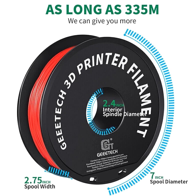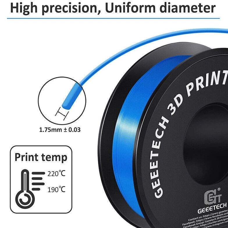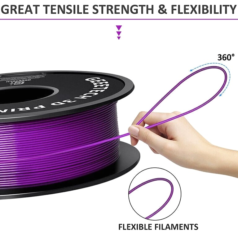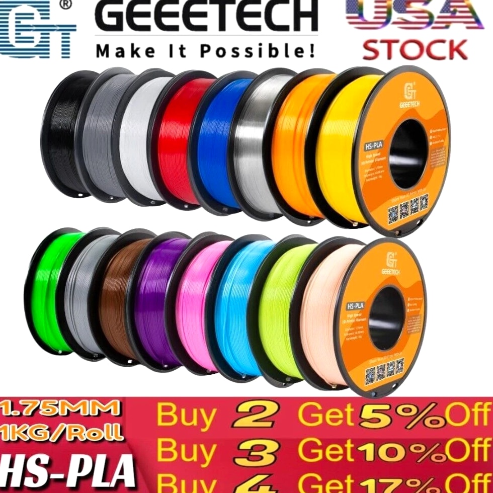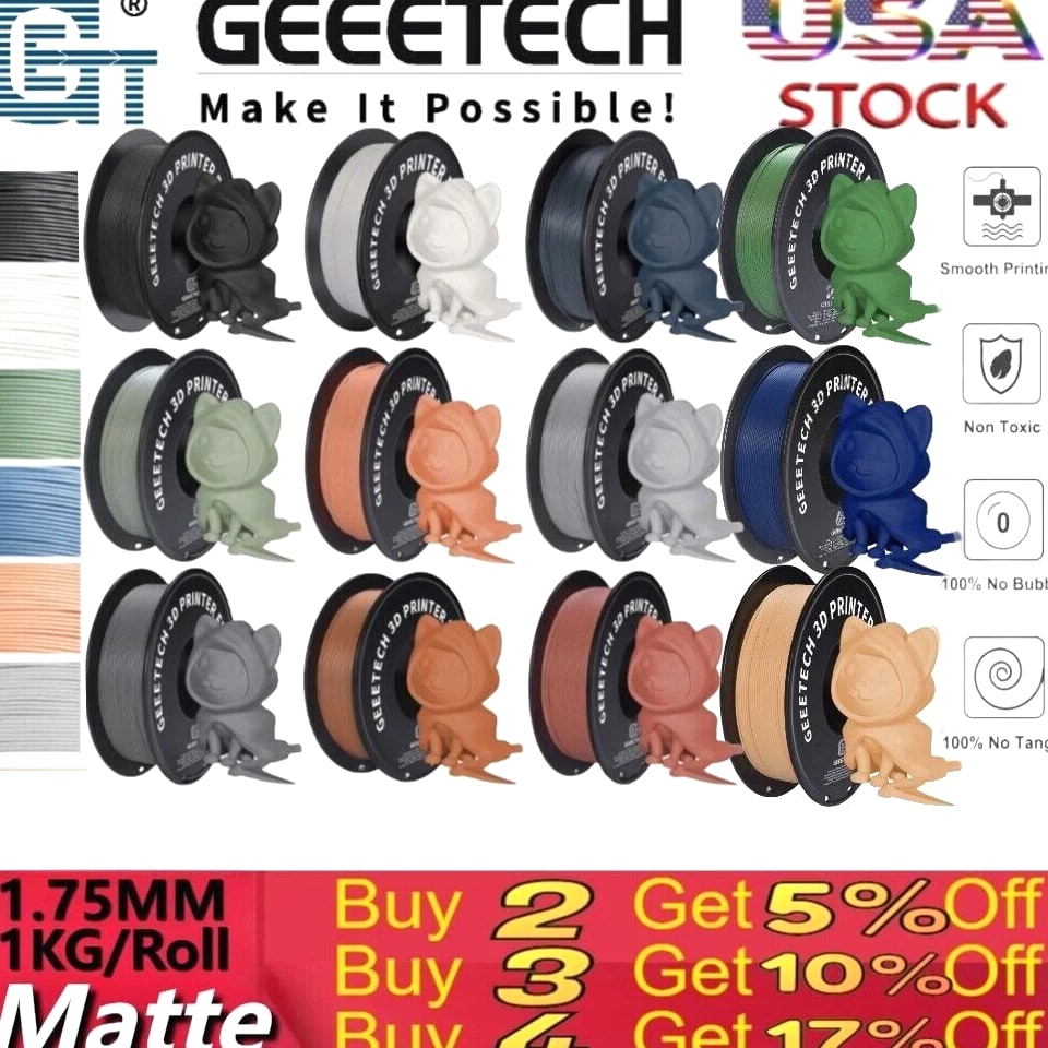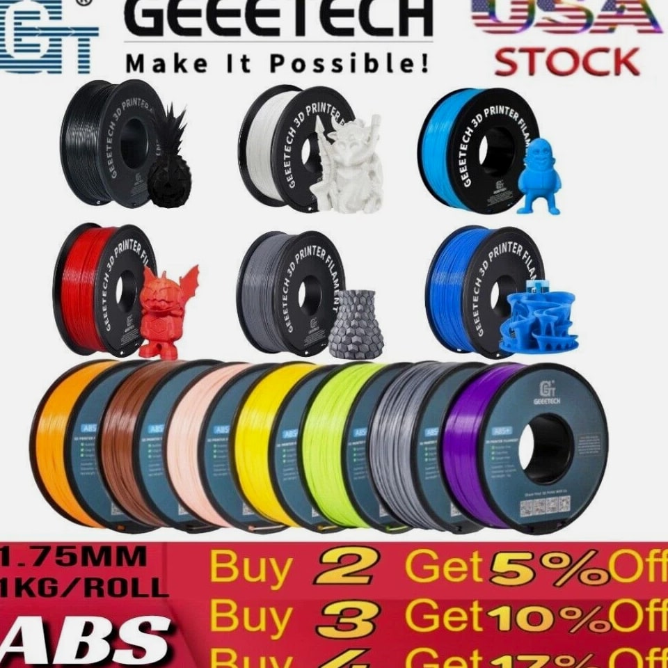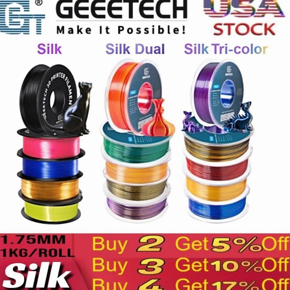 HOT SALE! GEEETECH 3D Printer Filament PLA/ABS+/PETG/TPU/Resin 1.75MM 1KG/Roll; Multiple Colors About this item Specification: Net weight: 1 kg Color: Available in Your Choice Material: PLA/ABS/PETG/TPU Filament diameter: 1.75 mm ( +/- 0.03 mm) Regular PLA 【Dimensional Accuracy & Consistency】- GEETECH PLA maintains strict tolerances. Diameter 1.75mm, dimensional accuracy +/- 0.03mm without exaggeration. It harmonizes perfectly with all standard 1.75mm FDM 3D printers. 【1kg (2.2lbs) Spool】Pack of 1 1kg/(2.2lbs) . Spool size: Φ200mm/7.9" flange, Φ56mm/2.2" hub hole, 64mm/2.5" width. Reel is compatible with most modern printers, Comgrow, Geeetech, Longer, LABISTS, ANYCUBIC, etc. 【Easy-to-Use, Clog-Free, Bubble-Free】- Recommended extrusion nozzle temperature 185°C - 215°C, hot bed 25°C - 60°C. Works perfectly with all standard 1.75mm FDM 3D printers. 【Vacuum Packing】- Vacuum sealed with desiccant to maintain minimal moisture content. Please keep dry and dust-free after opening the sealed package to prevent brittleness or nozzle jamming. Note: an additional sealed bag is included for filament storage. Silk PLA 【Silky Shiny Color】The distinctive color of PLA Silk Filament delivers arts & crafts and 3D Projects with a Smooth Shiny Silver Surface providing eye-catching, glossy prints. It's ideal for printing decorations or gifts for various festivals and cosplay events. 【High Quality】This filament is Anti-warping, precise, bubble-free, jam-resistant and has no drawing. Recommended printing temp 200-230°C (392-446°F), bed temp 40-60°C (104-140℉). 【High Compatibility】This filament is universally designed and compatible with 3D Printers using 1.75mm diameter filament, with a dimensional accuracy of +/- 0.03mm. 【Vacuum sealed packaging】 This filament is packed in a sealed vacuum bag with a desiccant bag to maintain dryness and preserve high performance long-term. Luminous PLA Filament: 【An Impressive Luminous PLA Filament】If you like your prints to be shiny and bright, Geeetech features