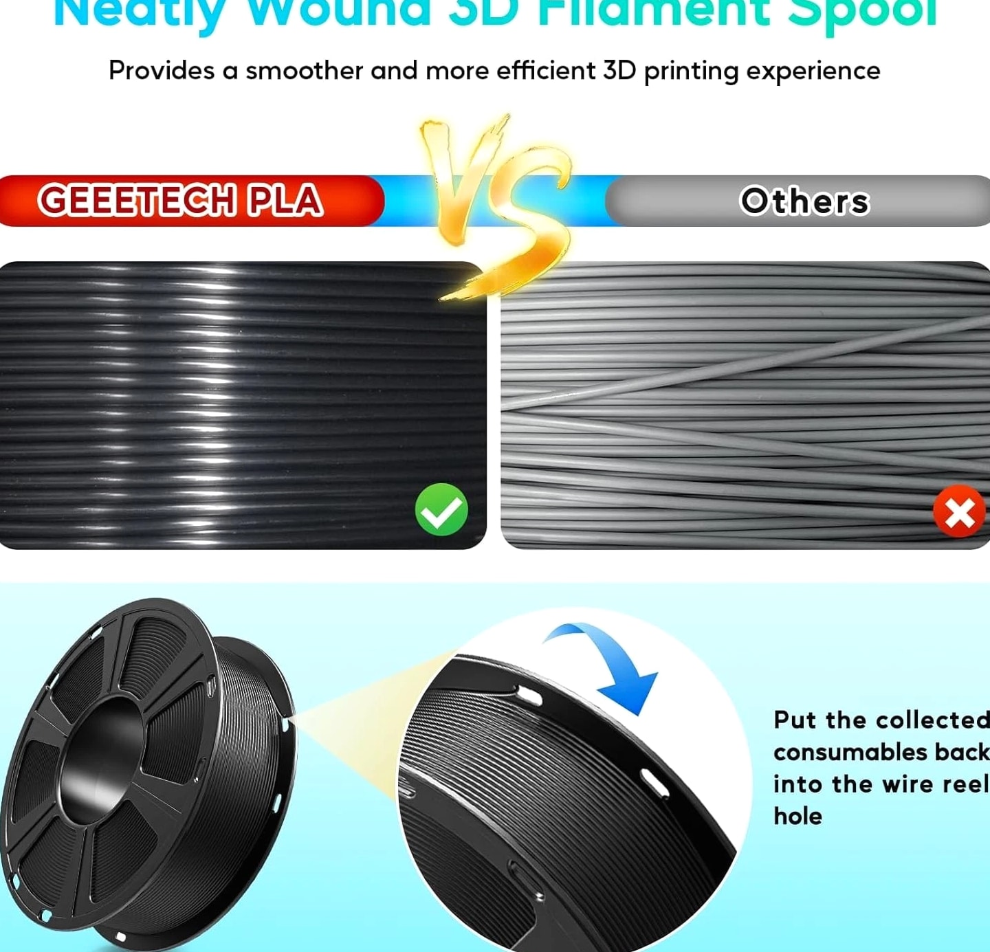 【Buy 5 Get 5 Free!Add 10】GEEETECH 3D Printer Filament 1KG PLA ABS+ PETG TPU ASA