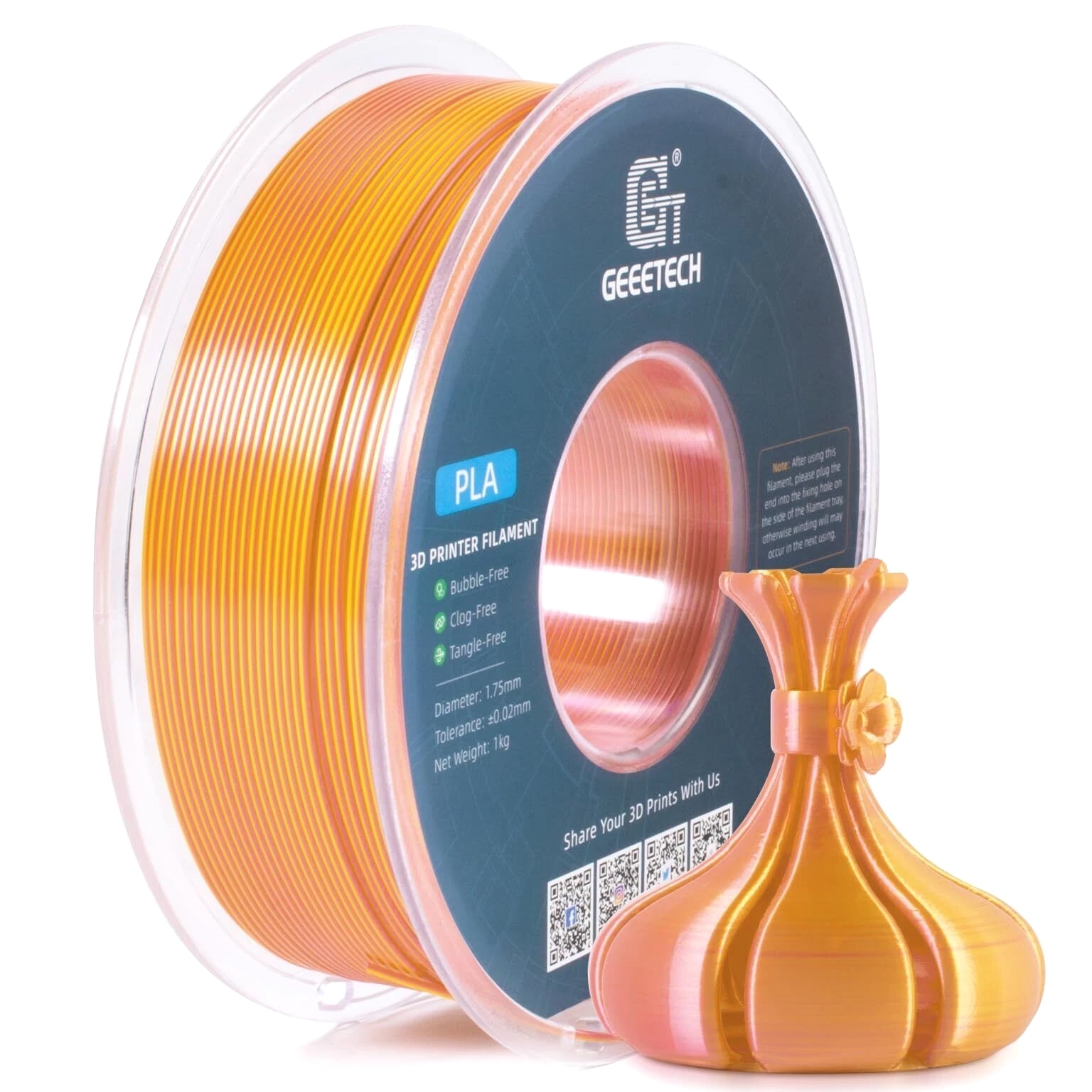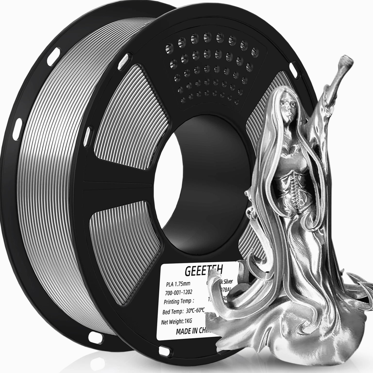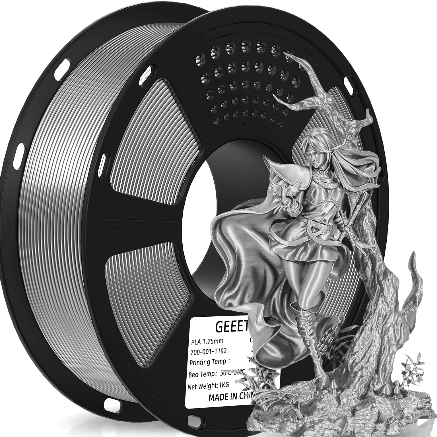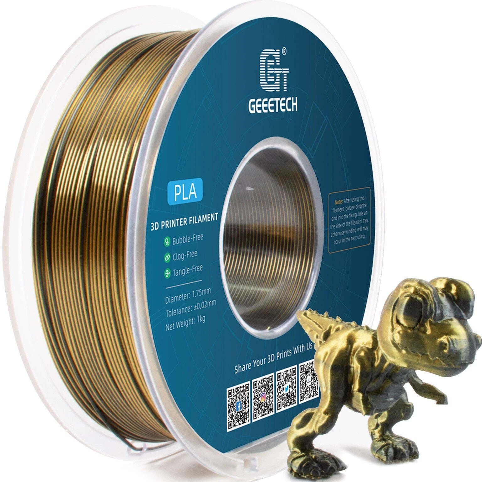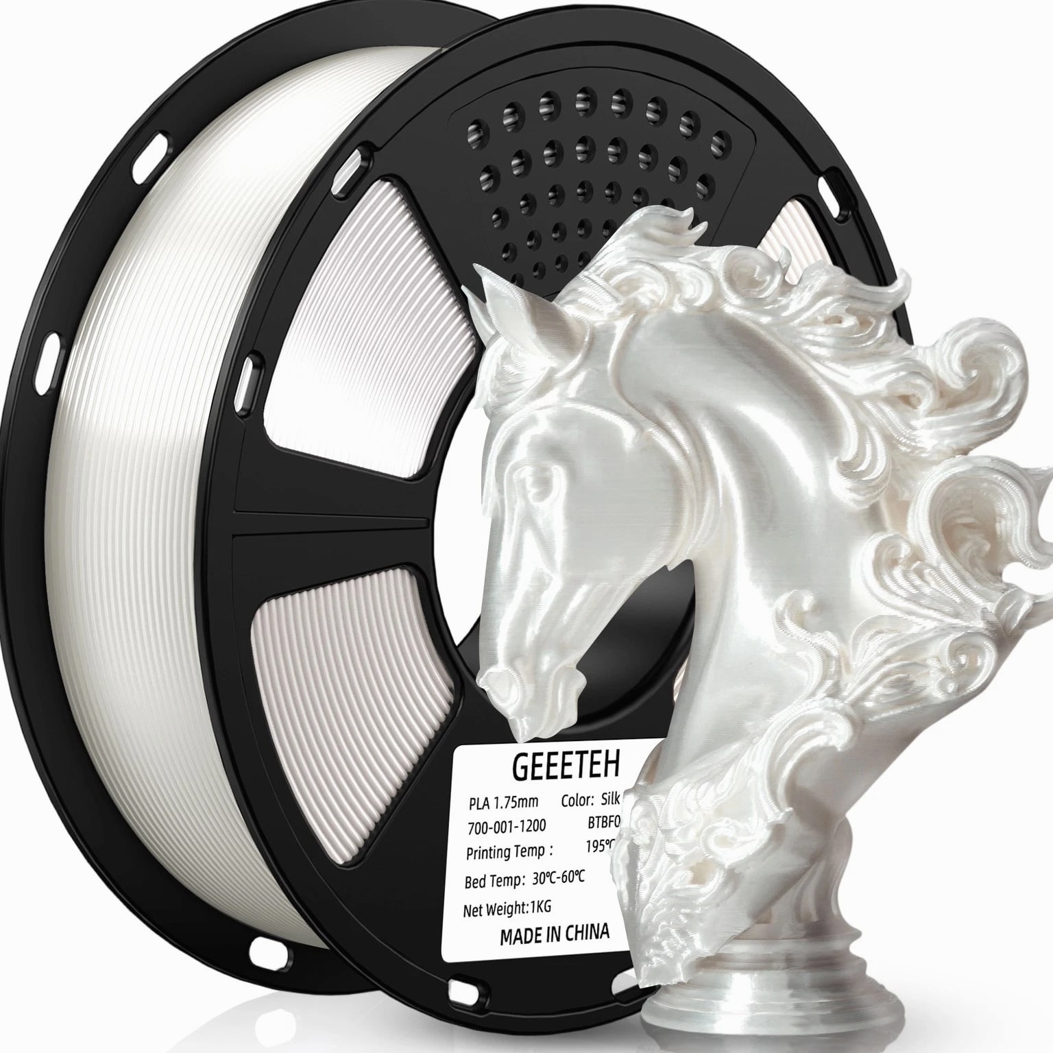 HOT SALE! GEEETECH 3D Printer Filament PLA/ABS+/PETG/TPU/Resin 1.75MM 1KG/Roll Multiple Colors About this item Specification: Net weight: 1 kg Color: Available in Your Choice Material: PLA/ABS/PETG/TPU Filament diameter: 1.75 mm ( +/- 0.03 mm) Regular PLA 【Dimensional Accuracy & Consistency】- GEETECH PLA maintains strict tolerances. Diameter 1.75mm, dimensional accuracy +/- 0.03mm without exaggeration. It harmonizes perfectly with all standard 1.75mm FDM 3D printers. 【1kg (2.2lbs) Spool】Pack of 1 1kg/(2.2lbs) . Spool size: Φ200mm/7.9" flange, Φ56mm/2.2" hub hole, 64mm/2.5" width. Reel is compatible with most modern printers, Comgrow, Geeetech, Longer, LABISTS, ANYCUBIC, etc. 【Easy-to-Use, Clog-Free, Bubble-Free】- Recommended extrusion nozzle temperature 185°C - 215°C, hot bed 25°C - 60°C. Works perfectly with all standard 1.75mm FDM 3D printers. 【Vacuum Packing】- Vacuum sealed with desiccant to maintain minimal moisture content. Please keep dry and dust-free after opening the sealed package to prevent brittleness or nozzle jamming. Note: an additional sealed bag is included for filament storage. Silk PLA 【Silky Shiny Color】The distinctive color of PLA Silk Filament delivers arts & crafts and 3D Projects with a Smooth Shiny Silver Surface providing eye-catching, glossy prints. It's ideal for printing decorations or gifts for various festivals and cosplay events. 【High Quality】This filament is Anti-warping, precise, bubble-free, jam-resistant, and has no stringing. Recommended printing temp 200-230°C (392-446°F), bed temp 40-60°C (104-140℉). 【High Compatibility】This filament is universally designed and compatible with 3D Printers using 1.75mm diameter filament, with a dimensional accuracy of +/- 0.03mm. 【Vacuum sealed packaging】 This filament is packed in a sealed vacuum bag with a desiccant bag to maintain dryness and preserve high performance long-term. Luminous PLA Filament: 【An Impressive Luminous PLA Filament】If you like your prints to be shiny and bright, Geeetech