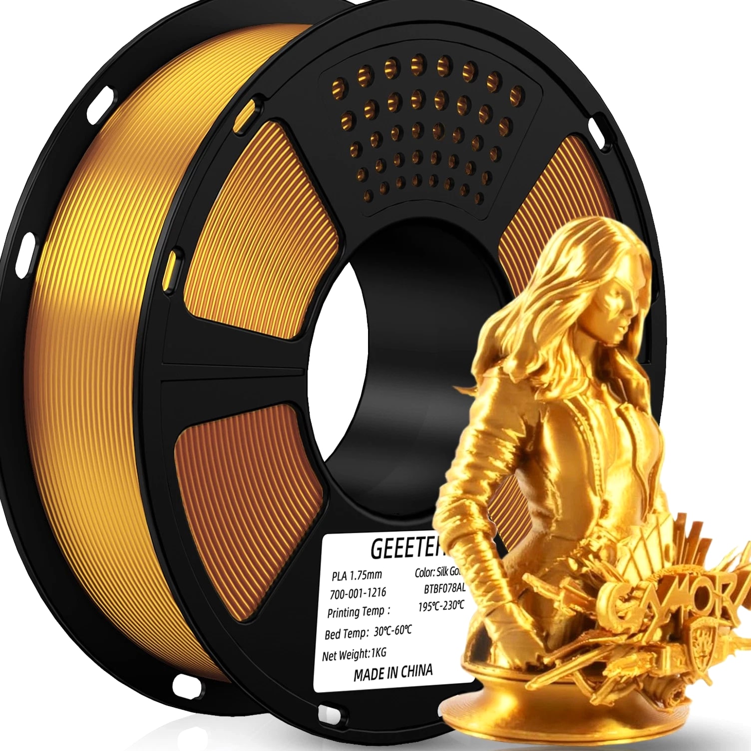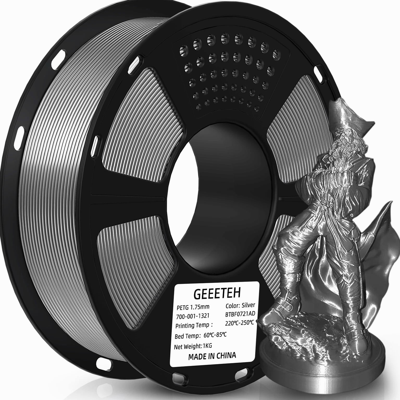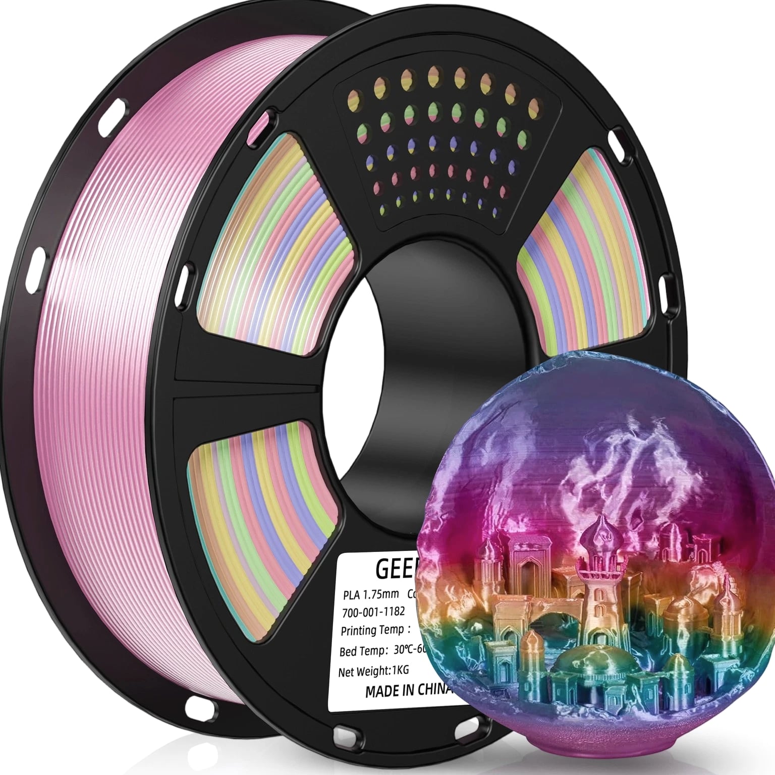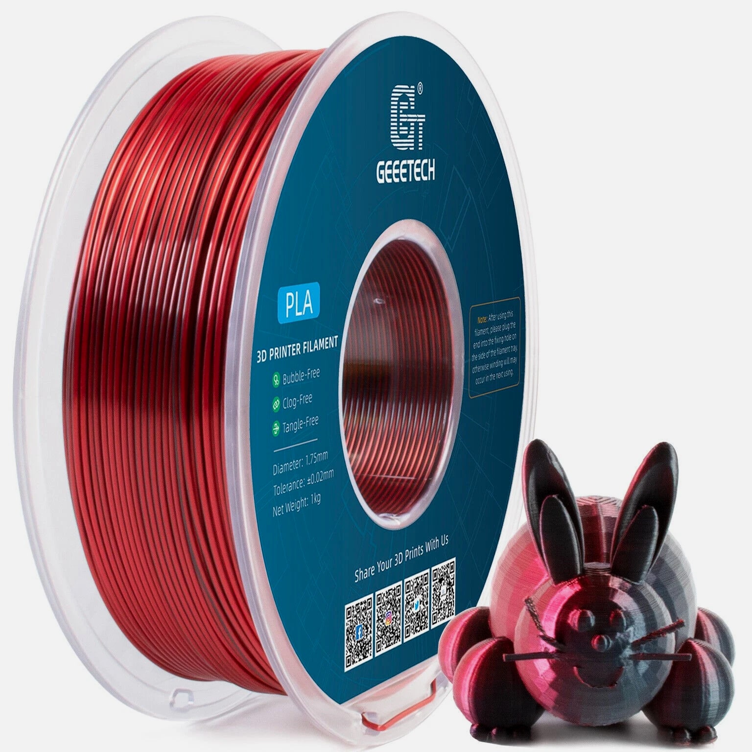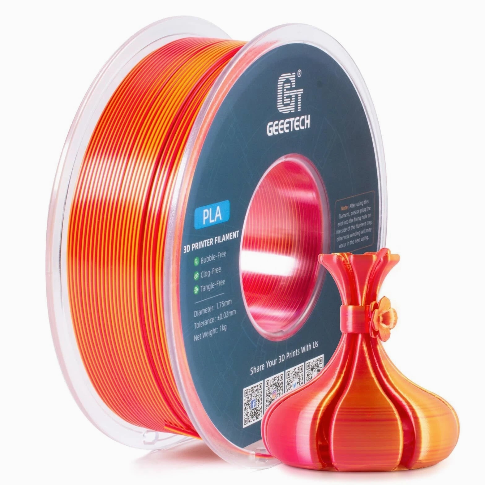 HOT SALE! GEEETECH 3D Printer Filament PLA/ABS+/PETG/TPU/Resin 1.75MM 1KG/Roll Multiple Colors About this item Specification: Net weight: 1 kg Color: Available in Your Choice Material: PLA/ABS/PETG/TPU Filament diameter: 1.75 mm ( +/- 0.03 mm) Regular PLA 【Dimensional Accuracy & Consistency】- GEETECH PLA maintains strict tolerances. Diameter 1.75mm, dimensional accuracy +/- 0.03mm without exaggeration. It harmonizes perfectly with all standard 1.75mm FDM 3D printers. 【1kg (2.2lbs) Spool】Pack of 1 1kg/(2.2lbs) . Spool size: Φ200mm/7.9" flange, Φ56mm/2.2" hub hole, 64mm/2.5" width. Reel is compatible with most modern printers, Comgrow, Geeetech, Longer, LABISTS, ANYCUBIC, etc. 【Easy-to-Use, Clog-Free, Bubble-Free】- Recommended extrusion nozzle temperature 185°C - 215°C, hot bed 25°C - 60°C. Works perfectly with all standard 1.75mm FDM 3D printers. 【Vacuum Packing】- Vacuum sealed with desiccant to maintain minimal moisture content. Please keep dry and dust-free after opening the sealed package to prevent brittleness or nozzle jamming. Note: an additional sealed bag is included for filament storage. Silk PLA 【Silky Shiny Color】The distinctive color of PLA Silk Filament delivers arts & crafts and 3D Projects with a Smooth Shiny Silver Surface providing eye-catching, glossy prints. It's ideal for printing decorations or gifts for various festivals and cosplay events. 【High Quality】This filament is Anti-warping, precise, bubble-free, jam-resistant, and has no stringing. Recommended printing temp 200-230°C (392-446°F), bed temp 40-60°C (104-140℉). 【High Compatibility】This filament is universally designed and compatible with 3D Printers using 1.75mm diameter filament, with a dimensional accuracy of +/- 0.03mm. 【Vacuum sealed packaging】 This filament is packed in a sealed vacuum bag with a desiccant bag to maintain dryness and preserve high performance long-term. Luminous PLA Filament: 【An Impressive Luminous PLA Filament】If you like your prints to be shiny and bright, Geeetech