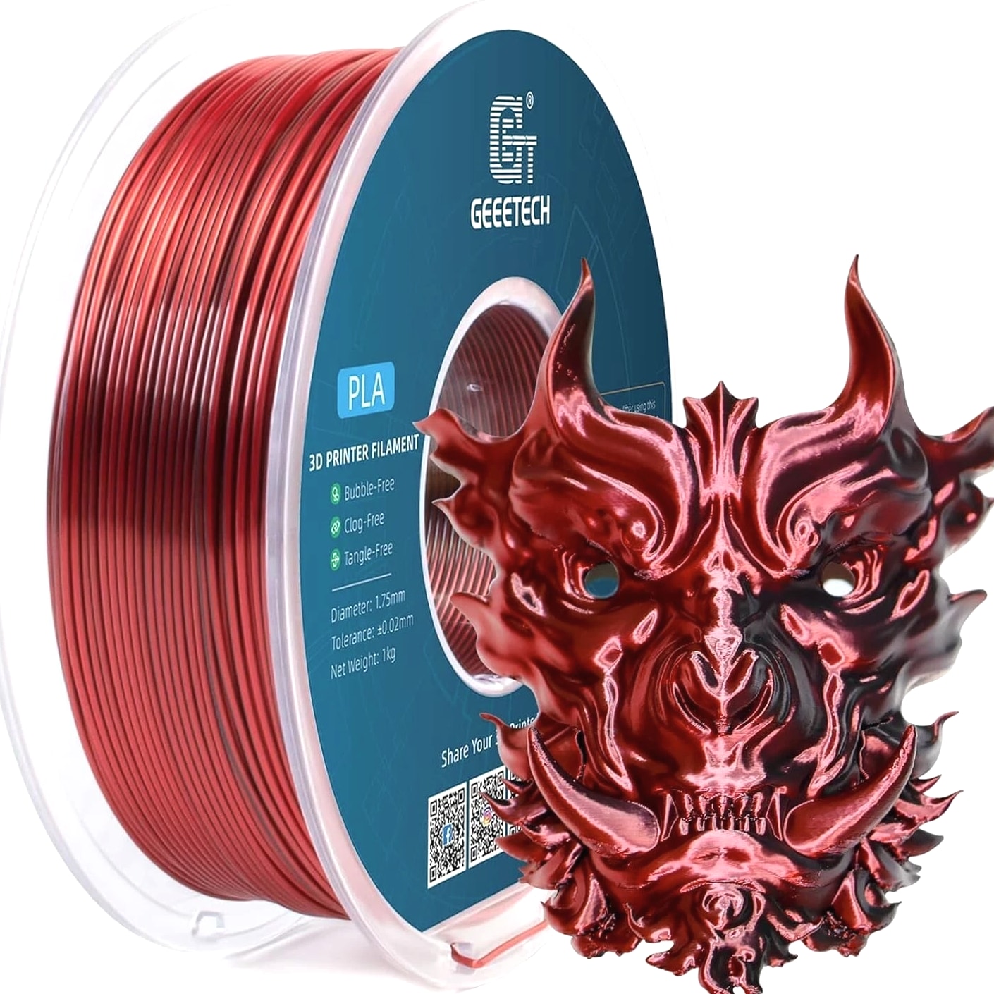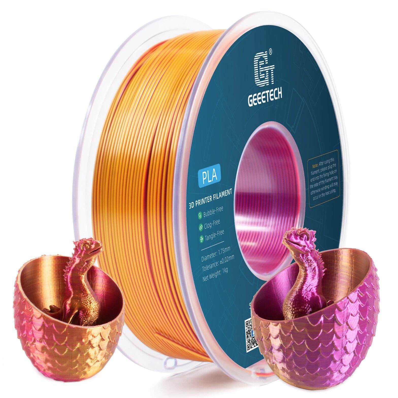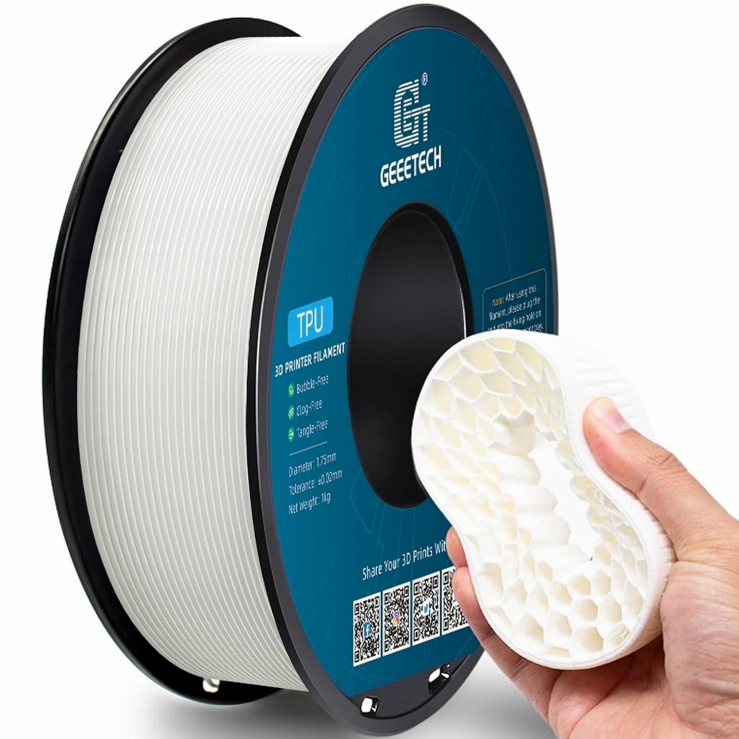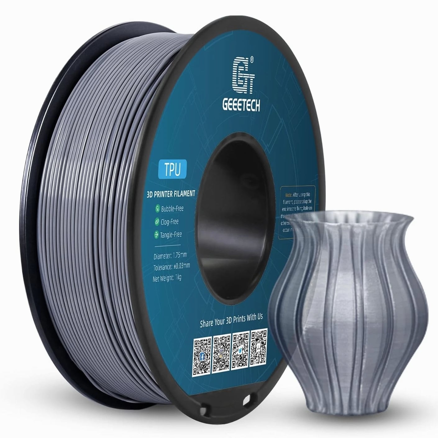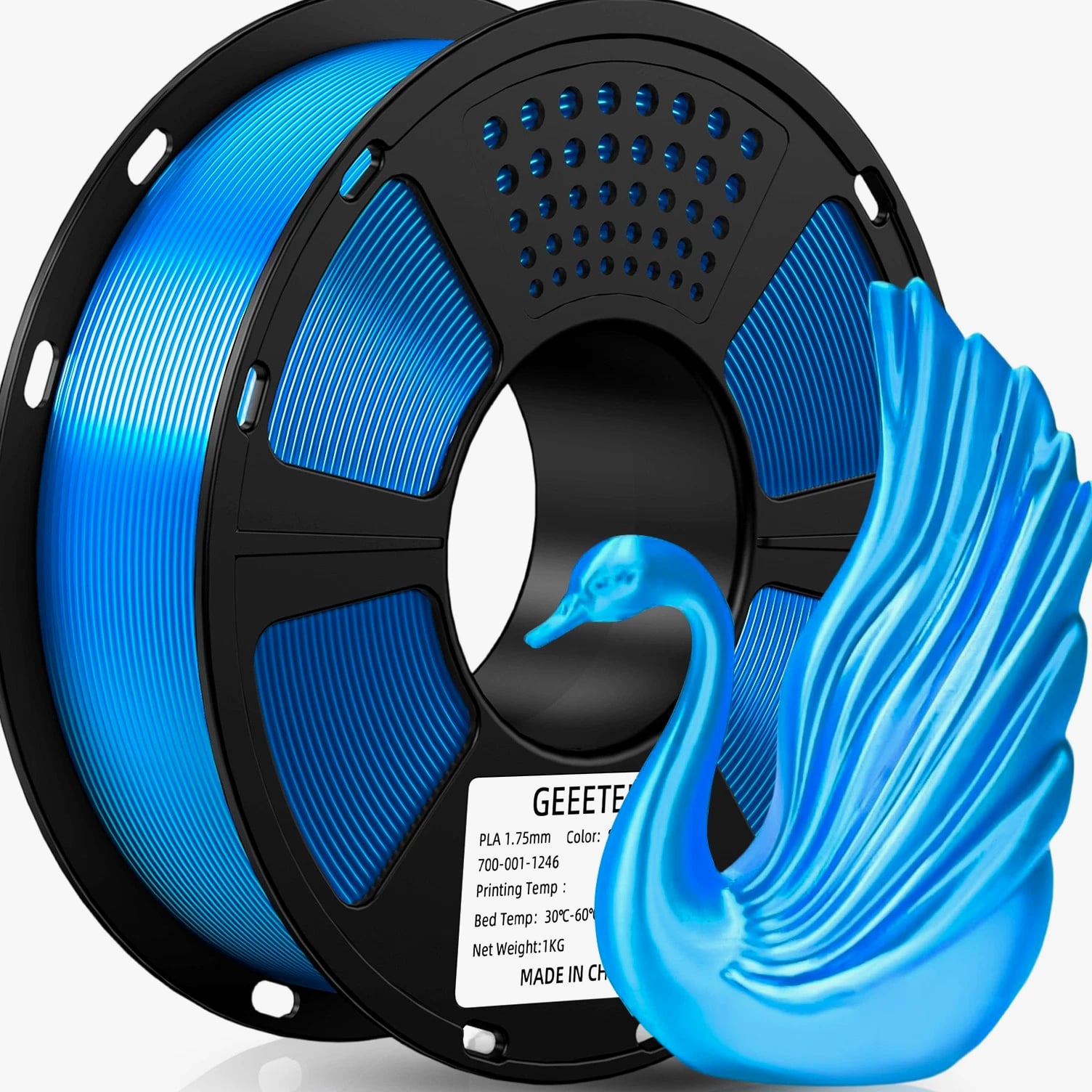 HOT SALE! GEEETECH 3D Printer Filament PLA/ABS+/PETG/TPU/Resin 1.75MM 1KG/Roll Multiple Colors About this item Specification: Net weight: 1 kg Color: Available in Your Choice Material: PLA/ABS/PETG/TPU Filament diameter: 1.75 mm ( +/- 0.03 mm) Regular PLA 【Dimensional Accuracy & Consistency】- GEETECH PLA maintains strict tolerances. Diameter 1.75mm, dimensional accuracy +/- 0.03mm without exaggeration. It harmonizes perfectly with all standard 1.75mm FDM 3D printers. 【1kg (2.2lbs) Spool】Pack of 1 1kg/(2.2lbs) . Spool size: Φ200mm/7.9" flange, Φ56mm/2.2" hub hole, 64mm/2.5" width. Reel is compatible with most modern printers, Comgrow, Geeetech, Longer, LABISTS, ANYCUBIC, etc. 【Easy-to-Use, Clog-Free, Bubble-Free】- Recommended extrusion nozzle temperature 185°C - 215°C, hot bed 25°C - 60°C. Works perfectly with all standard 1.75mm FDM 3D printers. 【Vacuum Packing】- Vacuum sealed with desiccant to maintain minimal moisture content. Please keep dry and dust-free after opening the sealed package to prevent brittleness or nozzle jamming. Note: an additional sealed bag is included for filament storage. Silk PLA 【Silky Shiny Color】The distinctive color of PLA Silk Filament delivers arts & crafts and 3D Projects with a Smooth Shiny Silver Surface providing eye-catching, glossy prints. It's ideal for printing decorations or gifts for various festivals and cosplay events. 【High Quality】This filament is Anti-warping, precise, bubble-free, jam-resistant, and has no stringing. Recommended printing temp 200-230°C (392-446°F), bed temp 40-60°C (104-140℉). 【High Compatibility】This filament is universally designed and compatible with 3D Printers using 1.75mm diameter filament, with a dimensional accuracy of +/- 0.03mm. 【Vacuum sealed packaging】 This filament is packed in a sealed vacuum bag with a desiccant bag to maintain dryness and preserve high performance long-term. Luminous PLA Filament: 【An Impressive Luminous PLA Filament】If you like your prints to be shiny and bright, Geeetech