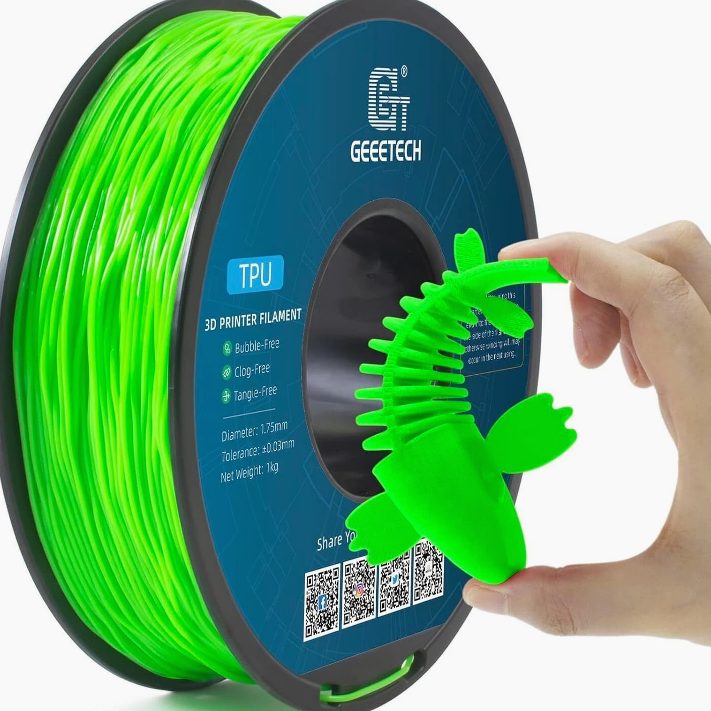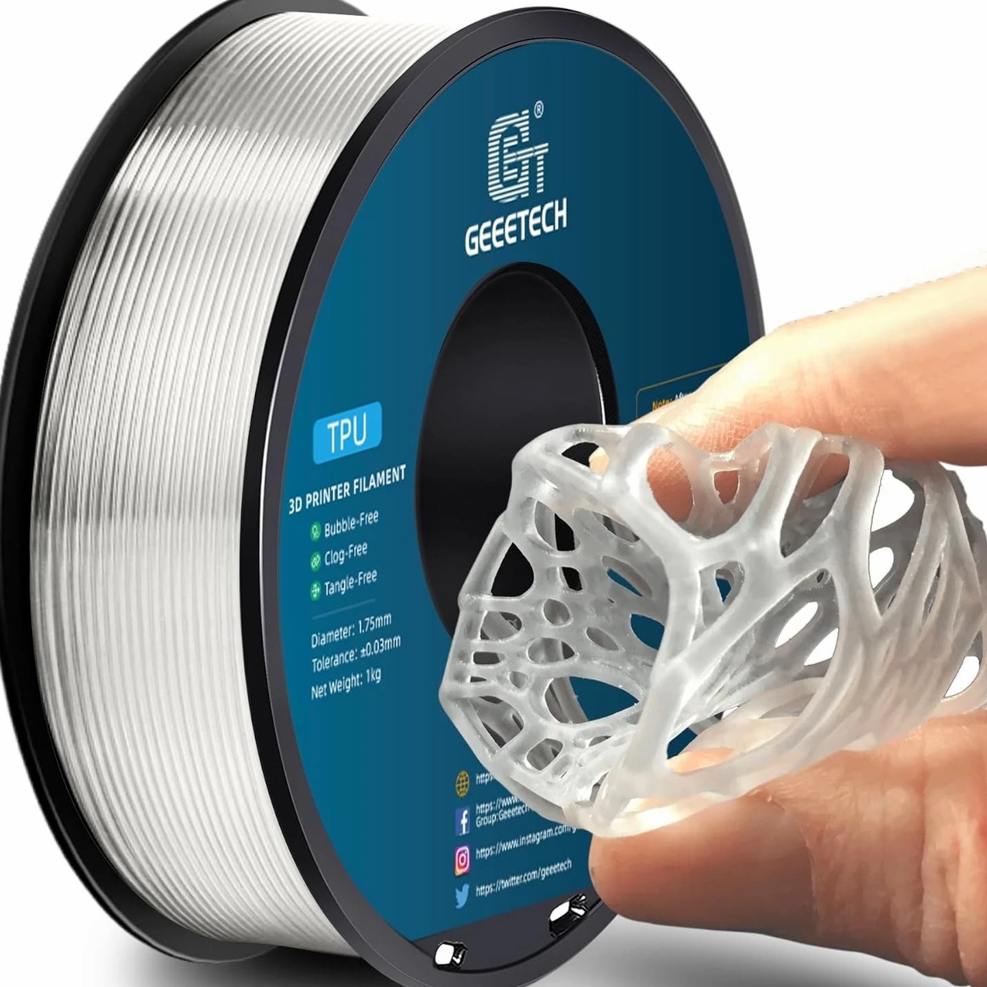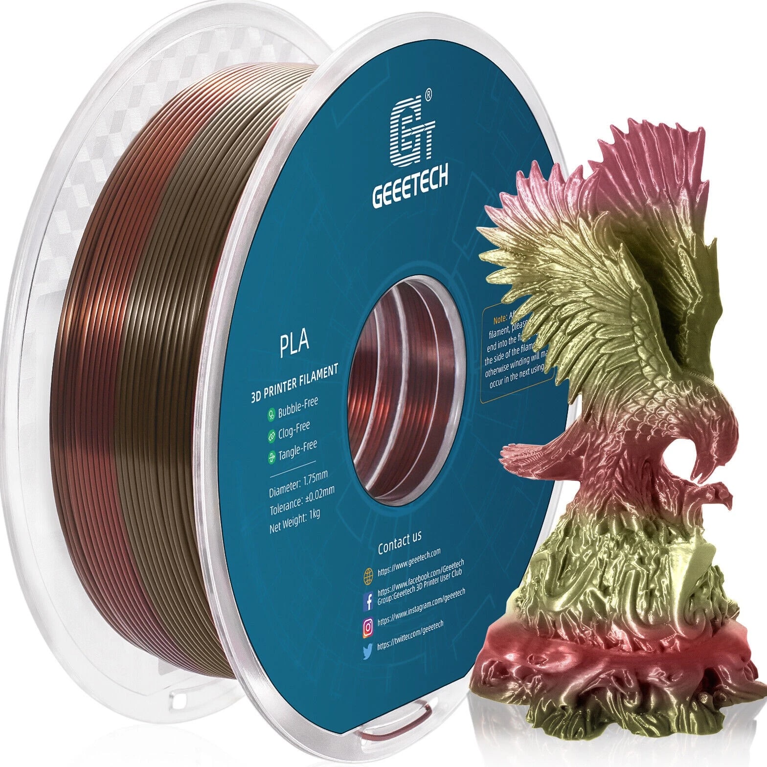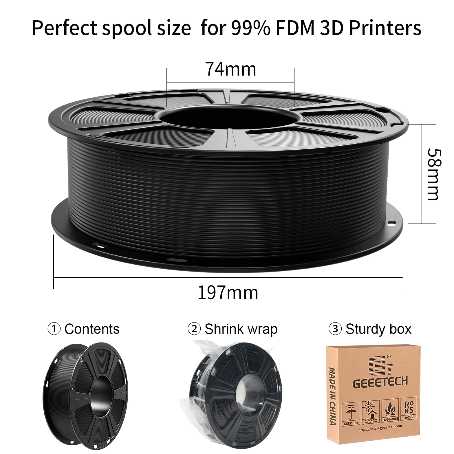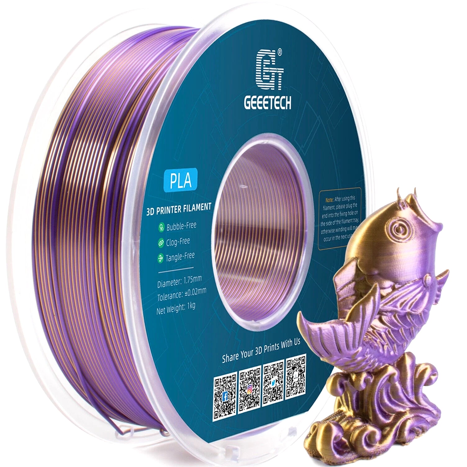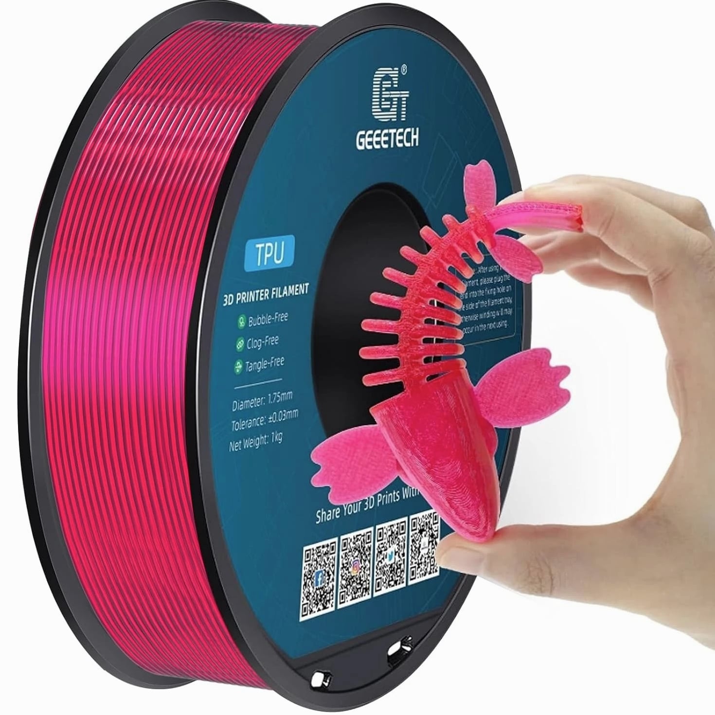 HOT SALE! GEEETECH 3D Printer Filament PLA/ABS+/PETG/TPU/Resin 1.75MM 1KG/Roll Multiple Colors About this item Specification: Net weight: 1 kg Color: Available in Your Choice Material: PLA/ABS/PETG/TPU Filament diameter: 1.75 mm ( +/- 0.03 mm) Regular PLA 【Dimensional Accuracy & Consistency】- GEETECH PLA maintains strict tolerances. Diameter 1.75mm, dimensional accuracy +/- 0.03mm without exaggeration. It harmonizes perfectly with all standard 1.75mm FDM 3D printers. 【1kg (2.2lbs) Spool】Pack of 1 1kg/(2.2lbs) . Spool size: Φ200mm/7.9" flange, Φ56mm/2.2" hub hole, 64mm/2.5" width. Reel is compatible with most modern printers, Comgrow, Geeetech, Longer, LABISTS, ANYCUBIC, etc. 【Easy-to-Use, Clog-Free, Bubble-Free】- Recommended extrusion nozzle temperature 185°C - 215°C, hot bed 25°C - 60°C. Works perfectly with all standard 1.75mm FDM 3D printers. 【Vacuum Packing】- Vacuum sealed with desiccant to maintain minimal moisture content. Please keep dry and dust-free after opening the sealed package to prevent brittleness or nozzle jamming. Note: an additional sealed bag is included for filament storage. Silk PLA 【Silky Shiny Color】The distinctive color of PLA Silk Filament delivers arts & crafts and 3D Projects with a Smooth Shiny Silver Surface providing eye-catching, glossy prints. It's ideal for printing decorations or gifts for various festivals and cosplay events. 【High Quality】This filament is Anti-warping, precise, bubble-free, jam-resistant, and has no stringing. Recommended printing temp 200-230°C (392-446°F), bed temp 40-60°C (104-140℉). 【High Compatibility】This filament is universally designed and compatible with 3D Printers using 1.75mm diameter filament, with a dimensional accuracy of +/- 0.03mm. 【Vacuum sealed packaging】 This filament is packed in a sealed vacuum bag with a desiccant bag to maintain dryness and preserve high performance long-term. Luminous PLA Filament: 【An Impressive Luminous PLA Filament】If you like your prints to be shiny and bright, Geeetech