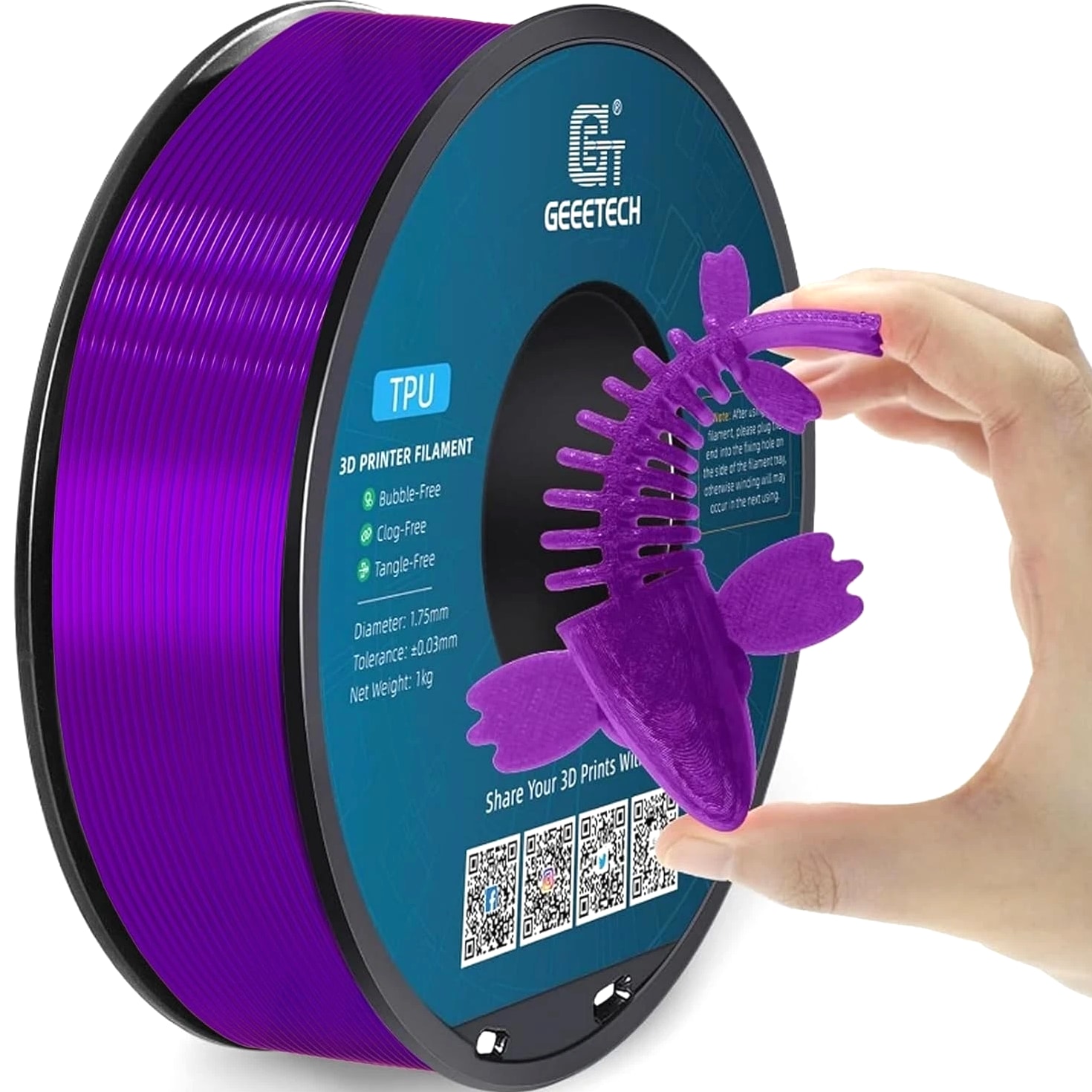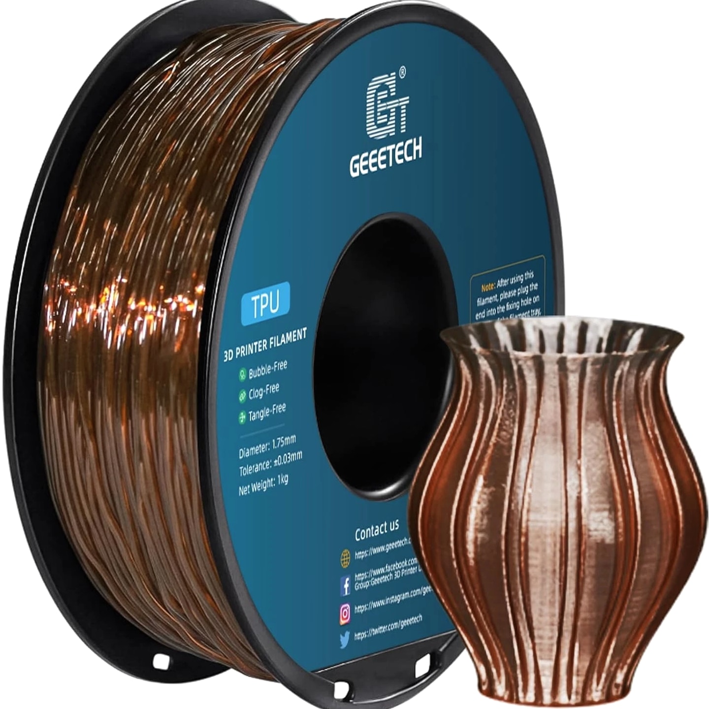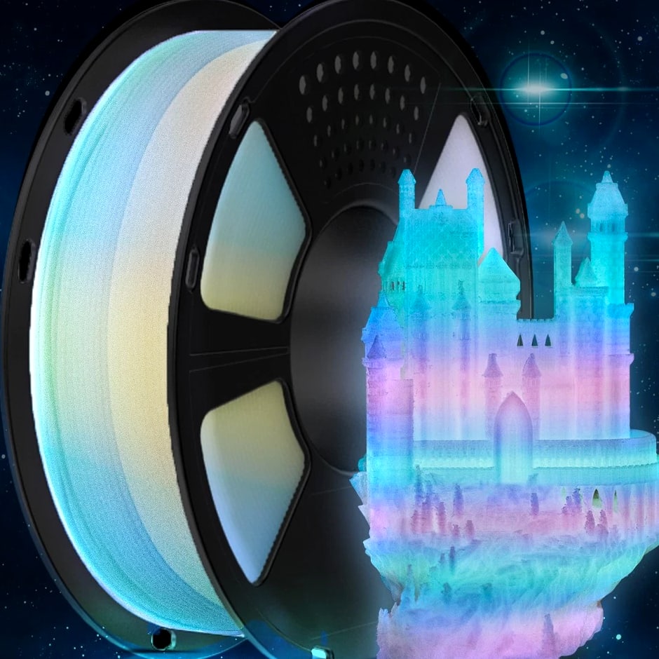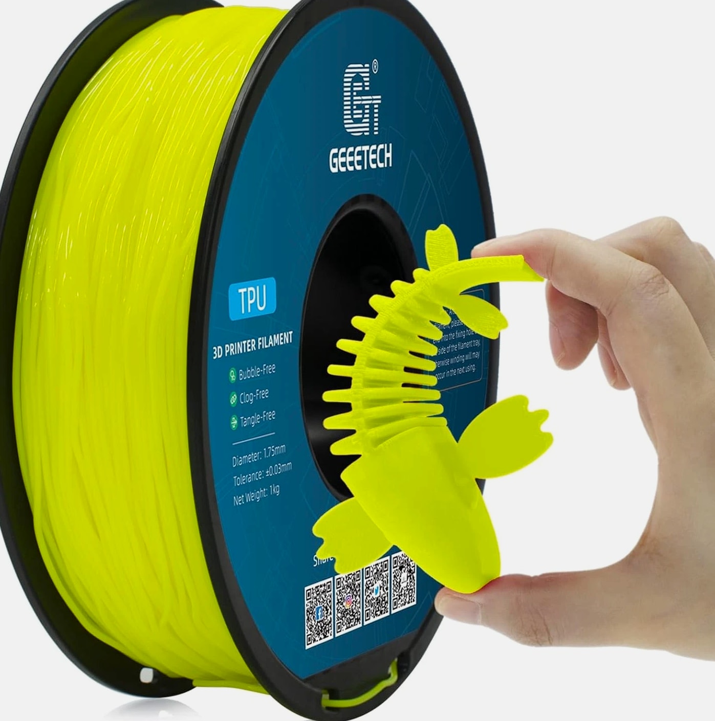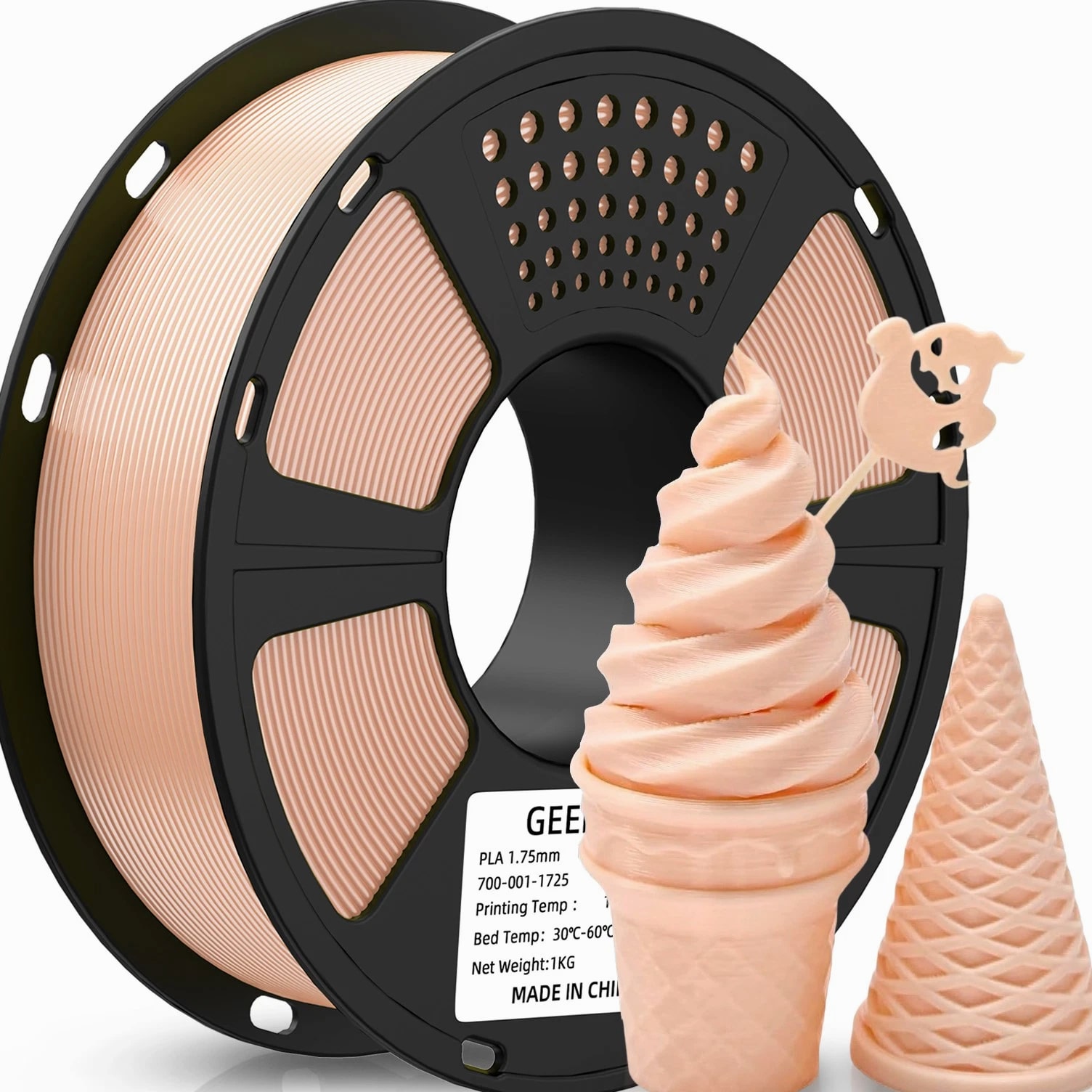HOT SALE! GEEETECH 3D Printer Filament PLA/ABS+/PETG/TPU/Resin 1.75MM 1KG/Roll Multiple Colors About this item Specification: Net weight: 1 kg Color: Available in Your Choice Material: PLA/ABS/PETG/TPU Filament diameter: 1.75 mm ( +/- 0.03 mm) Regular PLA 【Dimensional Accuracy & Consistency】- GEETECH PLA maintains strict tolerances. Diameter 1.75mm, dimensional accuracy +/- 0.03mm without exaggeration. It harmonizes perfectly with all standard 1.75mm FDM 3D printers. 【1kg (2.2lbs) Spool】Pack of 1 1kg/(2.2lbs) . Spool size: Φ200mm/7.9" flange, Φ56mm/2.2" hub hole, 64mm/2.5" width. Reel is compatible with most modern printers, Comgrow, Geeetech, Longer, LABISTS, ANYCUBIC, etc. 【Easy-to-Use, Clog-Free, Bubble-Free】- Recommended extrusion nozzle temperature 185°C - 215°C, hot bed 25°C - 60°C. Works perfectly with all standard 1.75mm FDM 3D printers. 【Vacuum Packing】- Vacuum sealed with desiccant to maintain minimal moisture content. Please keep dry and dust-free after opening the sealed package to prevent brittleness or nozzle jamming. Note: an additional sealed bag is included for filament storage. Silk PLA 【Silky Shiny Color】The distinctive color of PLA Silk Filament delivers arts & crafts and 3D Projects with a Smooth Shiny Silver Surface providing eye-catching, glossy prints. It's ideal for printing decorations or gifts for various festivals and cosplay events. 【High Quality】This filament is Anti-warping, precise, bubble-free, jam-resistant, and has no stringing. Recommended printing temp 200-230°C (392-446°F), bed temp 40-60°C (104-140℉). 【High Compatibility】This filament is universally designed and compatible with 3D Printers using 1.75mm diameter filament, with a dimensional accuracy of +/- 0.03mm. 【Vacuum sealed packaging】 This filament is packed in a sealed vacuum bag with a desiccant bag to maintain dryness and preserve high performance long-term. Luminous PLA Filament: 【An Impressive Luminous PLA Filament】If you like your prints to be shiny and bright, Geeetech
