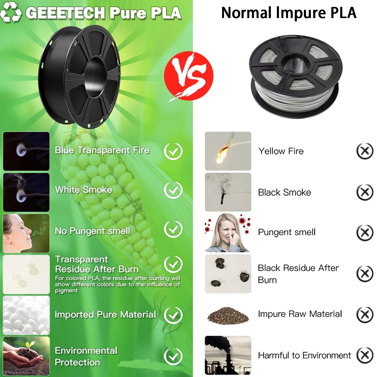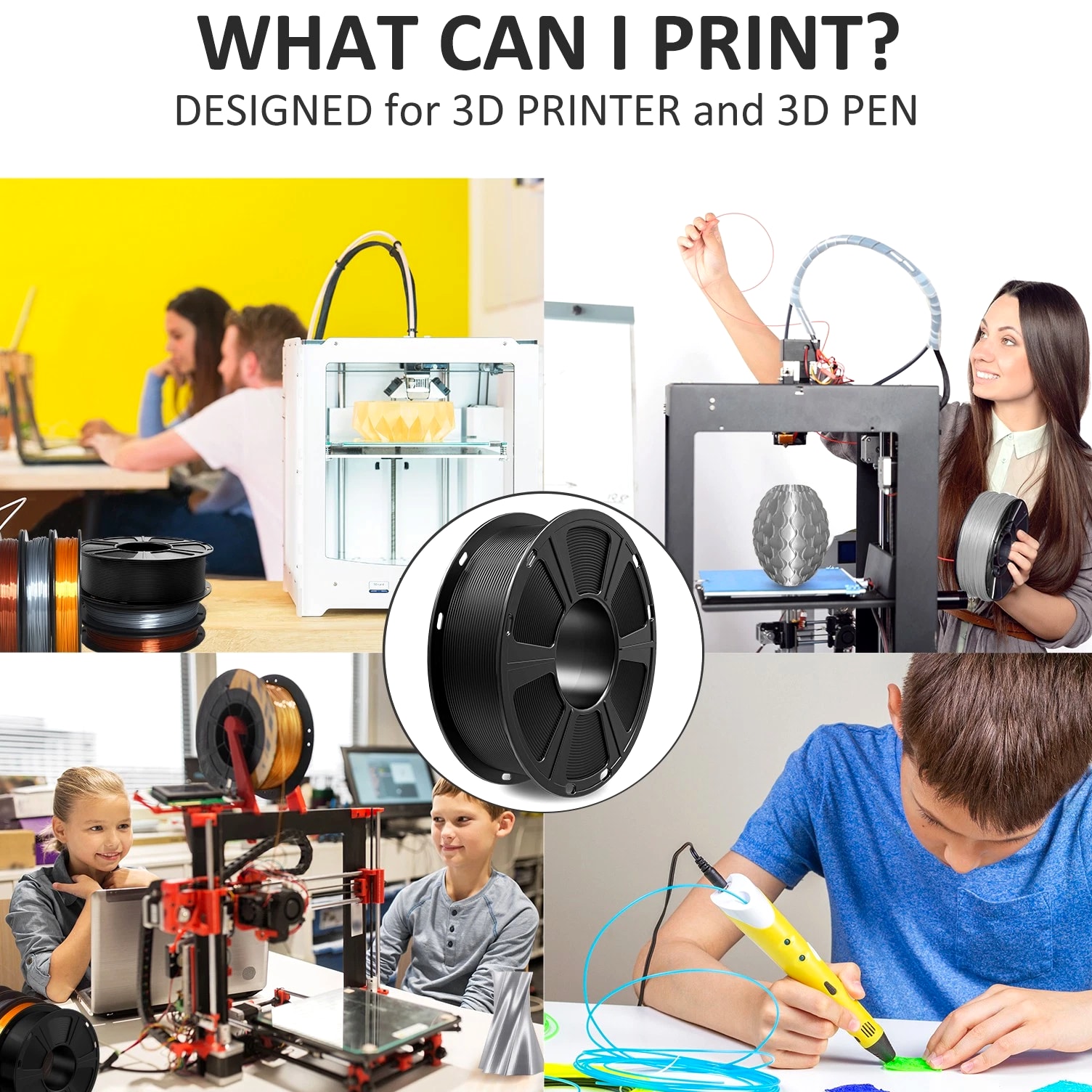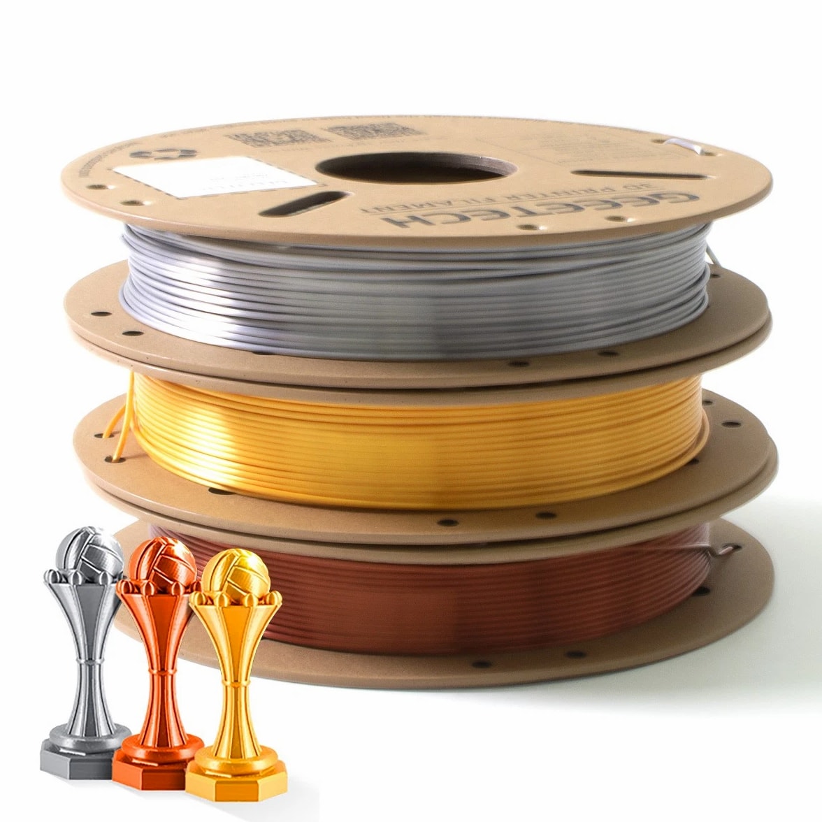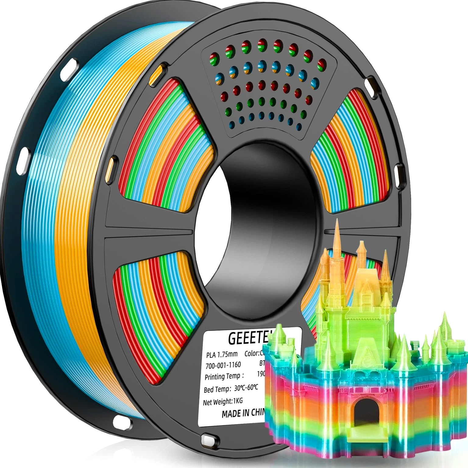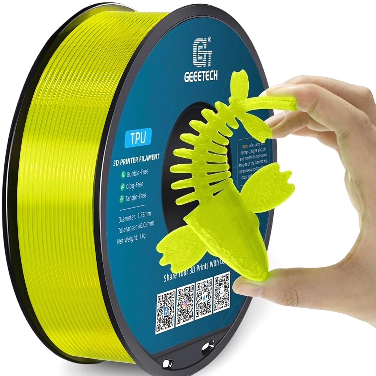 HOT SALE! GEEETECH 3D Printer Filament PLA/ABS+/PETG/TPU/Resin 1.75MM 1KG/Roll Multiple Colors About this item Specification: Net weight: 1 kg Color: Available in Your Choice Material: PLA/ABS/PETG/TPU Filament diameter: 1.75 mm ( +/- 0.03 mm) Regular PLA 【Dimensional Accuracy & Consistency】- GEETECH PLA maintains strict tolerances. Diameter 1.75mm, dimensional accuracy +/- 0.03mm without exaggeration. It harmonizes perfectly with all standard 1.75mm FDM 3D printers. 【1kg (2.2lbs) Spool】Pack of 1 1kg/(2.2lbs) . Spool size: Φ200mm/7.9" flange, Φ56mm/2.2" hub hole, 64mm/2.5" width. Reel is compatible with most modern printers, Comgrow, Geeetech, Longer, LABISTS, ANYCUBIC, etc. 【Easy-to-Use, Clog-Free, Bubble-Free】- Recommended extrusion nozzle temperature 185°C - 215°C, hot bed 25°C - 60°C. Works perfectly with all standard 1.75mm FDM 3D printers. 【Vacuum Packing】- Vacuum sealed with desiccant to maintain minimal moisture content. Please keep dry and dust-free after opening the sealed package to prevent brittleness or nozzle jamming. Note: an additional sealed bag is included for filament storage. Silk PLA 【Silky Shiny Color】The distinctive color of PLA Silk Filament delivers arts & crafts and 3D Projects with a Smooth Shiny Silver Surface providing eye-catching, glossy prints. It's ideal for printing decorations or gifts for various festivals and cosplay events. 【High Quality】This filament is Anti-warping, precise, bubble-free, jam-resistant, and has no stringing. Recommended printing temp 200-230°C (392-446°F), bed temp 40-60°C (104-140℉). 【High Compatibility】This filament is universally designed and compatible with 3D Printers using 1.75mm diameter filament, with a dimensional accuracy of +/- 0.03mm. 【Vacuum sealed packaging】 This filament is packed in a sealed vacuum bag with a desiccant bag to maintain dryness and preserve high performance long-term. Luminous PLA Filament: 【An Impressive Luminous PLA Filament】If you like your prints to be shiny and bright, Geeetech