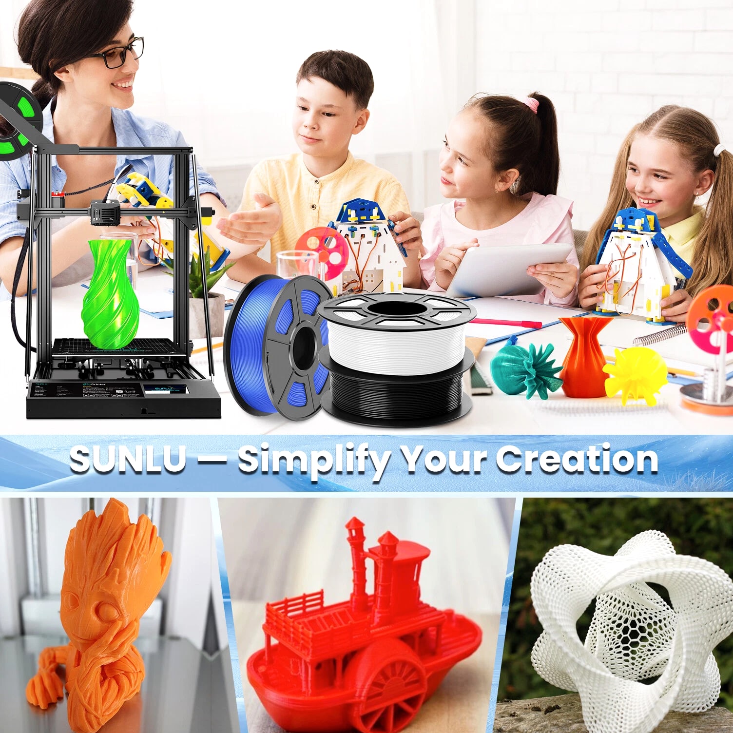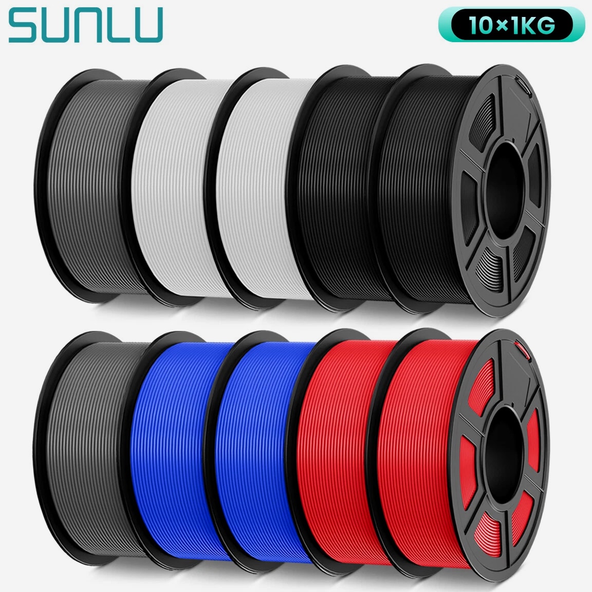 SUNLU 10×1KG 1.75MM PETG Filament; High Toughness 3D Printer Consumables