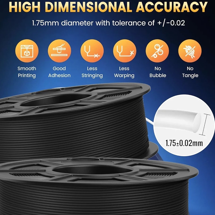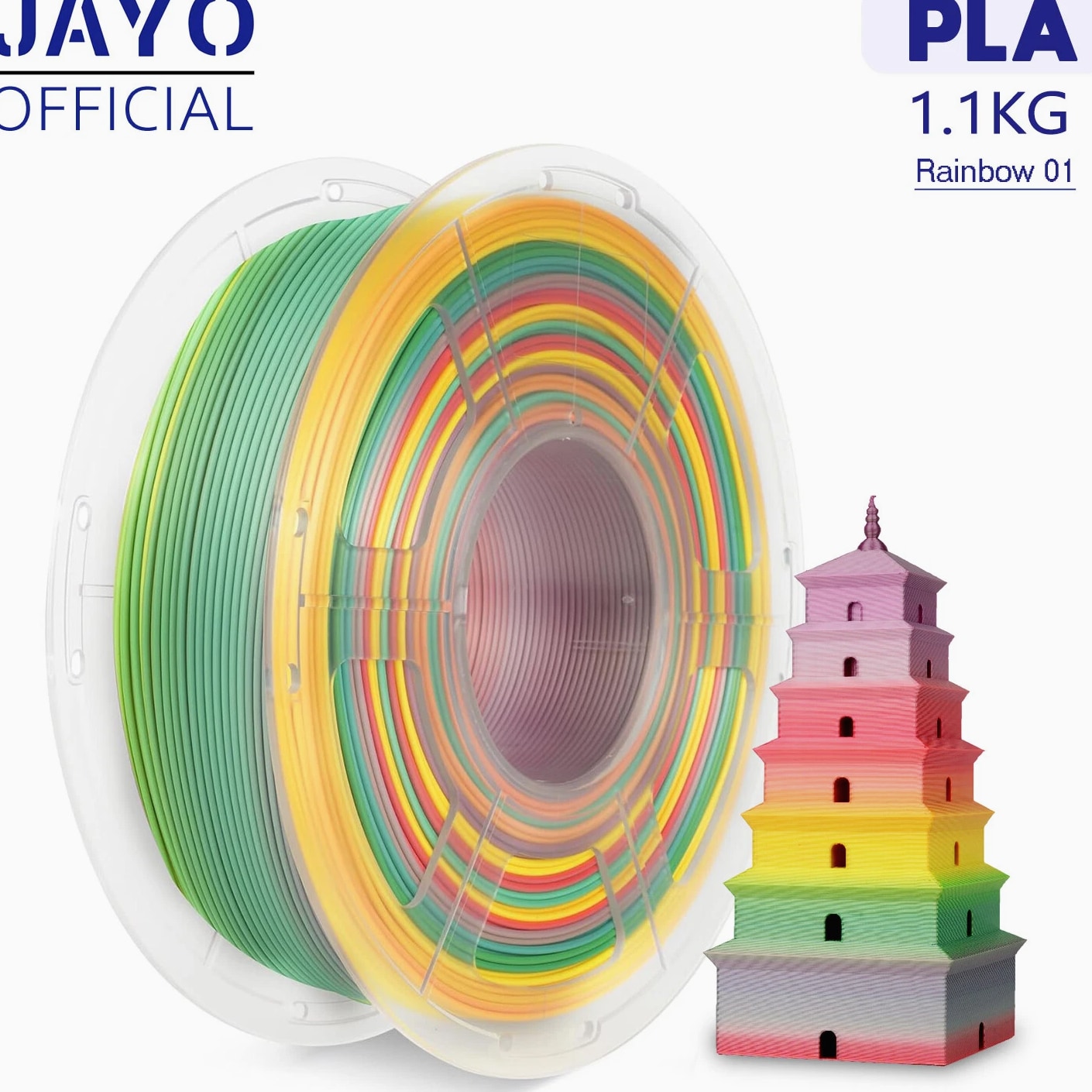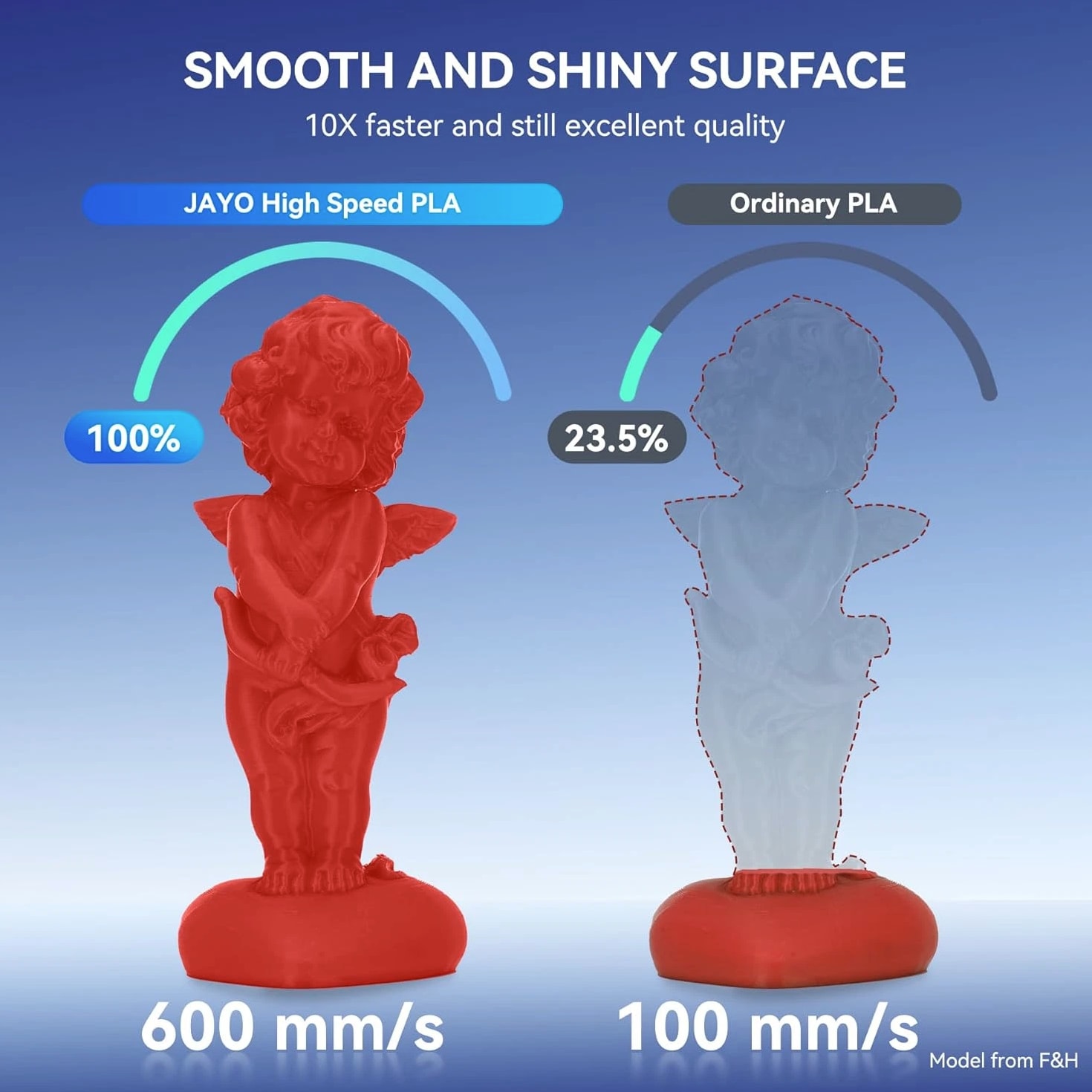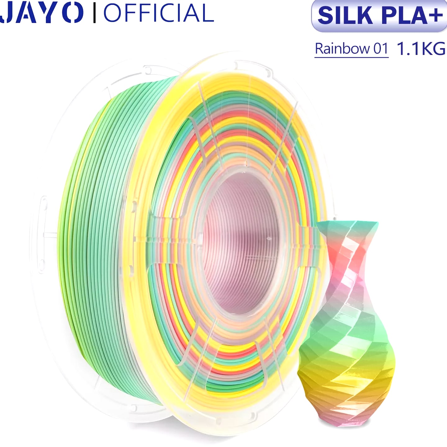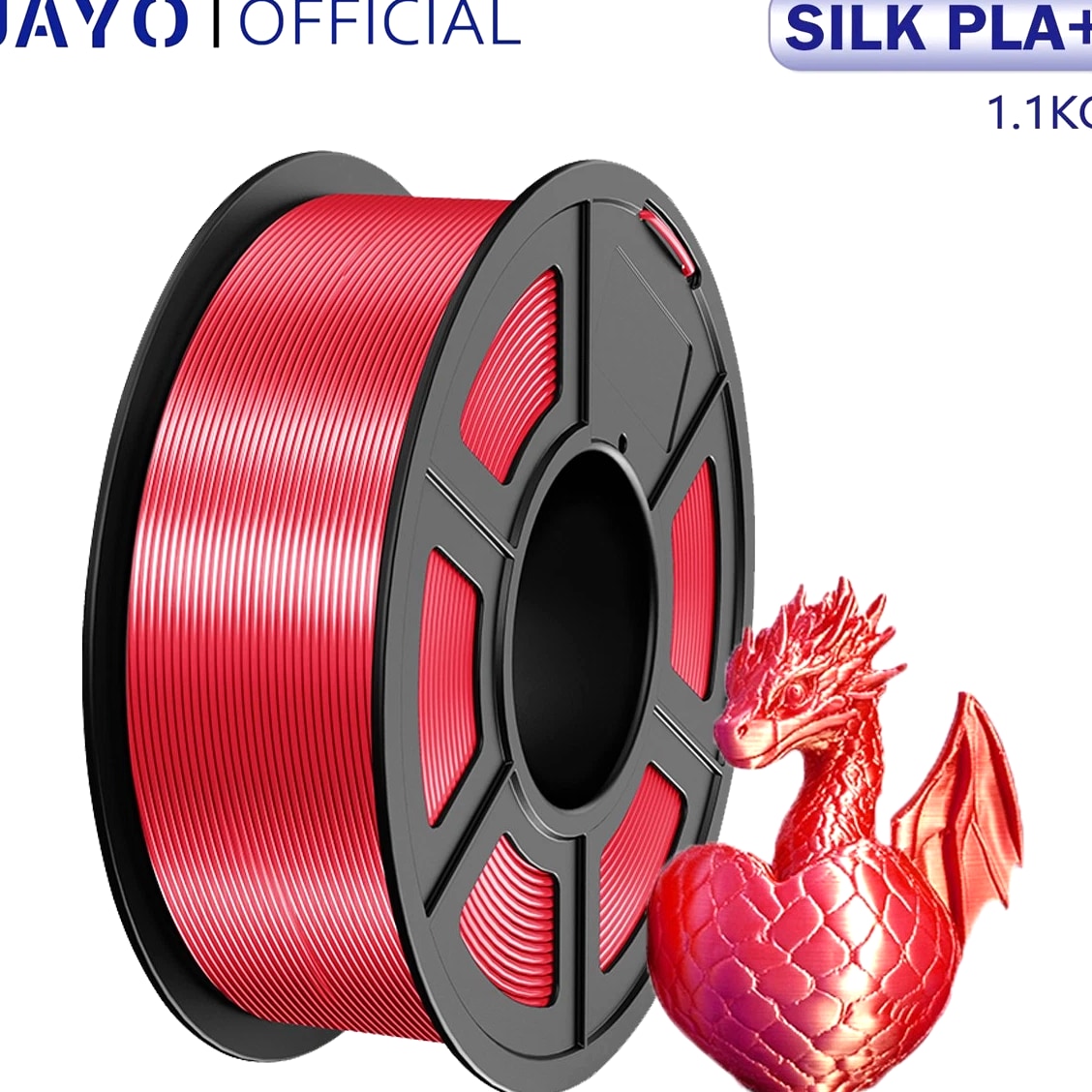 🎁 Discount Description This "Buy 6 get 4 free" campaign requires you to add 10 items to the shopping cart and then pay together. The system will automatically calculate the discount, you only need to pay for 6 pieces. 🎁 e.g Order 10, you will get 10, only pay for 6. Order 20, you will get 20, only pay for 12. JAYO Neatly Wound Filament We have improved the production process of our filaments. The following filaments are now 100% neatly wound - PLA / PLA+ / PLA Meta / SILK PLA+ / PETG.(ABS / TPU / PLA Marble / PLA Twinkling are not included.) Filament PLA PLA+ PLA+2.0 PETG ABS PLA Meta PLA Matte Silk PLA+ PLA High-Speed Filament Diameter 1,75mm 1,75mm 1.75mm 1,75mm 1,75mm 1,75mm 1,75mm 1,75mm 1,75mm Tolerance ±0,02mm ±0,02mm ±0.02mm ±0,02mm ±0,03mm ±0,02mm ±0,03mm ±0,02mm ±0,02mm Printing Temperature 200-210℃ 205-215℃ 205-215°C 220-230℃ 250-260℃ 185-195℃ 205-215℃ 205-215℃ 190-210℃ Platform Temperature 50-60℃ 50-60℃ 50-60°C 60-70℃ 80-100℃ 50-60℃ 50-60℃ 50-60℃ 50-60℃ Printing Speed 50-100MM/s 50-100MM/s 50-300MM/s 40-60MM/s 40-60MM/s 50-150MM/s 50-100MM/s 40-60MM/s 190-210℃, 50-150mm/s 210-230℃, 150-300mm/s 230-260℃, 300-600mm/s Heat Deflection Temperature 53℃ 53℃ 53℃ 63℃ 84℃ 53℃ 53℃ 53℃ 53℃ Elongation at Break 3.1% 3.6% 3.8% 5.3% 7.8% 17% 9.6% 6.3% 3.6% Net Weight 1,1 KG 1,1 KG 1.1 KG 1,1 KG 0,65 KG 1 KG 1,1 KG 1,1 KG 1,1 KG 1,1 KG Filament PLA carbon fibre PLA Marmor PLA Luminous (Glow in the Dark) AntiString PLA ASA Easy ABS TPU (95A) TPU SILK (98A) Classic Filament Diameter 1,75mm 1,75mm 1,75mm 1,75mm 1,75mm 1,75mm 1,75mm 1,75mm 1,75mm Tolerance ±0,02mm ±0,03mm ±0,02mm ±0,03mm ±0,02mm ±0,03mm ±0,03mm ±0,03mm ±0,02mm Printing Temperature 215-225℃ 210-220℃ 200-210℃ 205-215℃ 255-275℃ 225-235℃ 195-205℃ 210-220℃ 230-260℃ Platform Temperature 50-60℃ 50-60℃ 50-60℃ 50-60℃ 50-60℃ 60-70℃ 50-60℃ 50-60℃ 50-60℃ Printing Speed 40-60MM/s 40-60MM/s 40-60mm/s 40-60mm/s 40-60mm/s 40-60MM/s Extrusion with direct drive: 40MM/s Bowden extrusion: 20MM/s Extrusion with direct drive: 50MM/s B