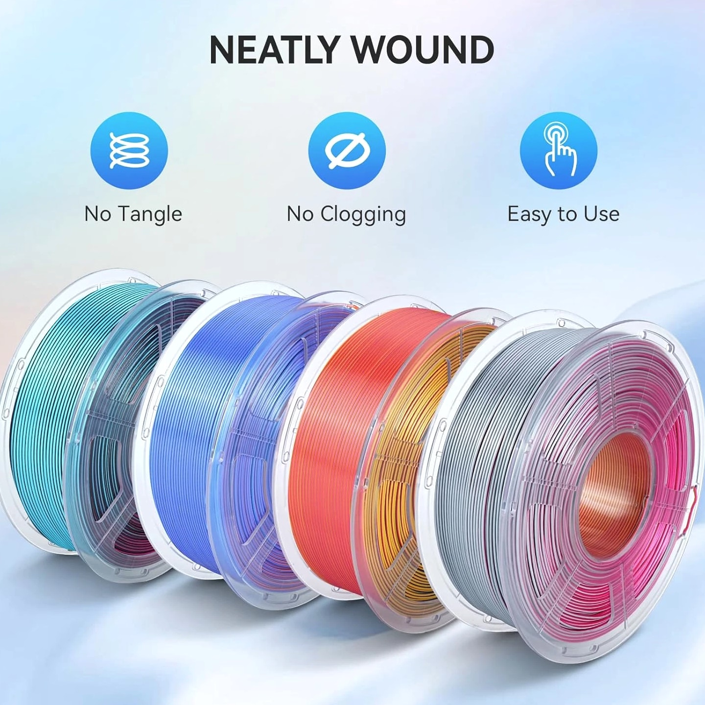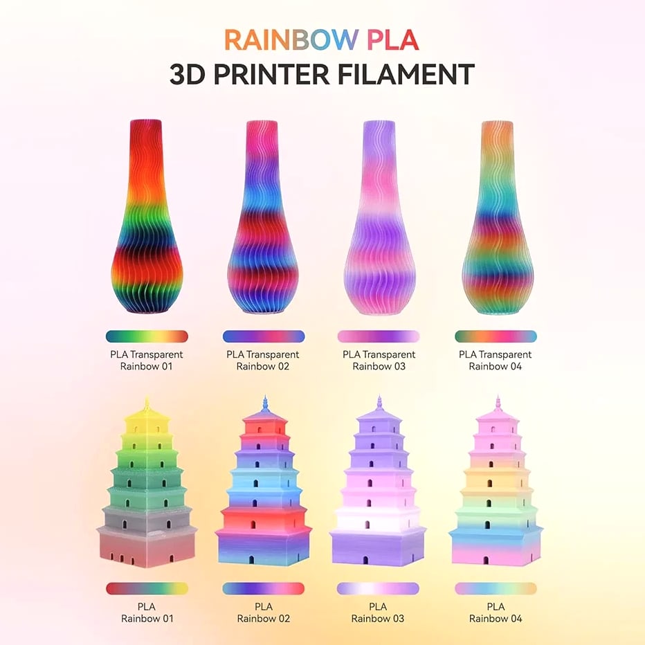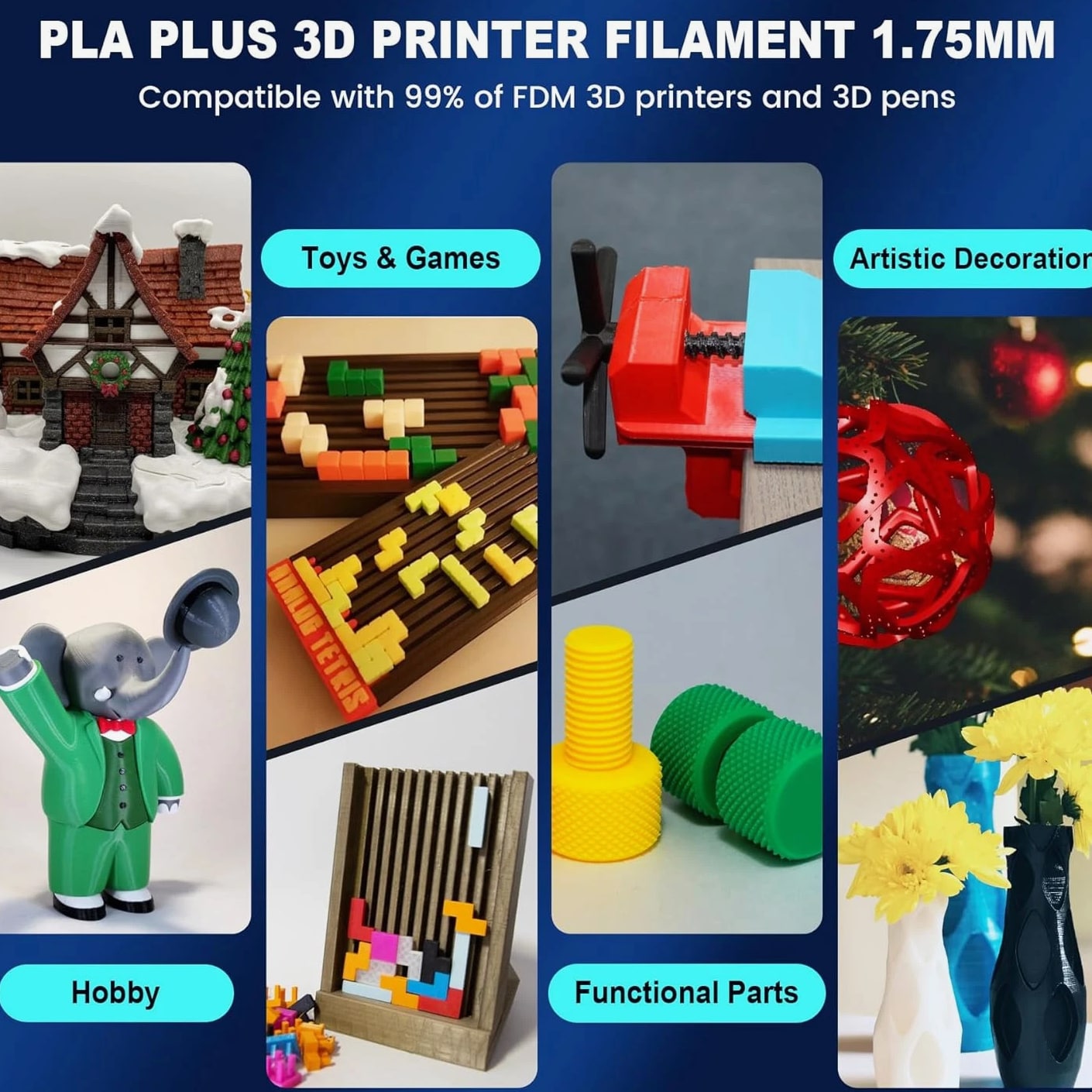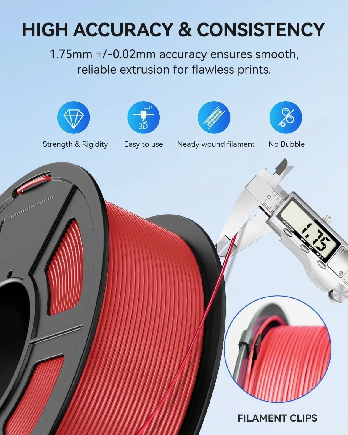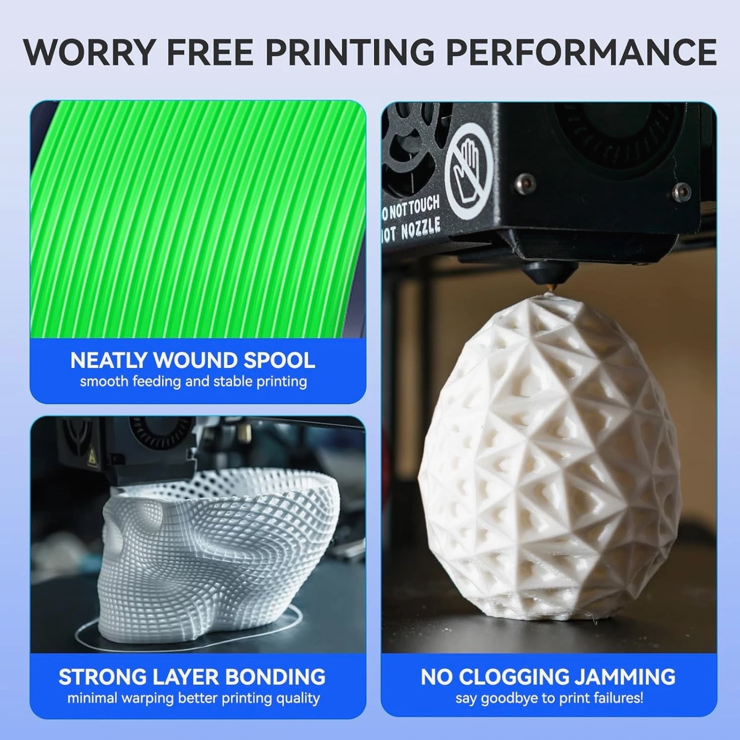 🎁 Discount Description This "Buy 6 get 4 free" campaign requires you to add 10 items to the shopping cart and then pay together. The system will automatically calculate the discount, you only need to pay for 6 pieces. 🎁 e.g Order 10, you will get 10, only pay for 6. Order 20, you will get 20, only pay for 12. JAYO Neatly Wound Filament We have improved the production process of our filaments. The following filaments are now 100% neatly wound - PLA / PLA+ / PLA Meta / SILK PLA+ / PETG.(ABS / TPU / PLA Marble / PLA Twinkling are not included.) Filament PLA PLA+ PLA+2.0 PETG ABS PLA Meta PLA Matte Silk PLA+ PLA High-Speed Filament Diameter 1,75mm 1,75mm 1.75mm 1,75mm 1,75mm 1,75mm 1,75mm 1,75mm 1,75mm Tolerance ±0,02mm ±0,02mm ±0.02mm ±0,02mm ±0,03mm ±0,02mm ±0,03mm ±0,02mm ±0,02mm Printing Temperature 200-210℃ 205-215℃ 205-215°C 220-230℃ 250-260℃ 185-195℃ 205-215℃ 205-215℃ 190-210℃ Platform Temperature 50-60℃ 50-60℃ 50-60°C 60-70℃ 80-100℃ 50-60℃ 50-60℃ 50-60℃ 50-60℃ Printing Speed 50-100MM/s 50-100MM/s 50-300MM/s 40-60MM/s 40-60MM/s 50-150MM/s 50-100MM/s 40-60MM/s 190-210℃, 50-150mm/s 210-230℃, 150-300mm/s 230-260℃, 300-600mm/s Heat Deflection Temperature 53℃ 53℃ 53℃ 63℃ 84℃ 53℃ 53℃ 53℃ 53℃ Elongation at Break 3.1% 3.6% 3.8% 5.3% 7.8% 17% 9.6% 6.3% 3.6% Net Weight 1,1 KG 1,1 KG 1.1 KG 1,1 KG 0,65 KG 1 KG 1,1 KG 1,1 KG 1,1 KG 1,1 KG Filament PLA carbon fibre PLA Marmor PLA Luminous (Glow in the Dark) AntiString PLA ASA Easy ABS TPU (95A) TPU SILK (98A) Classic Filament Diameter 1,75mm 1,75mm 1,75mm 1,75mm 1,75mm 1,75mm 1,75mm 1,75mm 1,75mm Tolerance ±0,02mm ±0,03mm ±0,02mm ±0,03mm ±0,02mm ±0,03mm ±0,03mm ±0,03mm ±0,02mm Printing Temperature 215-225℃ 210-220℃ 200-210℃ 205-215℃ 255-275℃ 225-235℃ 195-205℃ 210-220℃ 230-260℃ Platform Temperature 50-60℃ 50-60℃ 50-60℃ 50-60℃ 50-60℃ 60-70℃ 50-60℃ 50-60℃ 50-60℃ Printing Speed 40-60MM/s 40-60MM/s 40-60mm/s 40-60mm/s 40-60mm/s 40-60MM/s Extrusion with direct drive: 40MM/s Bowden extrusion: 20MM/s Extrusion with direct drive: 50MM/s B