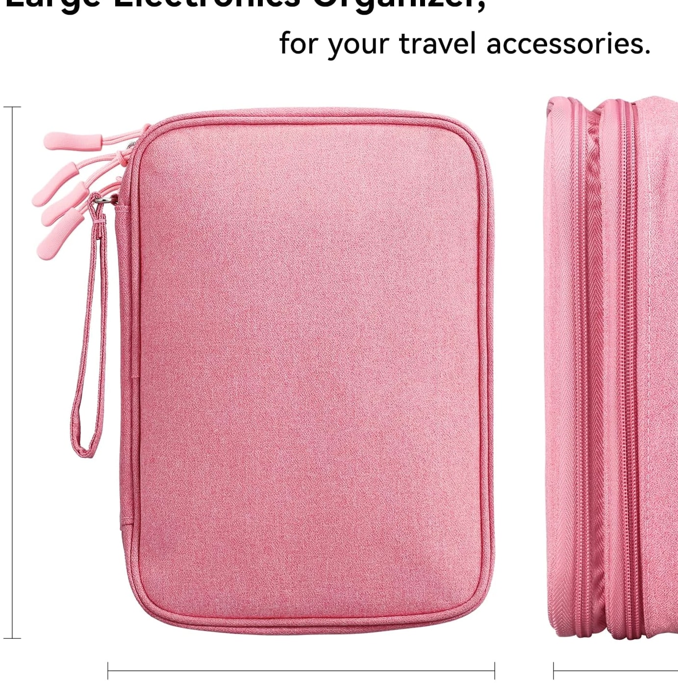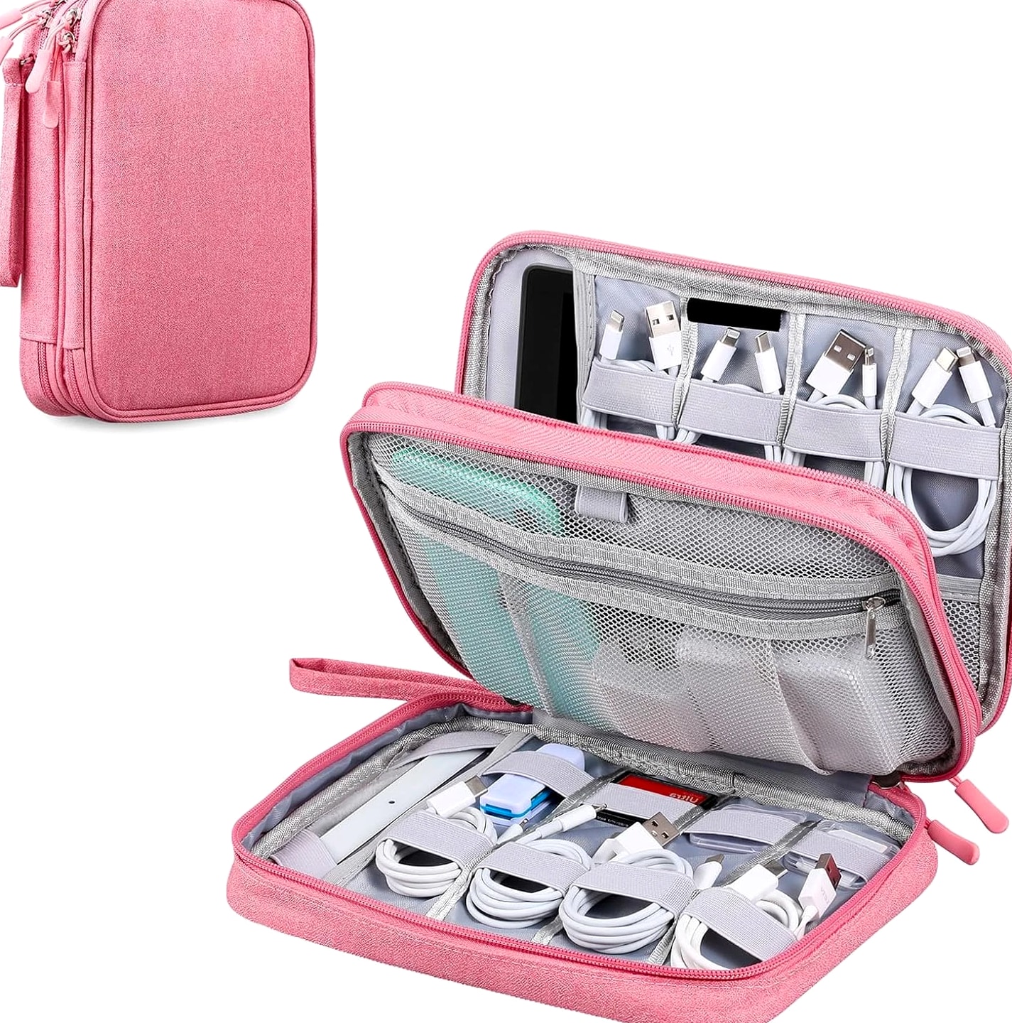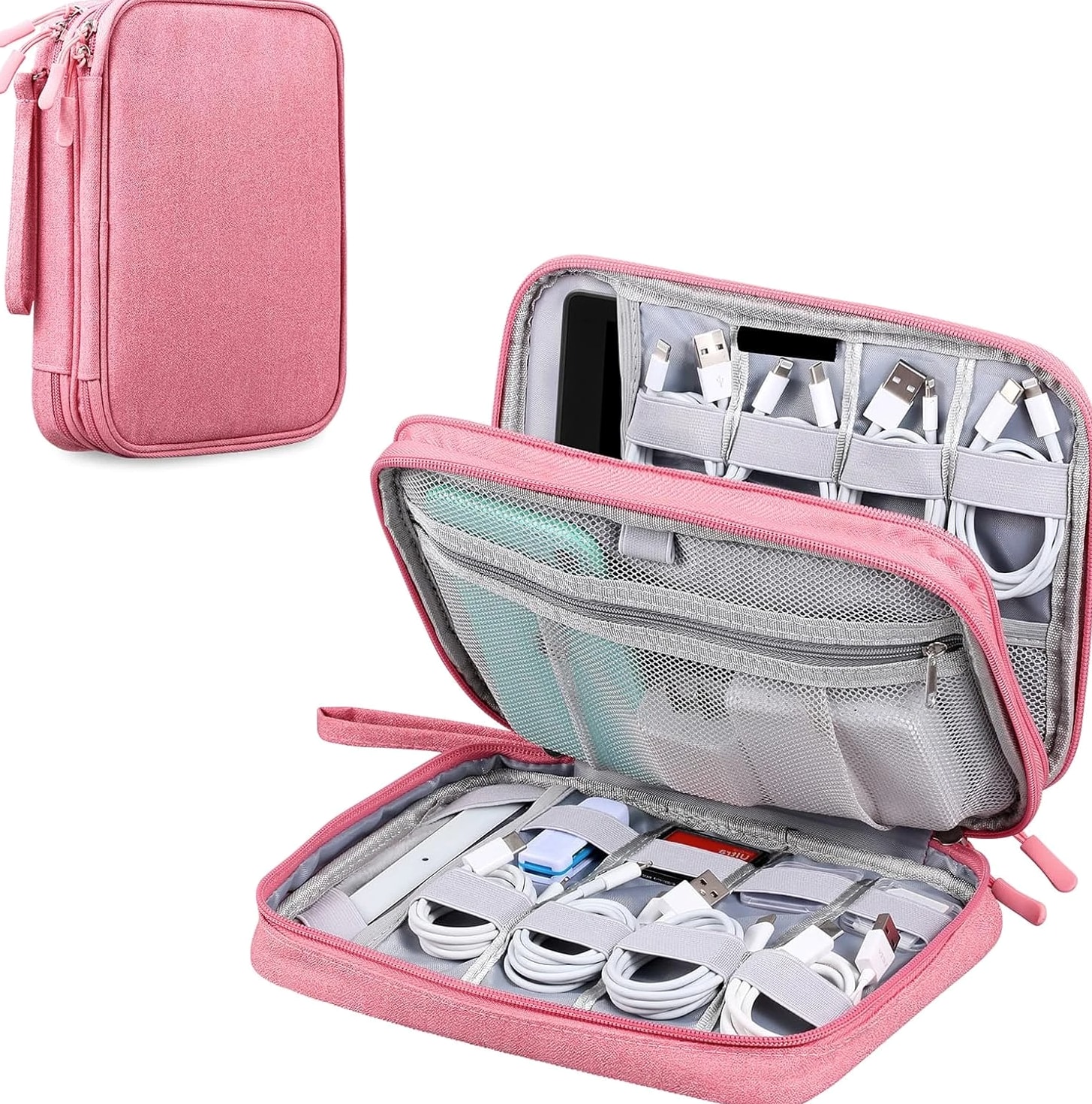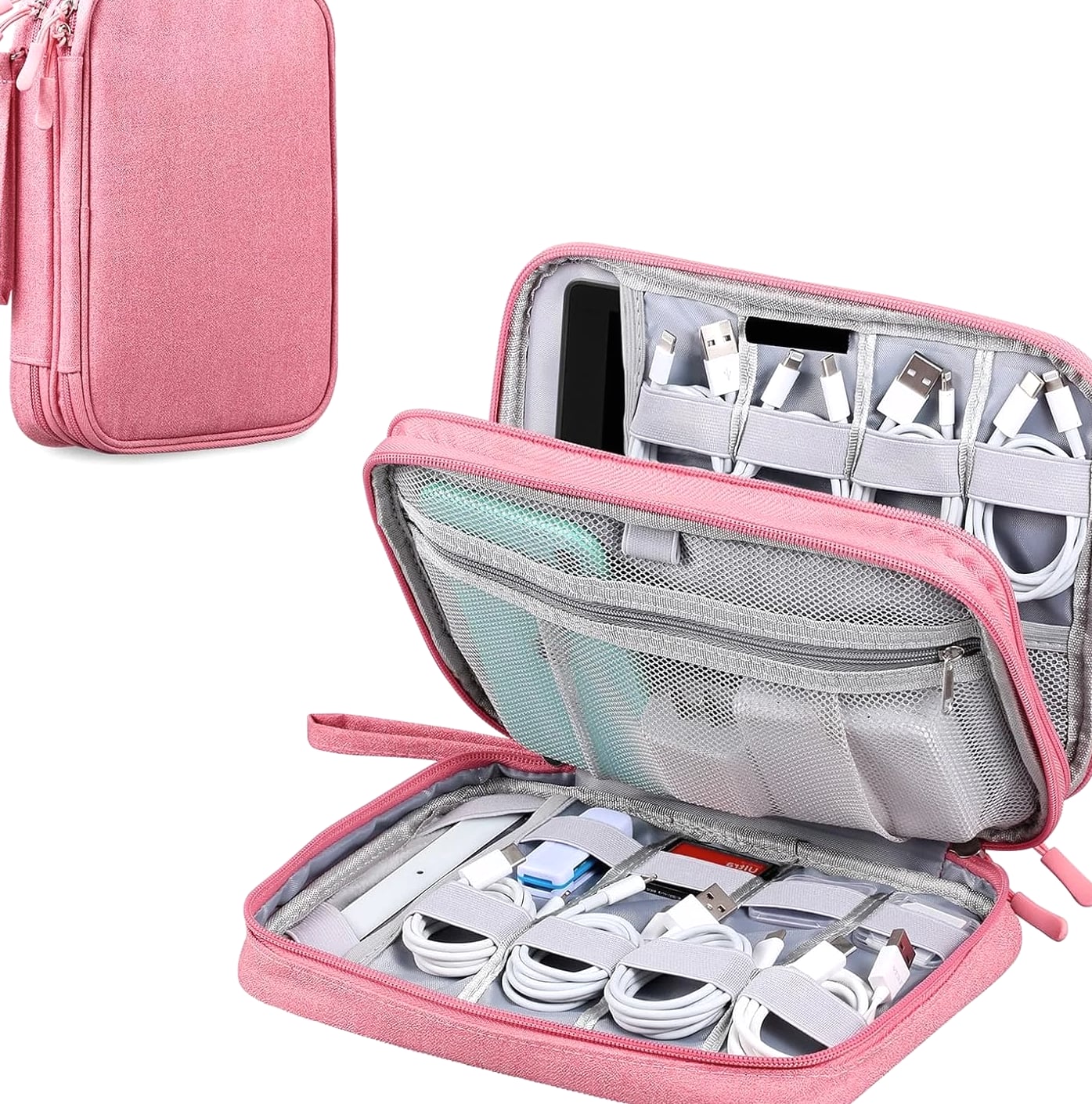 Ideal for Travel & Daily Use A cable organizer bag is designed for business travelers, office workers, students, and anyone who needs a compact yet large-capacity pouch to keep electronic accessories neatly stored and easy to access. Dual Compartments for Smart Storage Features 2 main compartments with mesh pockets to separate and organize tech essentials. Perfectly holds power banks, chargers, cables, earphones, adapters, SD cards, and small digital devices in one place. Lightweight & Portable Design Compact and lightweight carrying case with dimensions: 9.8 x 7.3 x 2.36 in, only 240g (0.53 lbs). Easy to carry in backpacks, luggage, or briefcases for daily commutes and travel. Water-Resistant & Durable Material Made of high-quality jacquard fabric that is splash-proof and wear-resistant, effectively protecting your electronics from accidental spills, dust, and scratches. All-in-One Storage Solution Keeps all cords, adapters, chargers, and small gadgets organized, eliminating messy tangles and saving time when searching for accessories. Great for home, office, travel, and business trips. Large Travel Electronic Organizer – Cable & Accessory Storage Bag Keep your digital life neat and organized with this Electronic Travel Organizer. Whether you're on a business trip, vacation, or working at the office, this storage pouch keeps all your essential tech accessories in one convenient place, so you no longer have to dig through bags to find tangled cords or small adapters. This large-capacity organizer provides ample space for iPad mini, passports, IDs, certificates, power banks, external hard drives, SD cards, charging cables, earphones, adapters, and other small electronics. It's a practical and versatile storage solution for daily use and travel. Product Details Exterior Material: Water-repellent jacquard fabric, splash-proof and durable Interior Material: 210D nylon lining with sturdy mesh pockets Dimensions: 9.8 x 7.3 x 2.36 inches Weight: 0.53 lbs (24
